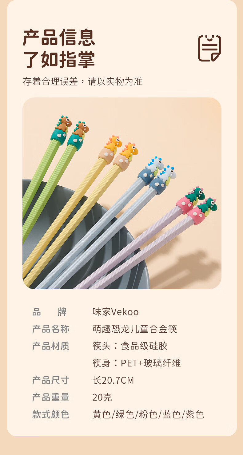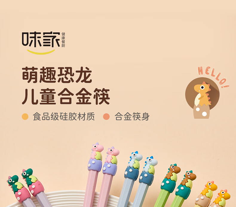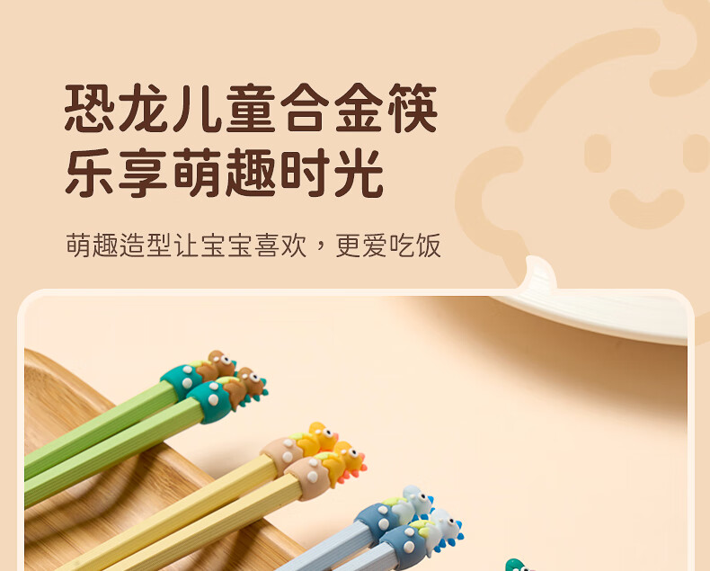 Weijia dinosaur alloy chopsticks, two pairs of children's chopsticks, one chopstick for each person, special baby chopsticks, antibacterial and mildew proof