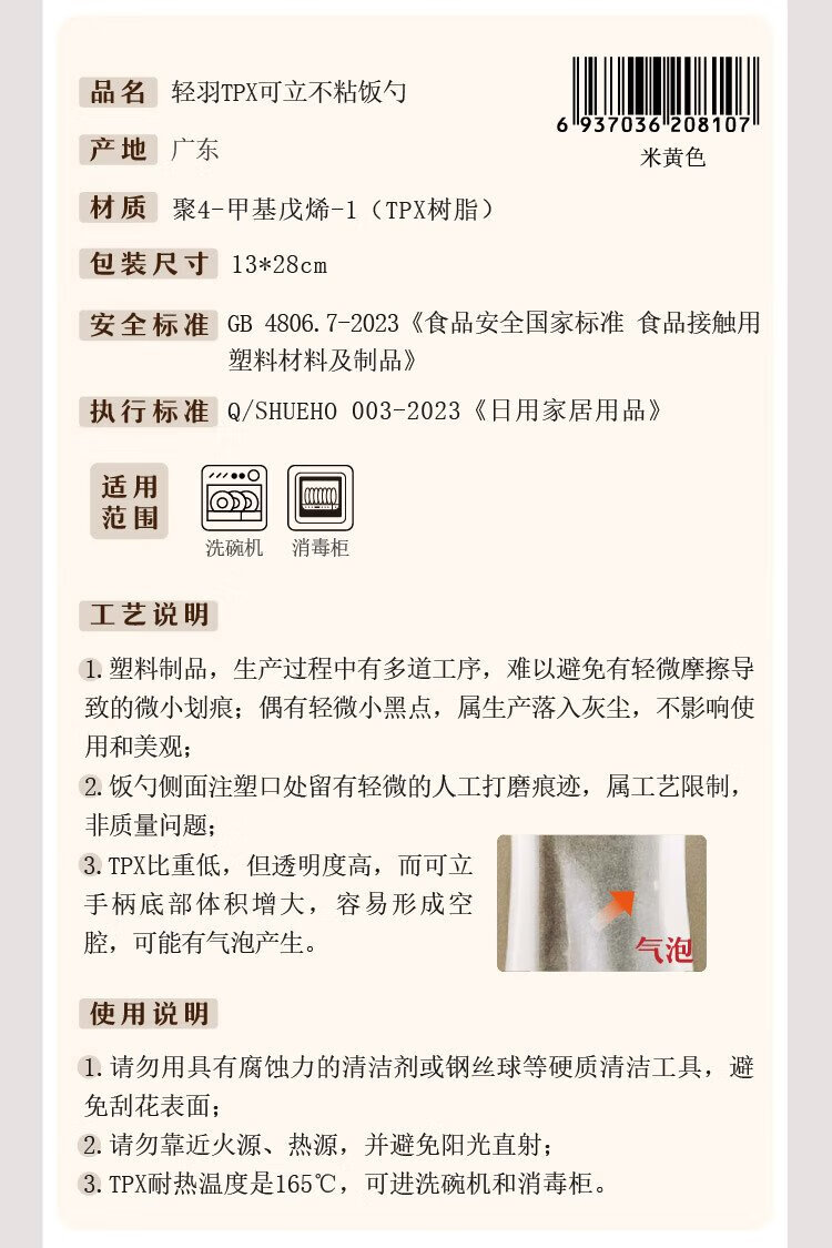 Shuke light feather can stand rice spoon non-stick rice shovel household high temperature resistant rice cooker rice cooker non-stick standing