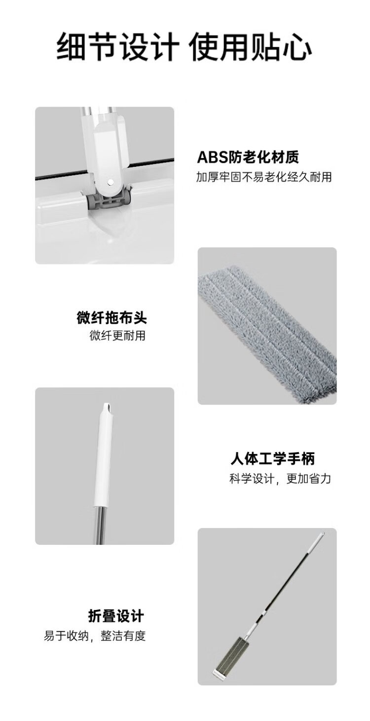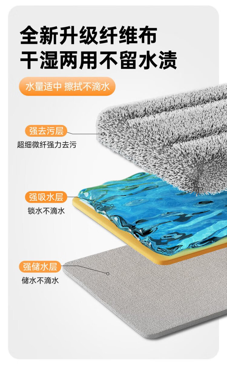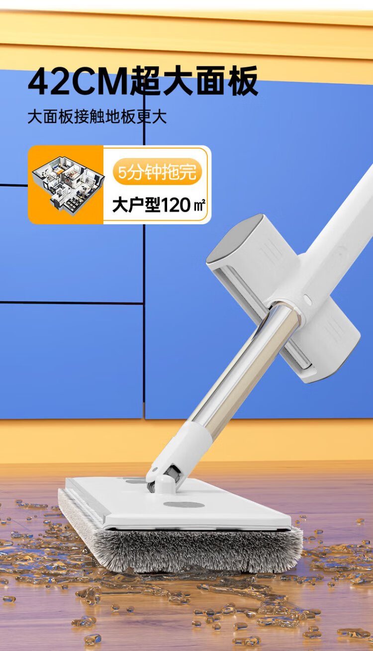 Sorbonne flat mop 42cm6 cloth household one mop, hand-wash free 2025 mopping artifact with bucket set of mop mop