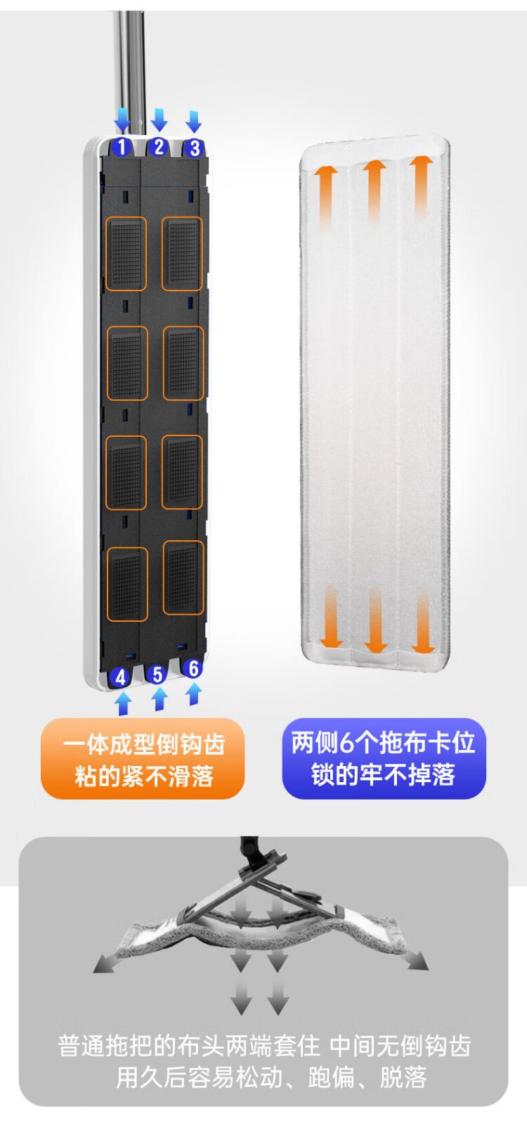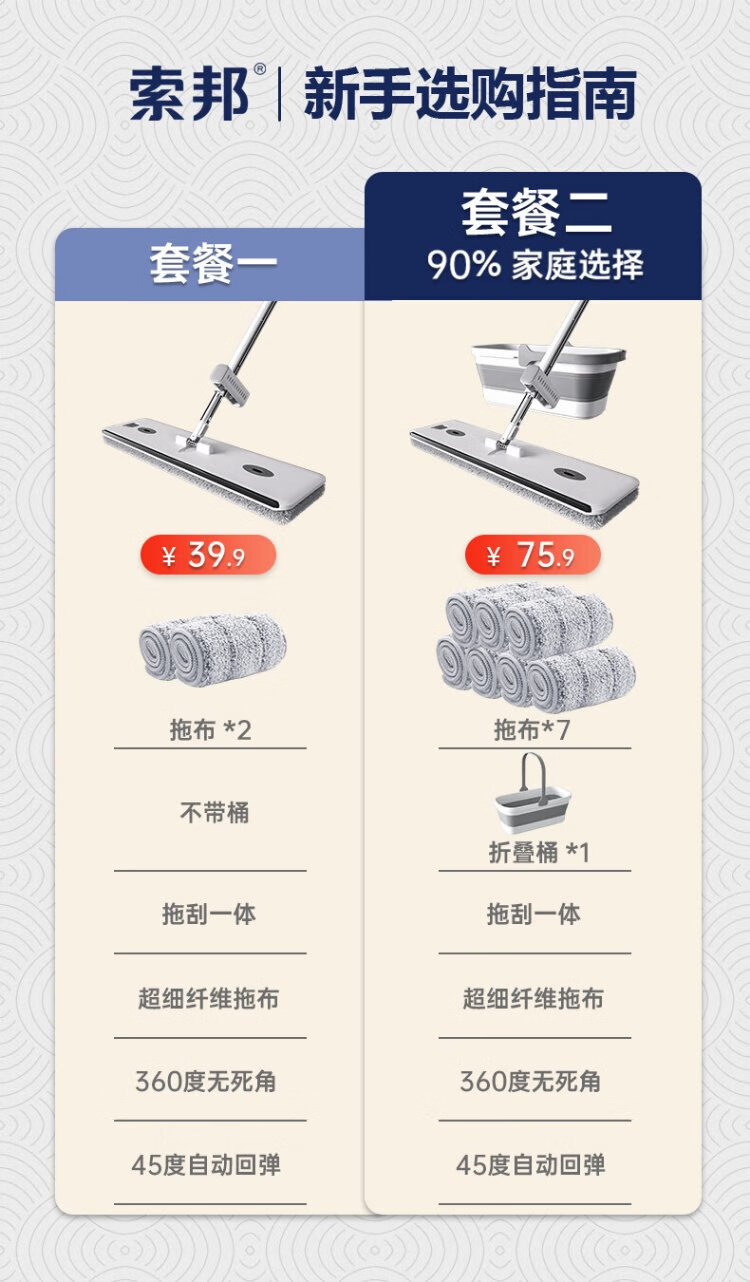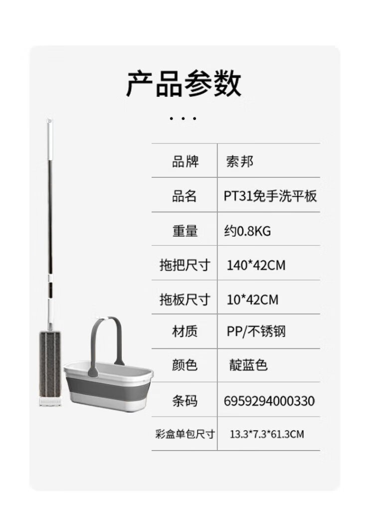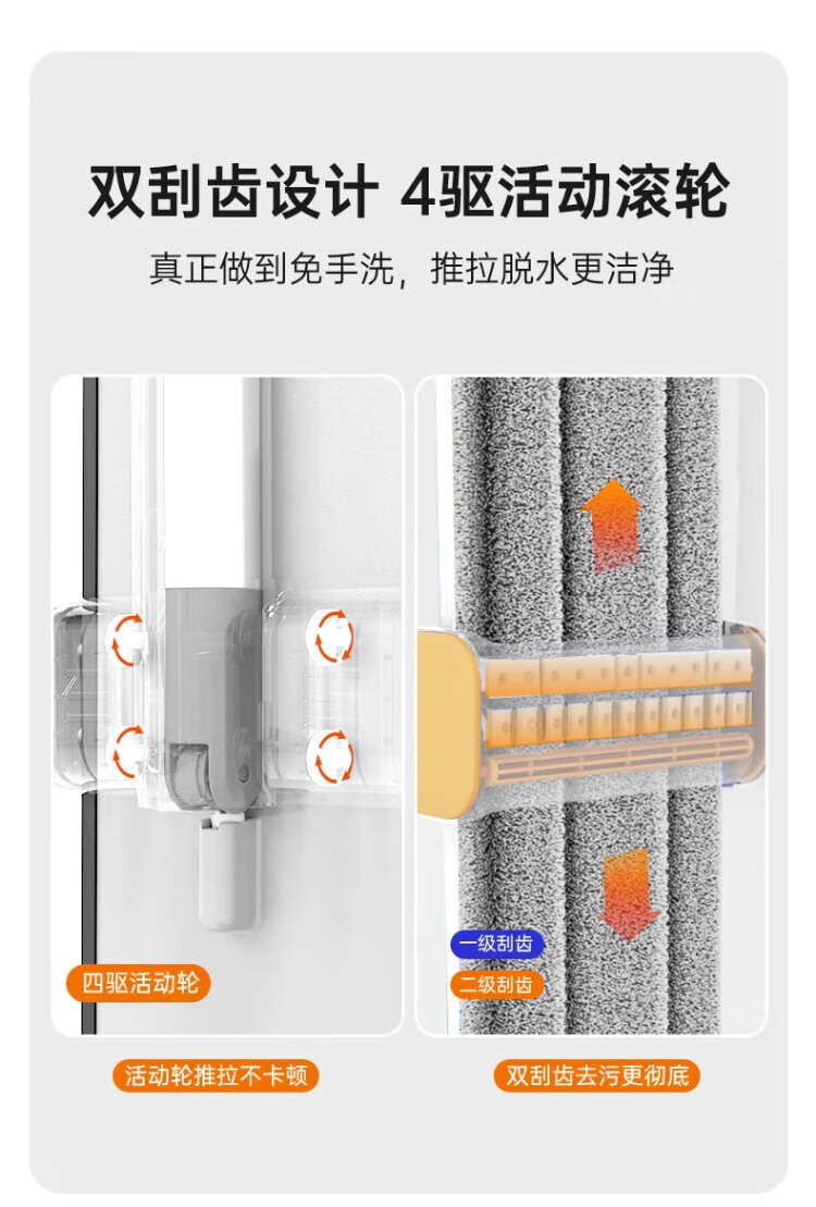Sorbonne flat mop 42cm6 cloth household one mop, hand-wash free 2025 mopping artifact with bucket set of mop mop