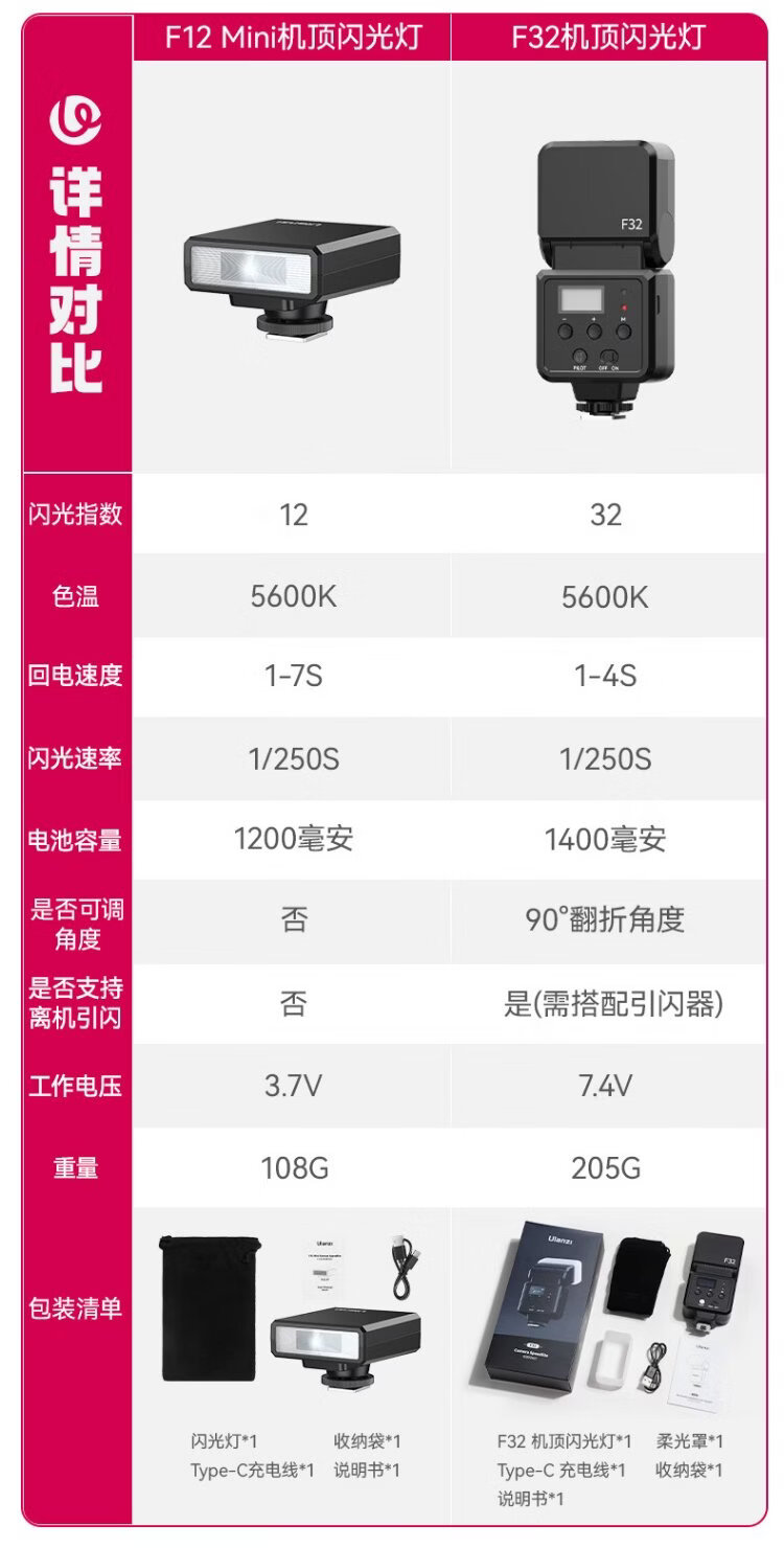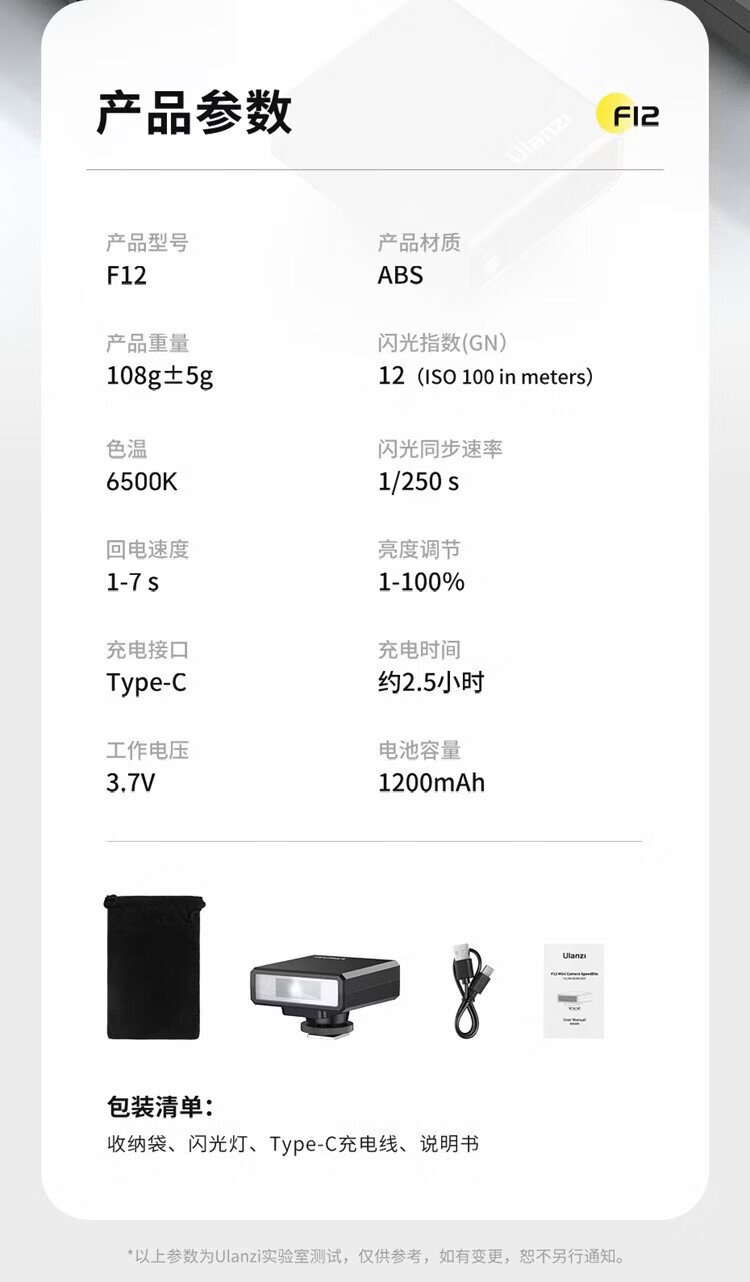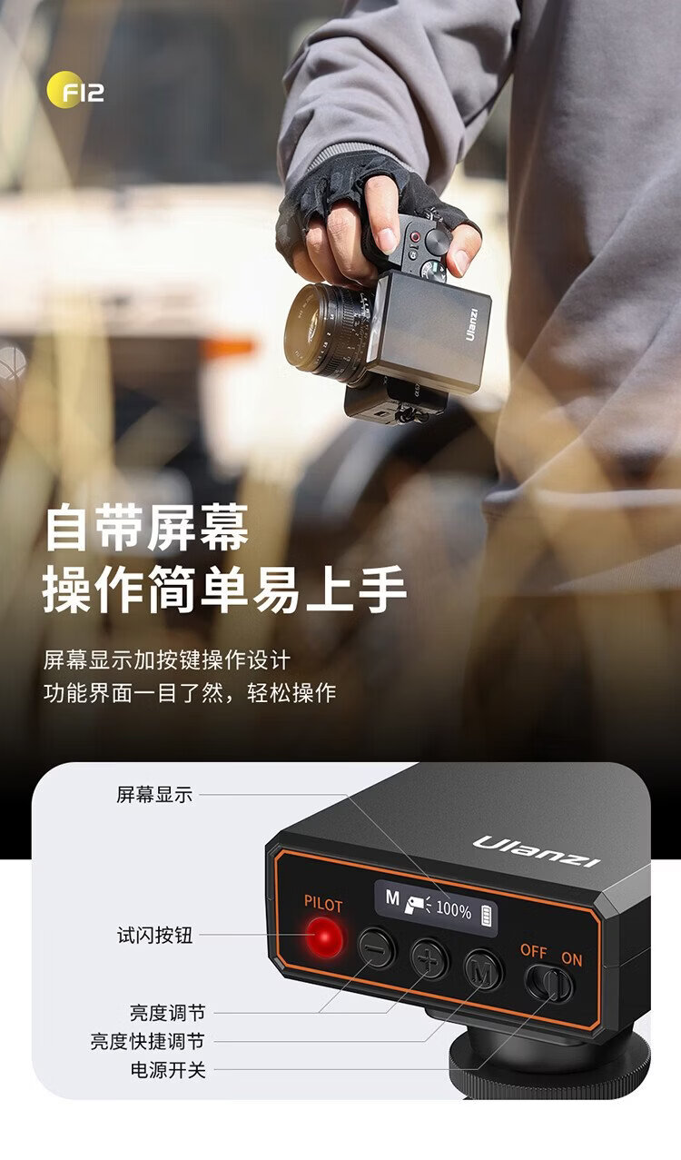 Ulanzi F12 camera top flash (wireless flash trigger set) camera outdoor flash portable fill light pocket light off-camera suitable for Canon, Nikon and Sony