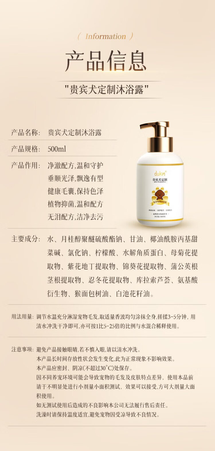 DUKEQIN Teddy special dog shower gel poodle Teddy dog pet shampoo puppy bath deodorant shampoo