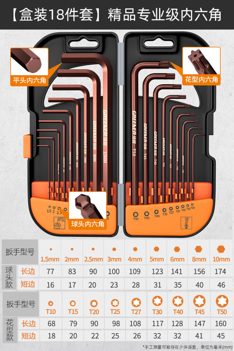 GREENER hexagonal wrench set screwdriver inner 6-corner T-shaped hexagonal household hexagonal plum blossom wrench extension