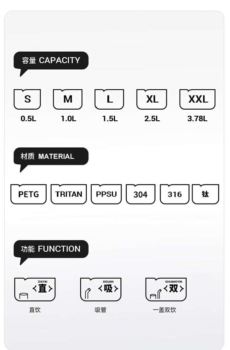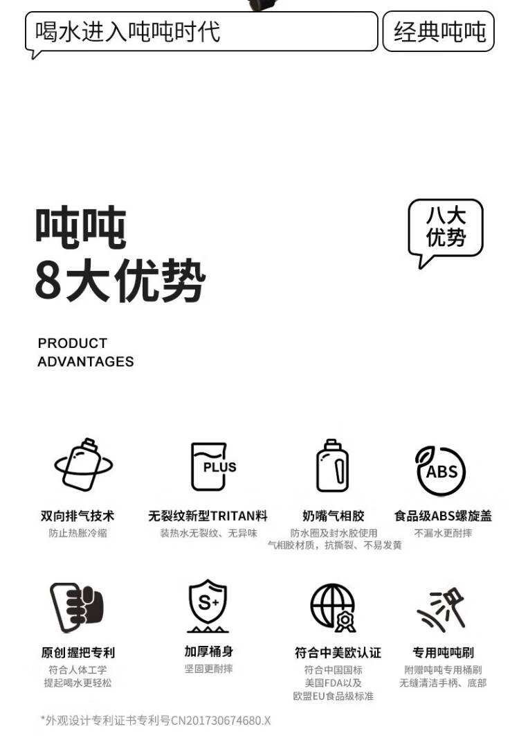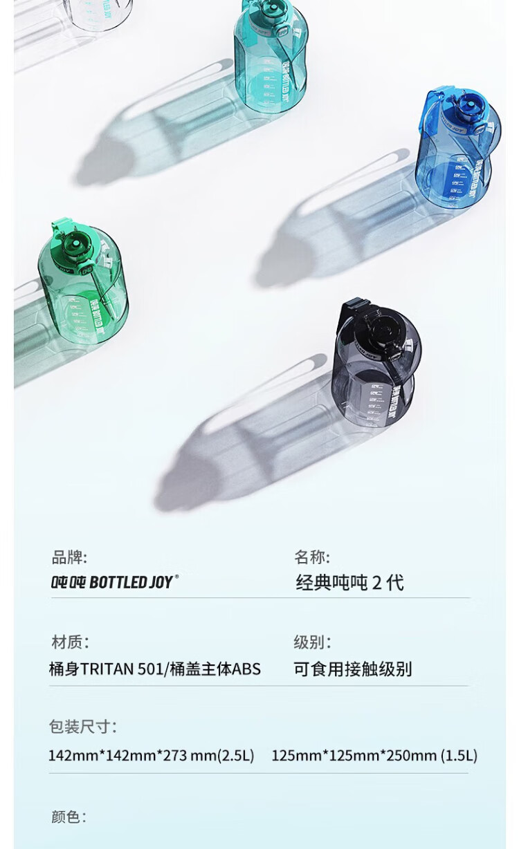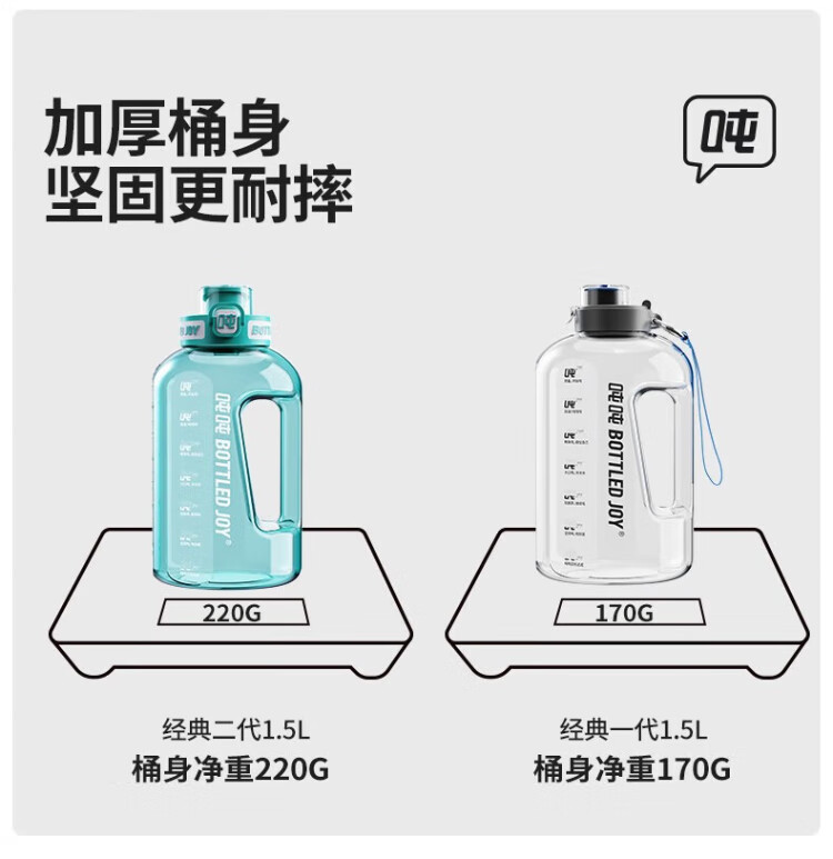 Ton tons large capacity tons bucket sports water cup outdoor fitness cup big belly cup Tritan501 plastic cup 1.5L