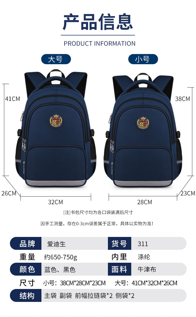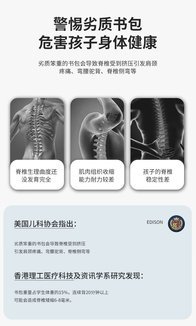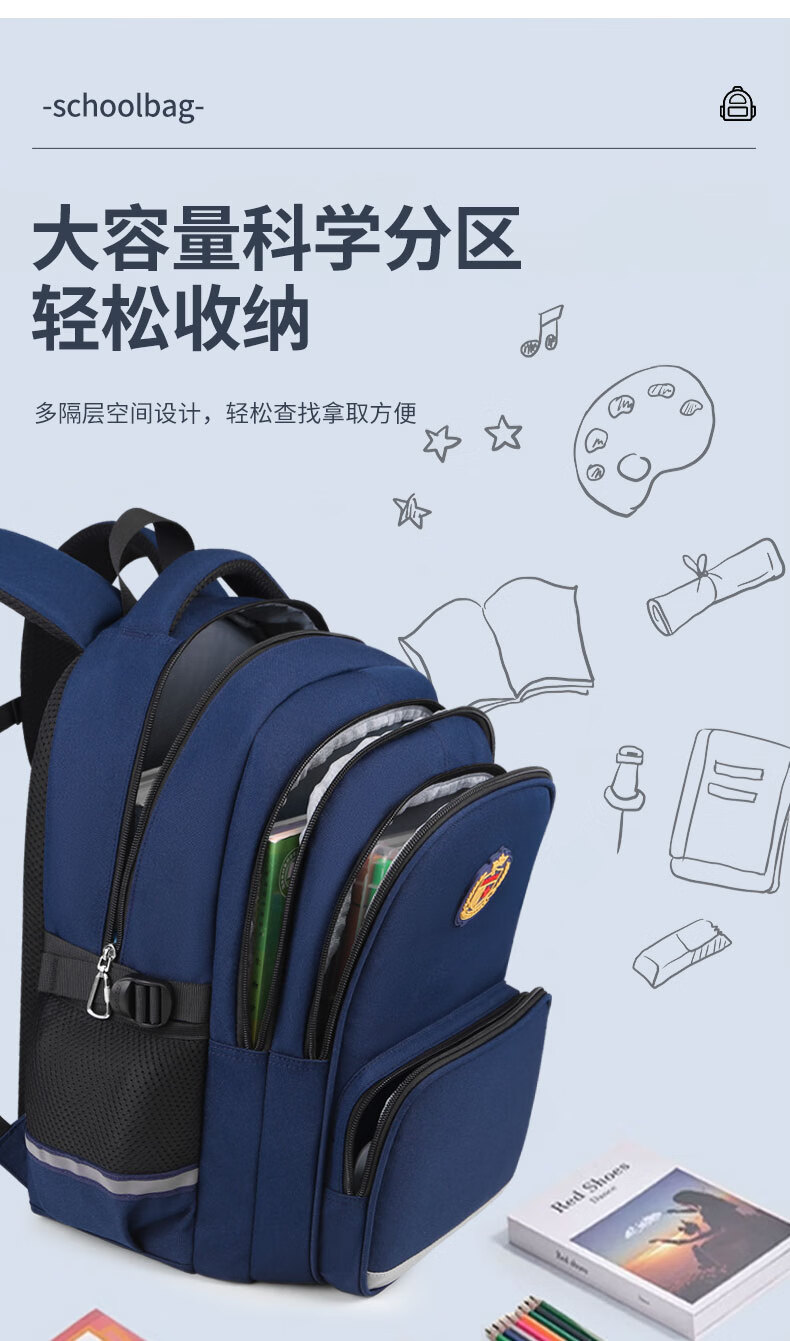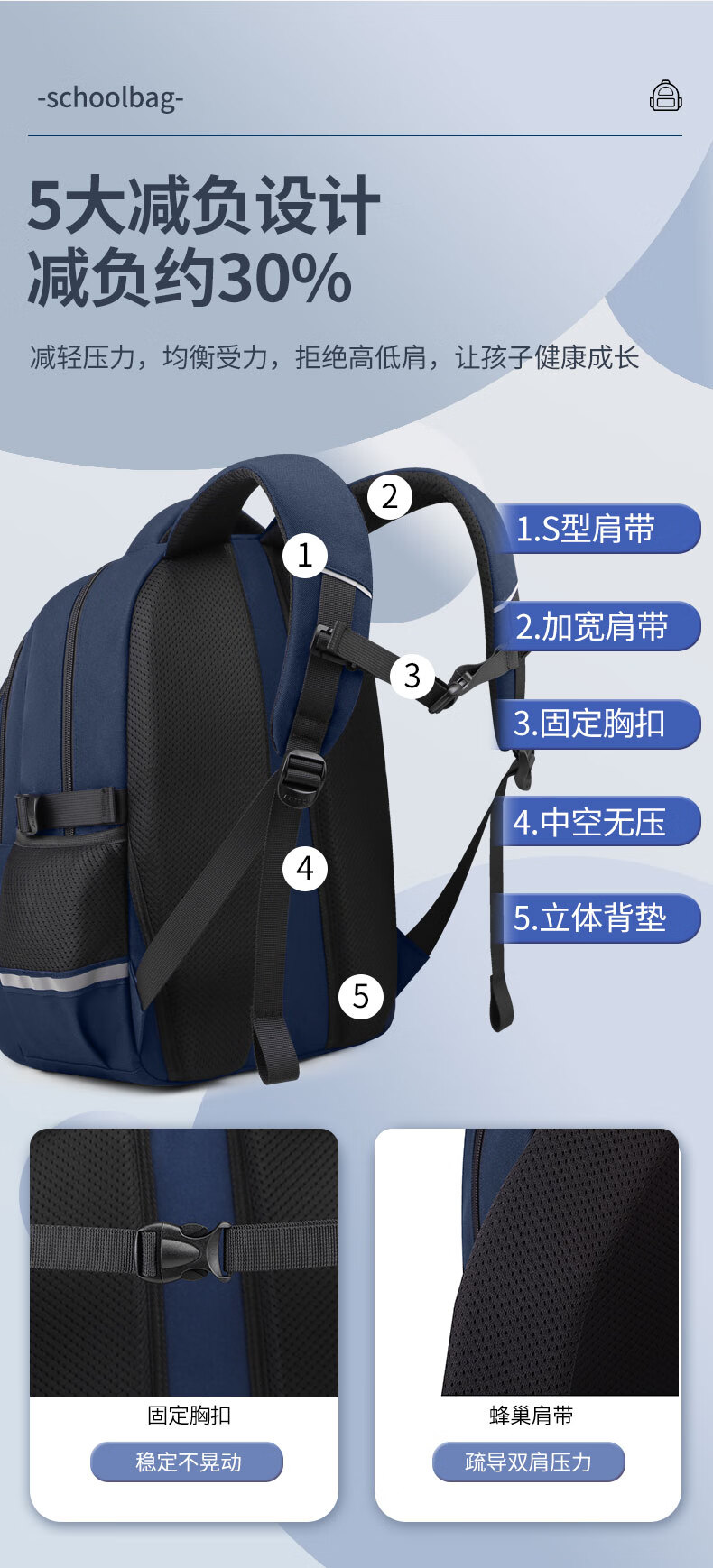 Edison inventor primary school bag boy spine protection and burden reduction 3-6 grade large capacity middle school student backpack 311#-2 blue