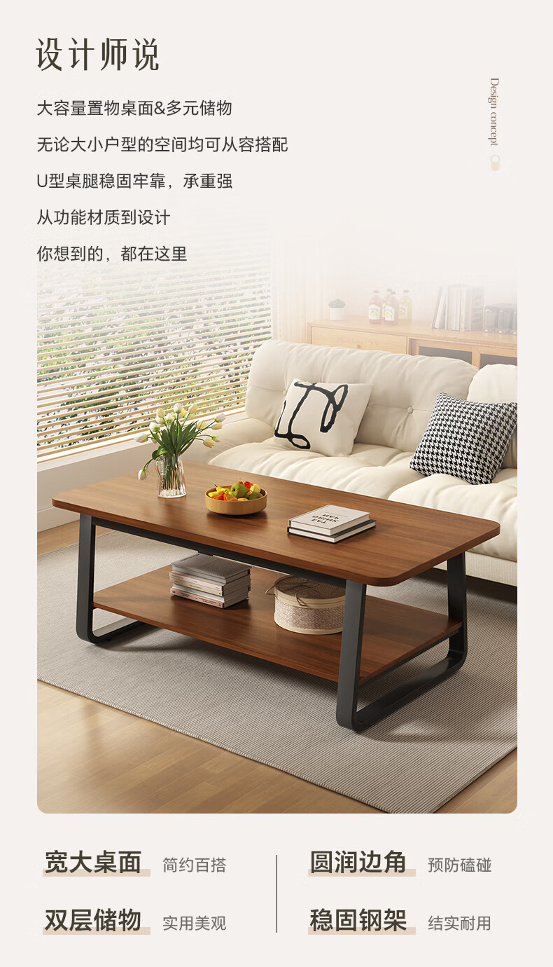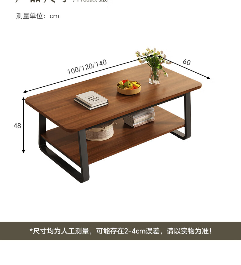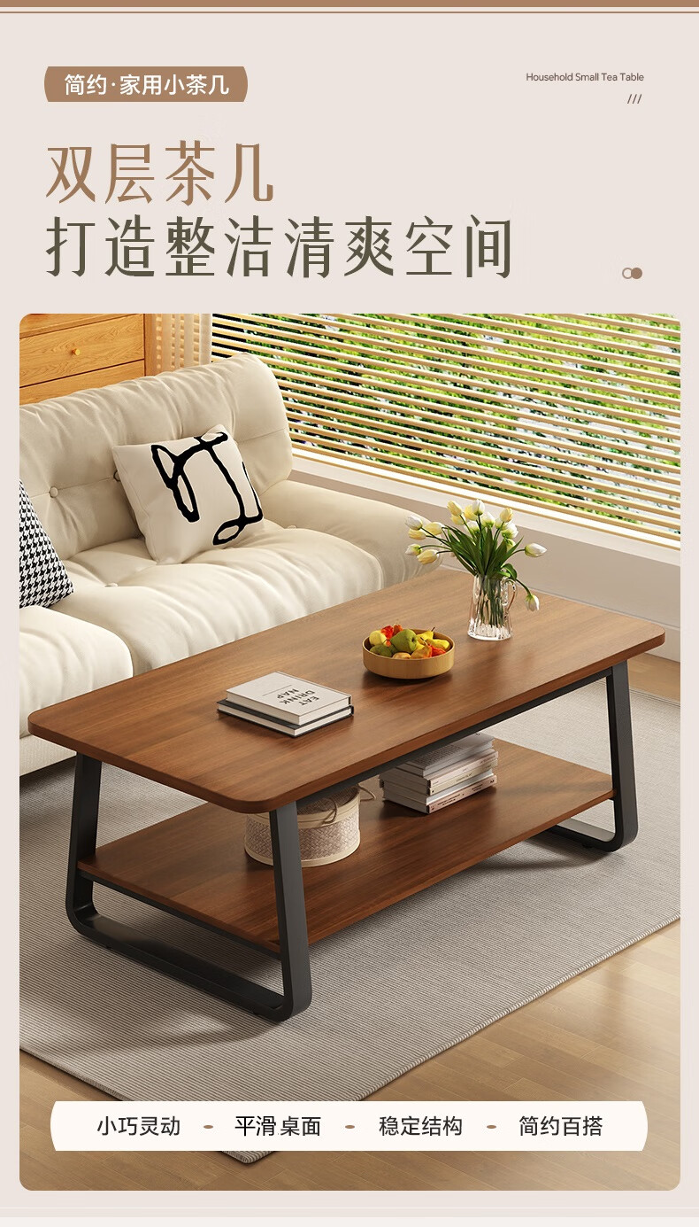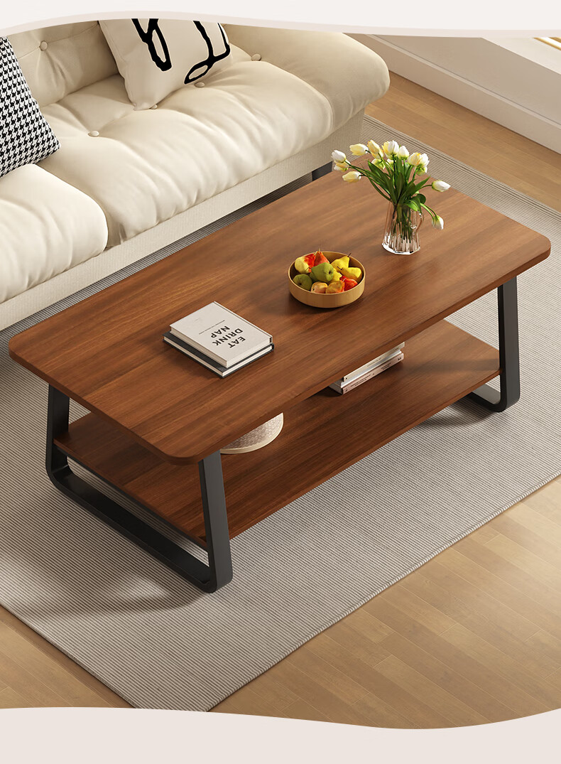 Small craftsman material coffee table living room household double-layer simple coffee table table small apartment modern small coffee table sofa side table walnut color 140