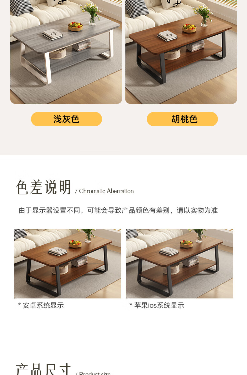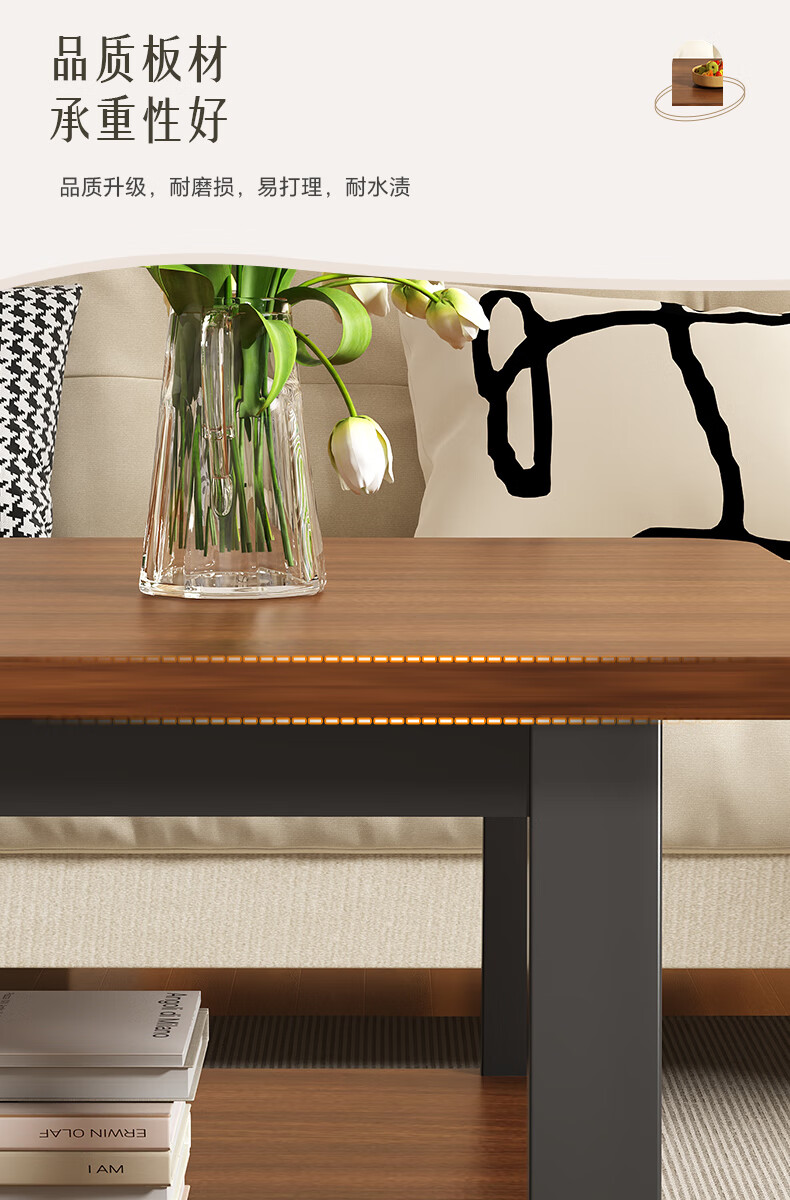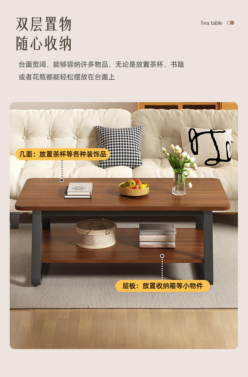 Small craftsman material coffee table living room household double-layer simple coffee table table small apartment modern small coffee table sofa side table walnut color 140