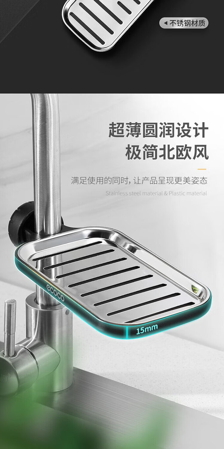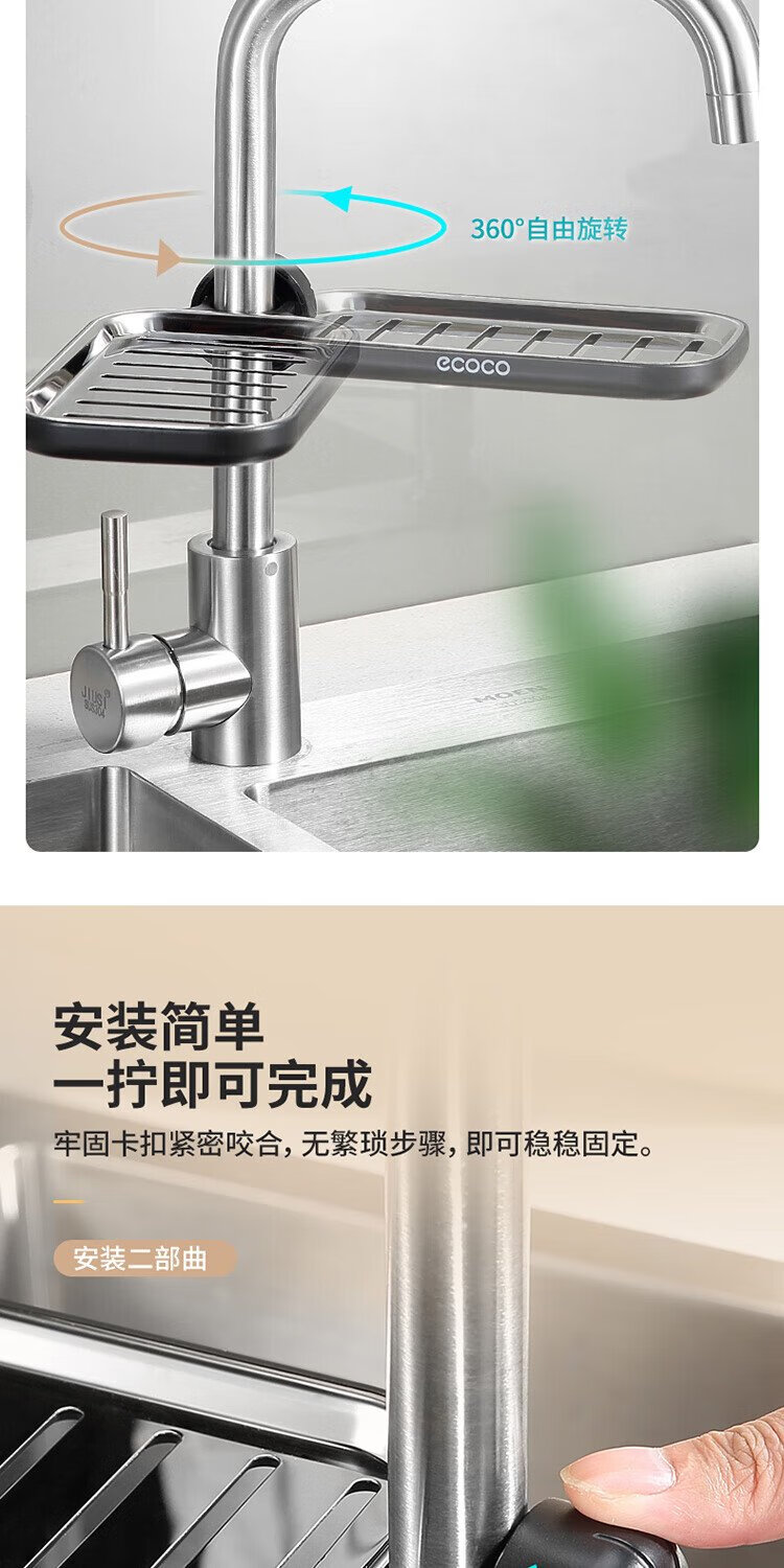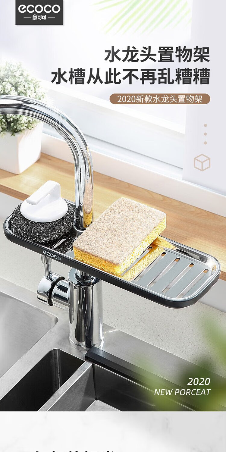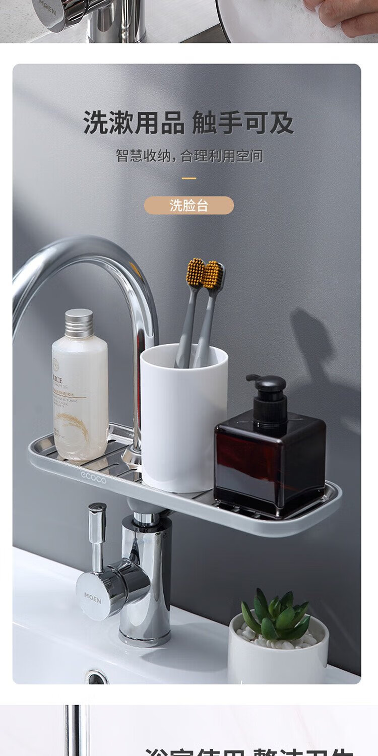 Ecoco faucet rack stainless steel stainless steel drain basket bathroom sink drain rack no punching E1914