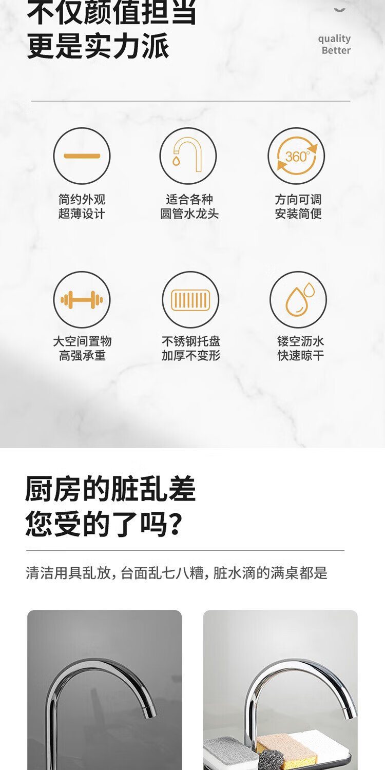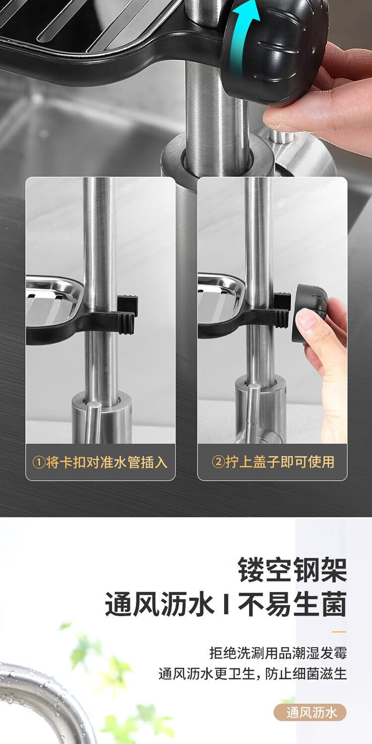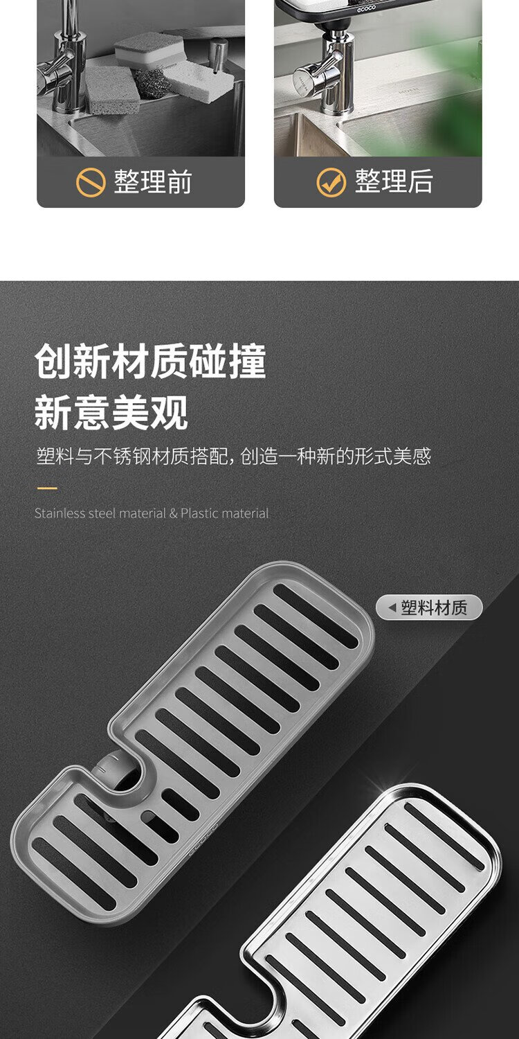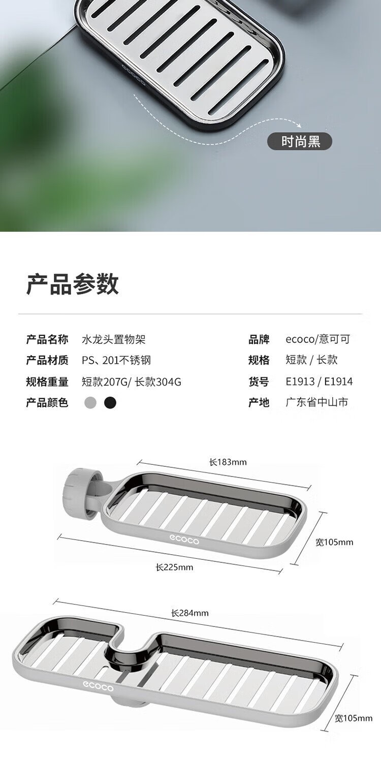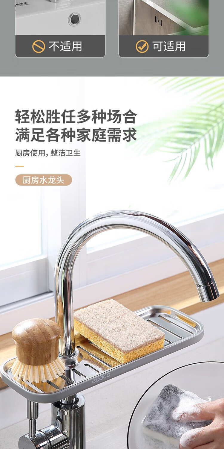 Ecoco faucet rack stainless steel stainless steel drain basket bathroom sink drain rack no punching E1914