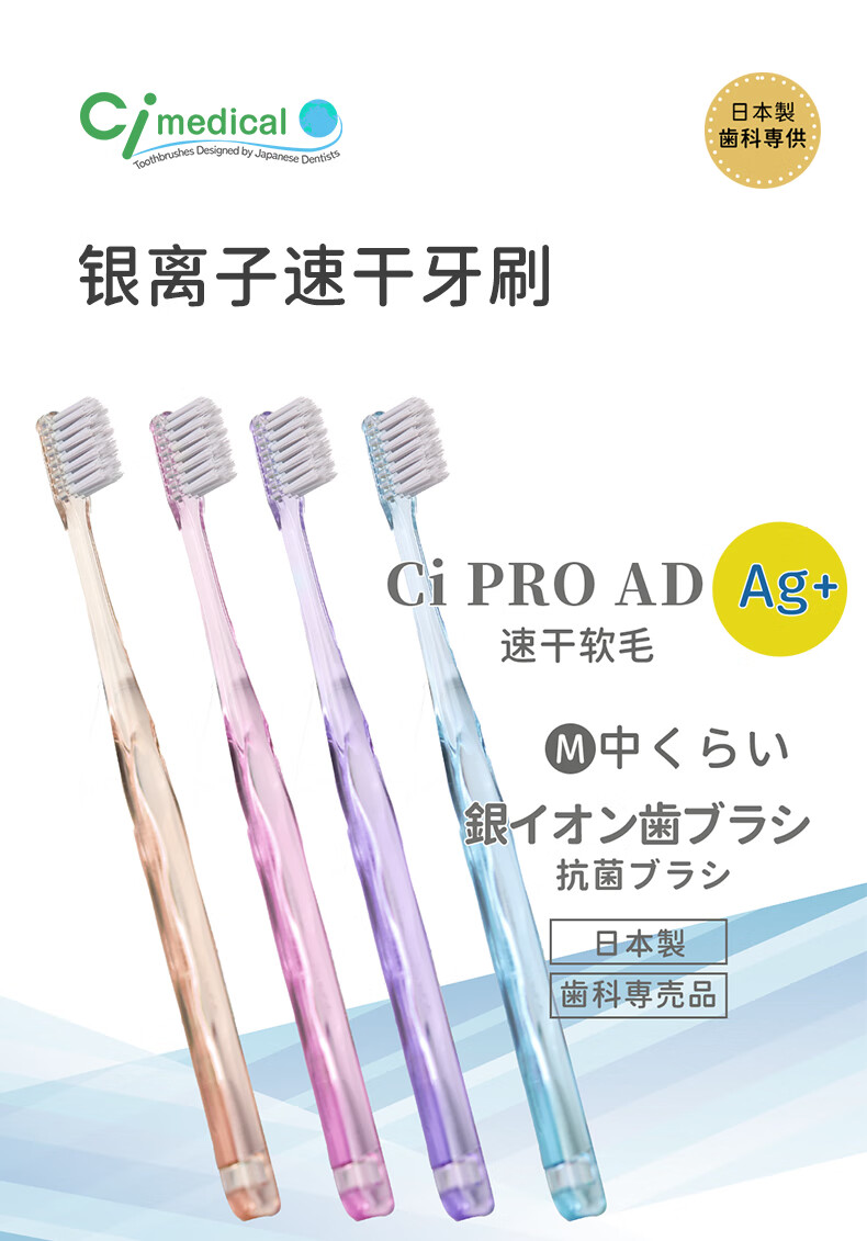 Ci Medical imported silver ion Ag+ quick-drying toothbrush small head medium soft bristles deep cleaning between teeth manual dental 1 pack
