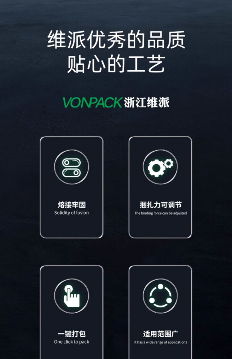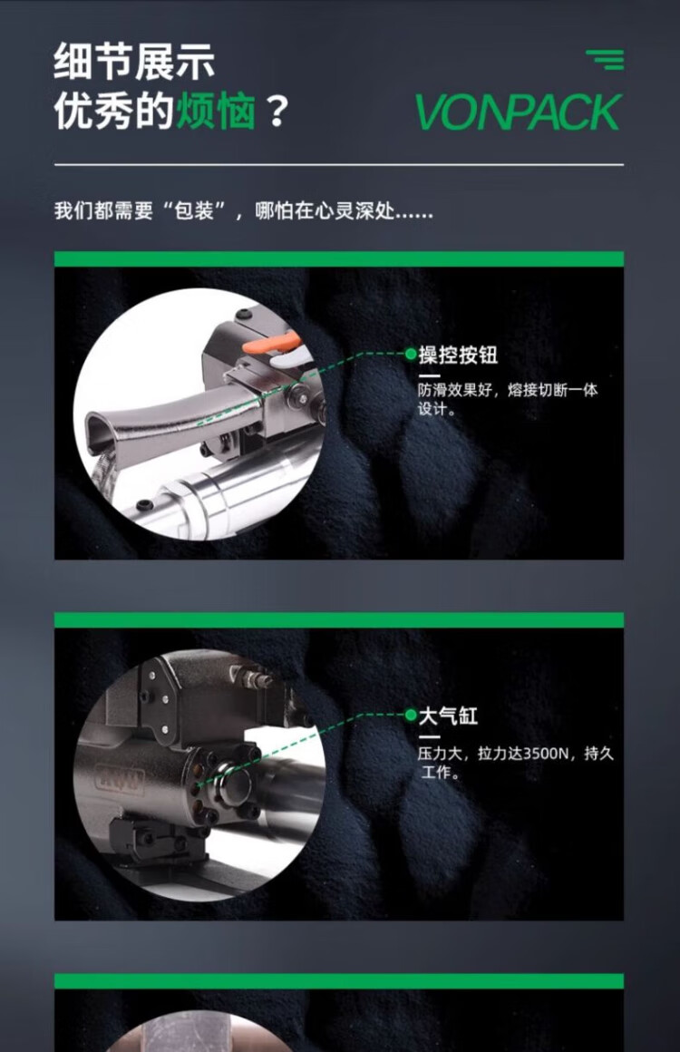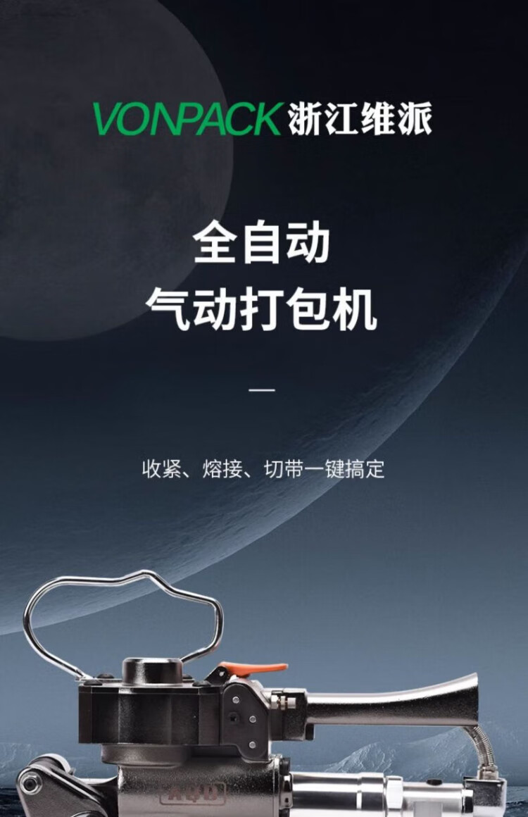 VONPACK pneumatic automatic hot melt portable fully automatic carton plastic steel belt buckle-free hot melt machine PET pneumatic baler PP belt hot melt packaging tensioner brick factory AQD19