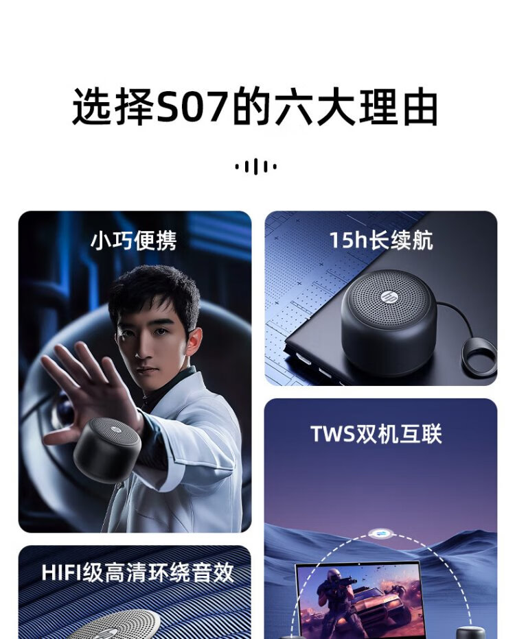 HP s07 Bluetooth Speaker Desktop Laptop Mobile Phone Desktop Speaker Portable Outdoor Mini Wireless Internet Small Speaker Black