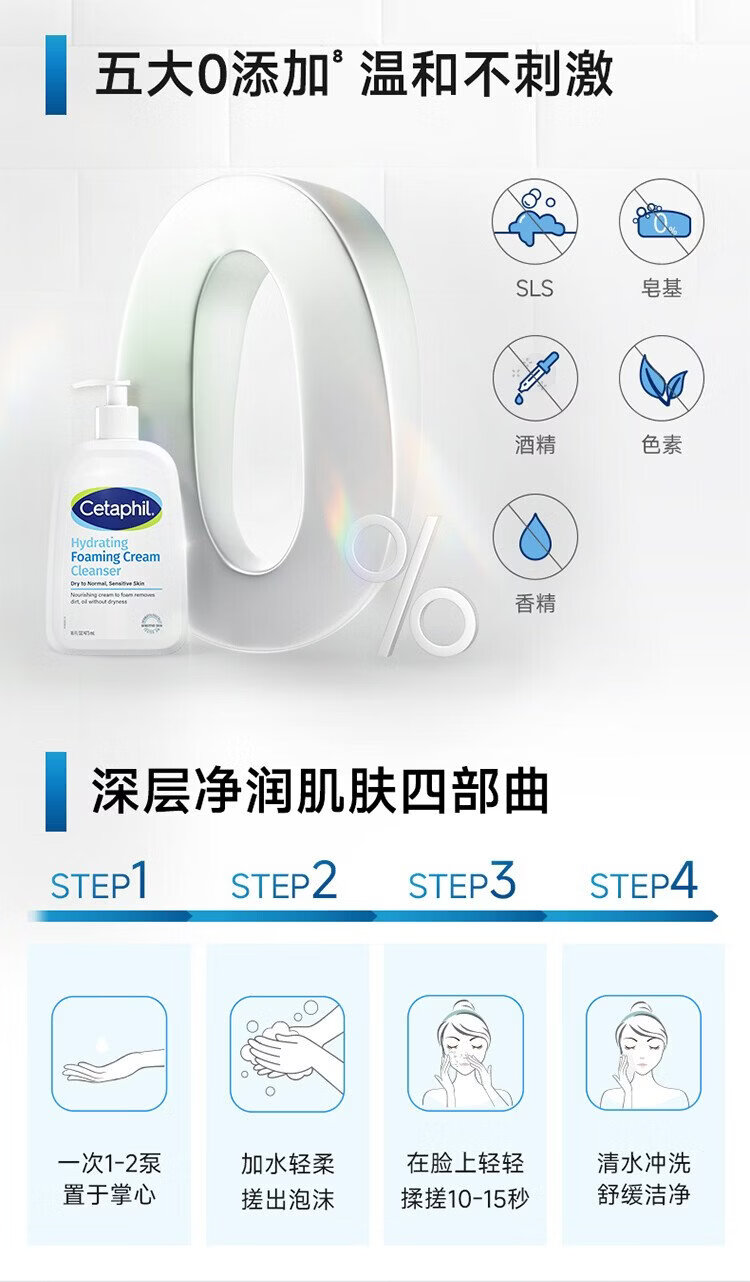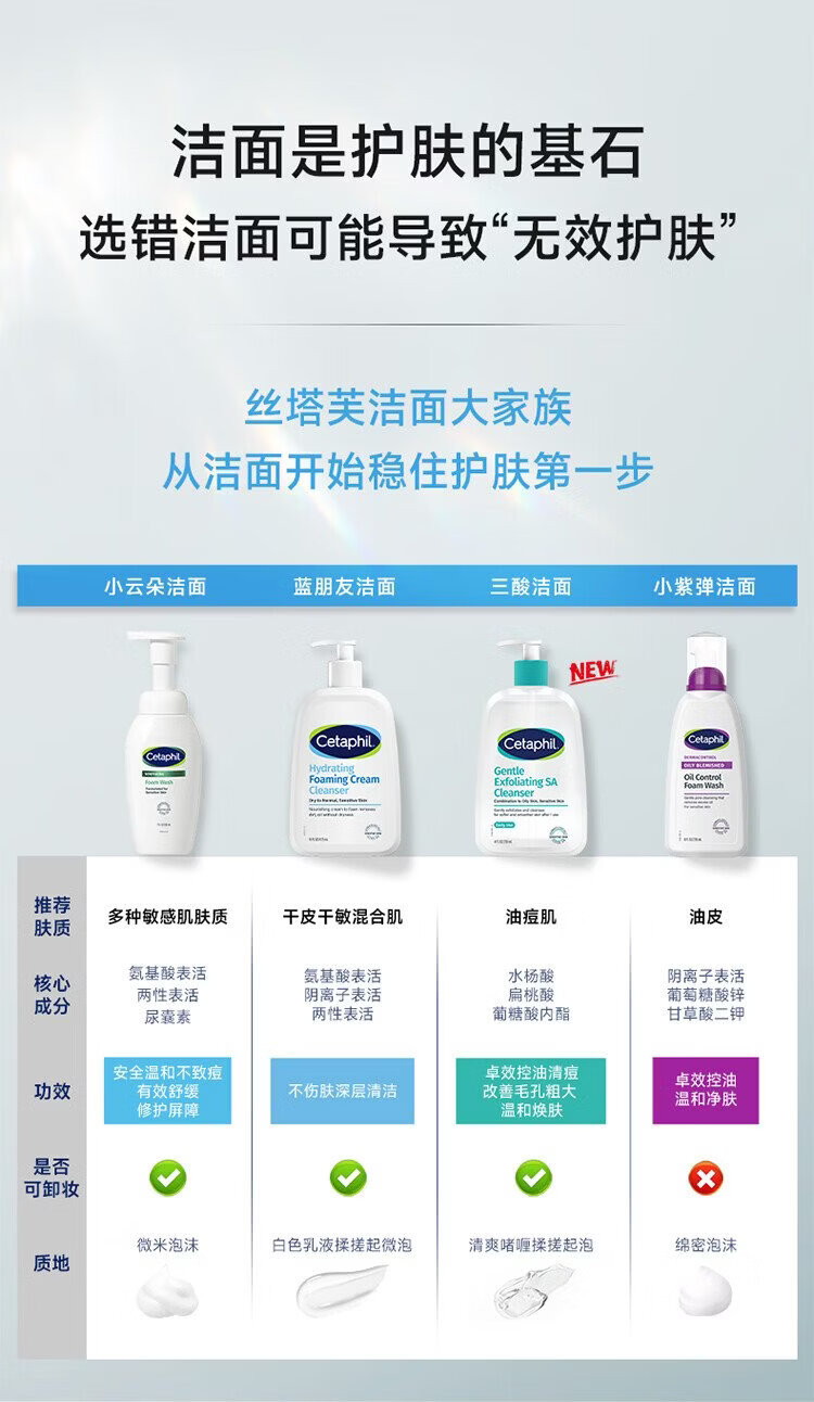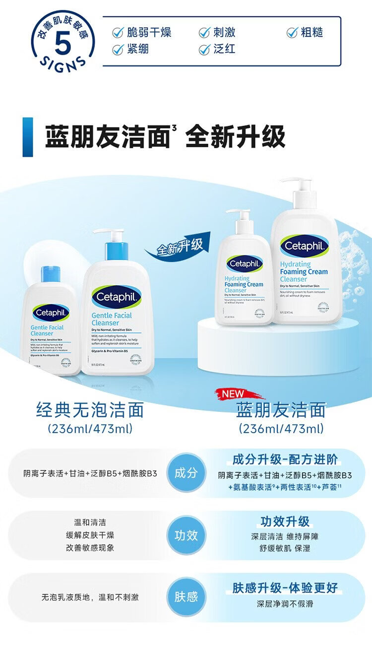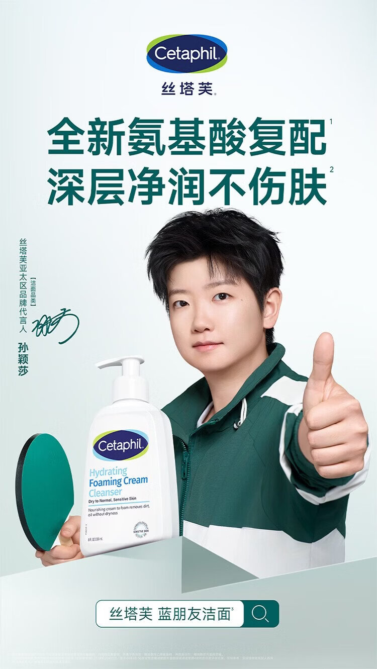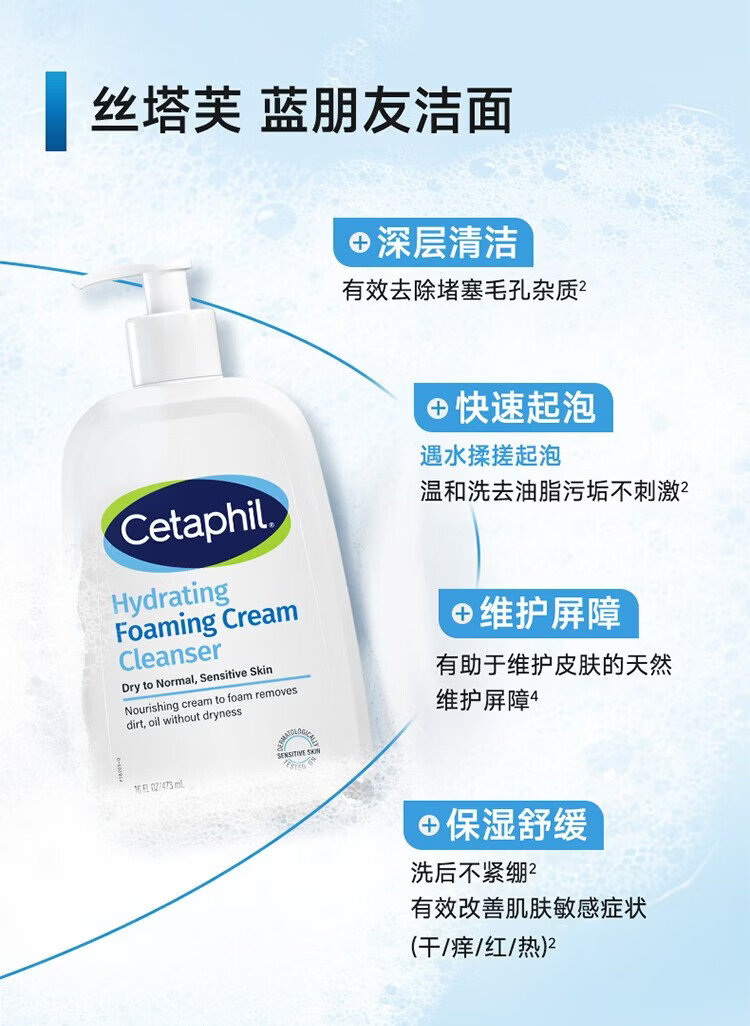 Cetaphil Sun Yingsha's same amino acid gentle and moisturizing foam blue friend cleansing 236ml facial cleanser for men and women with sensitive skin