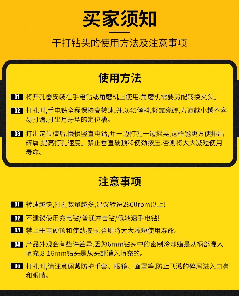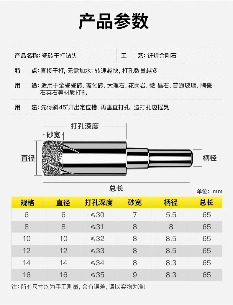 Huhao ceramic tile dry drilling all-ceramic tile drilling special drill glass vitrified tile marble ceramic jade hole opener