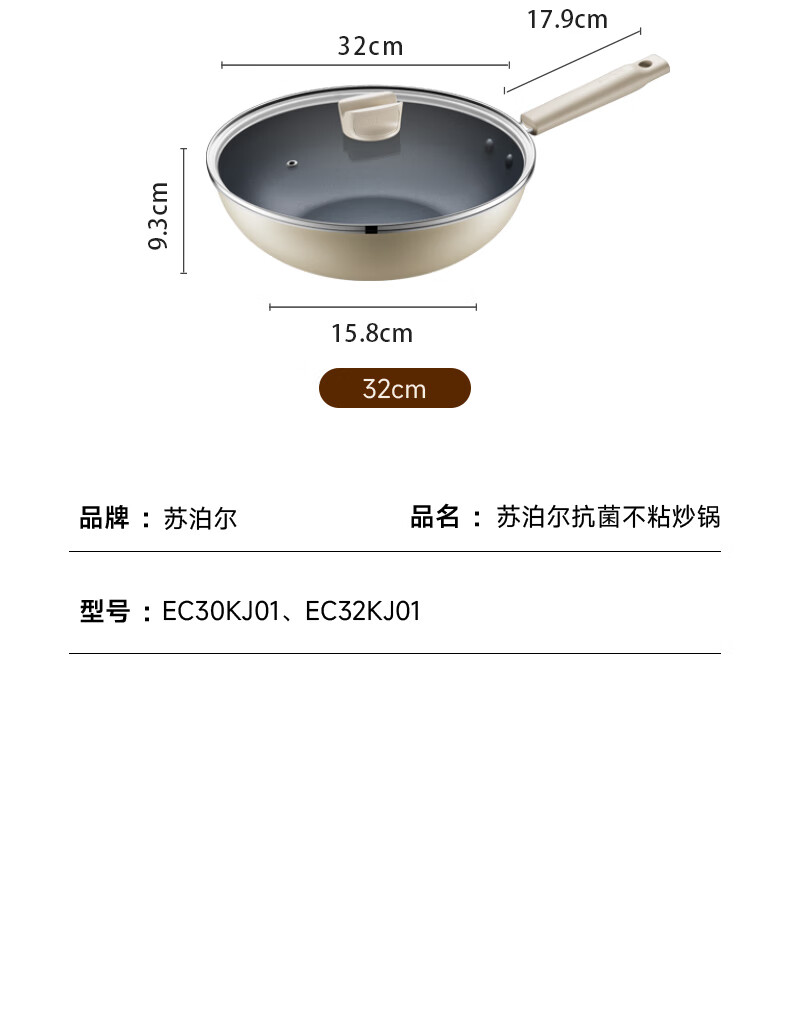 SUPOR antibacterial, non-stick and wear-resistant wok, less oily smoke pan 32cm open flame gas universal wok EC32KJ01