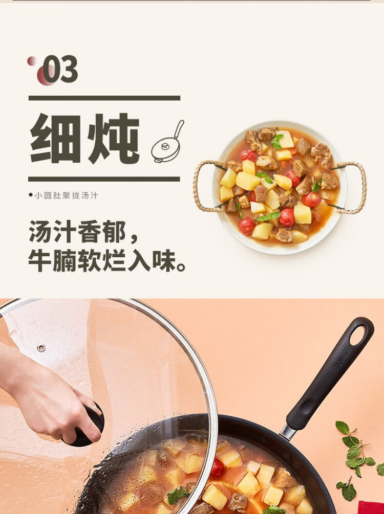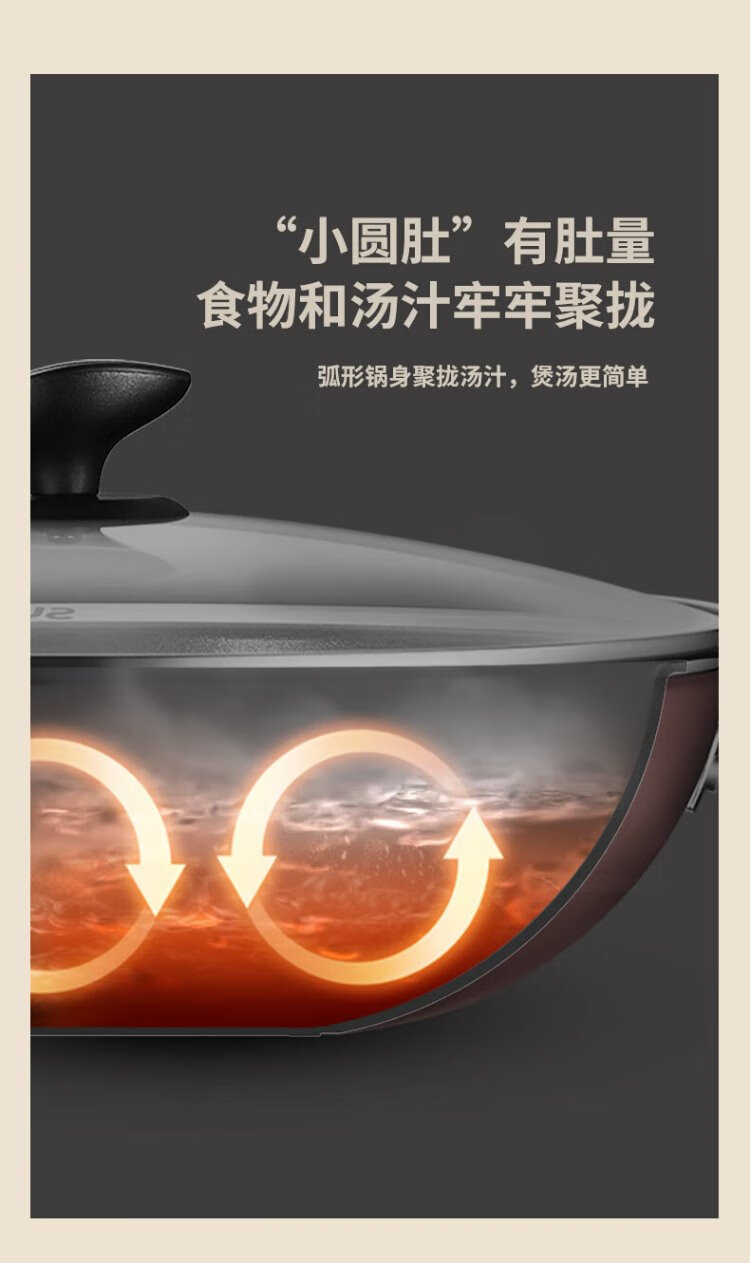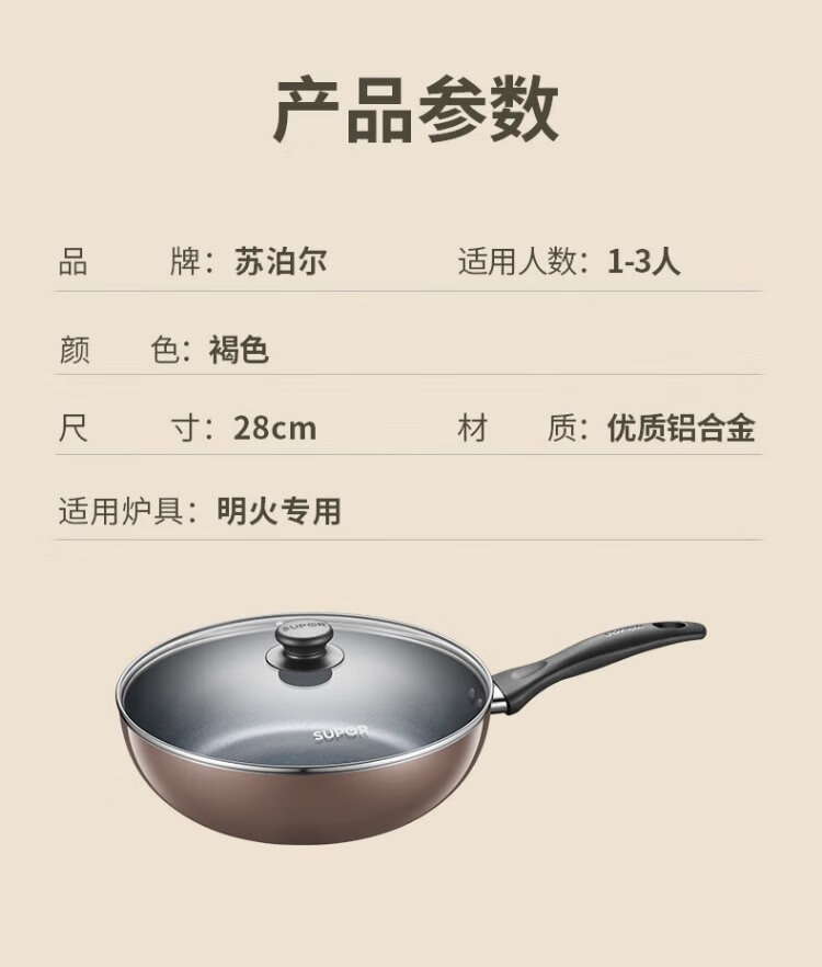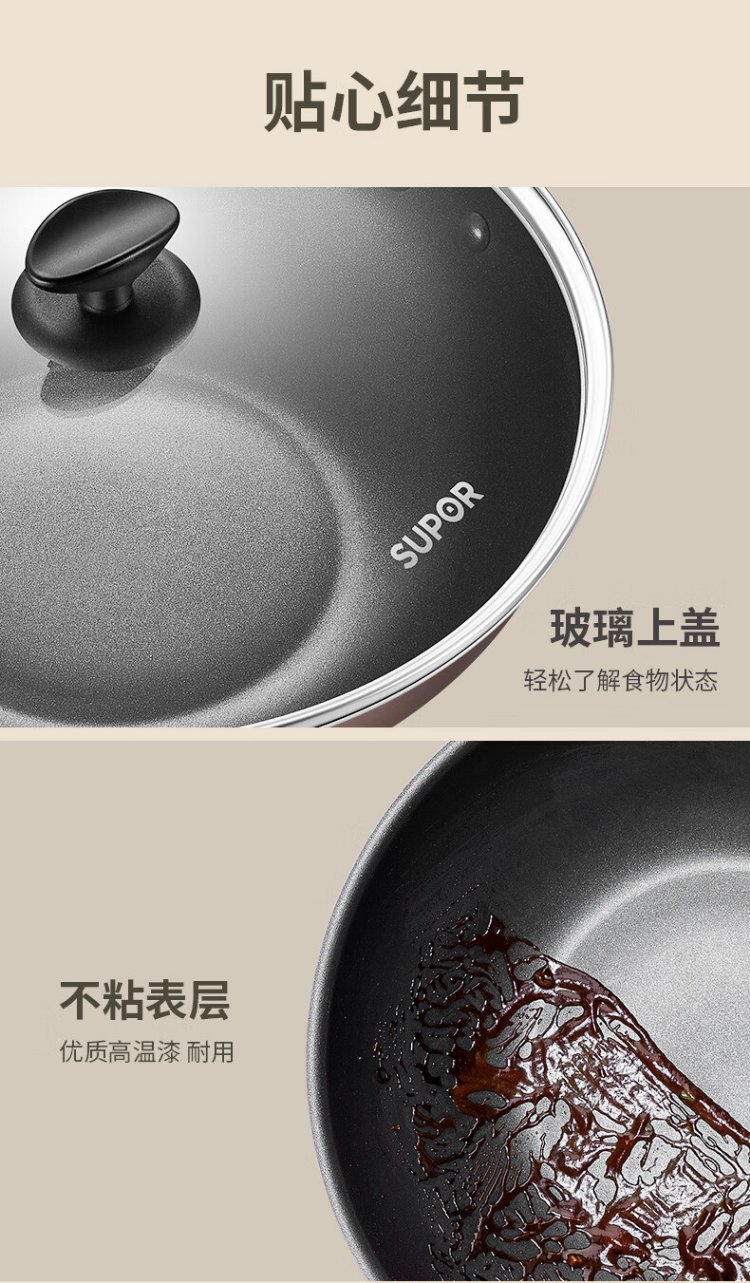 SUPOR wok, easy-to-clean non-stick wok, less oily smoke 28cm open flame gas wok EJ28RP16