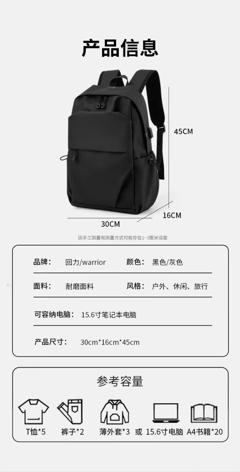 Backpack for men, large capacity, business trip, laptop bag, junior high school, high school student bag