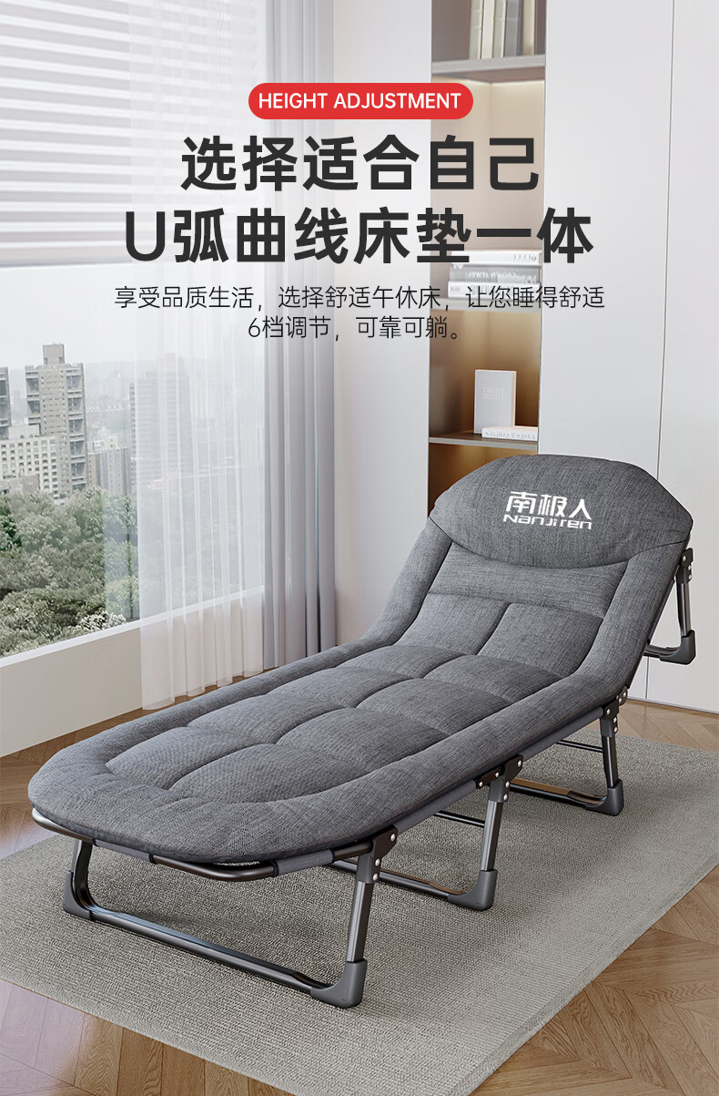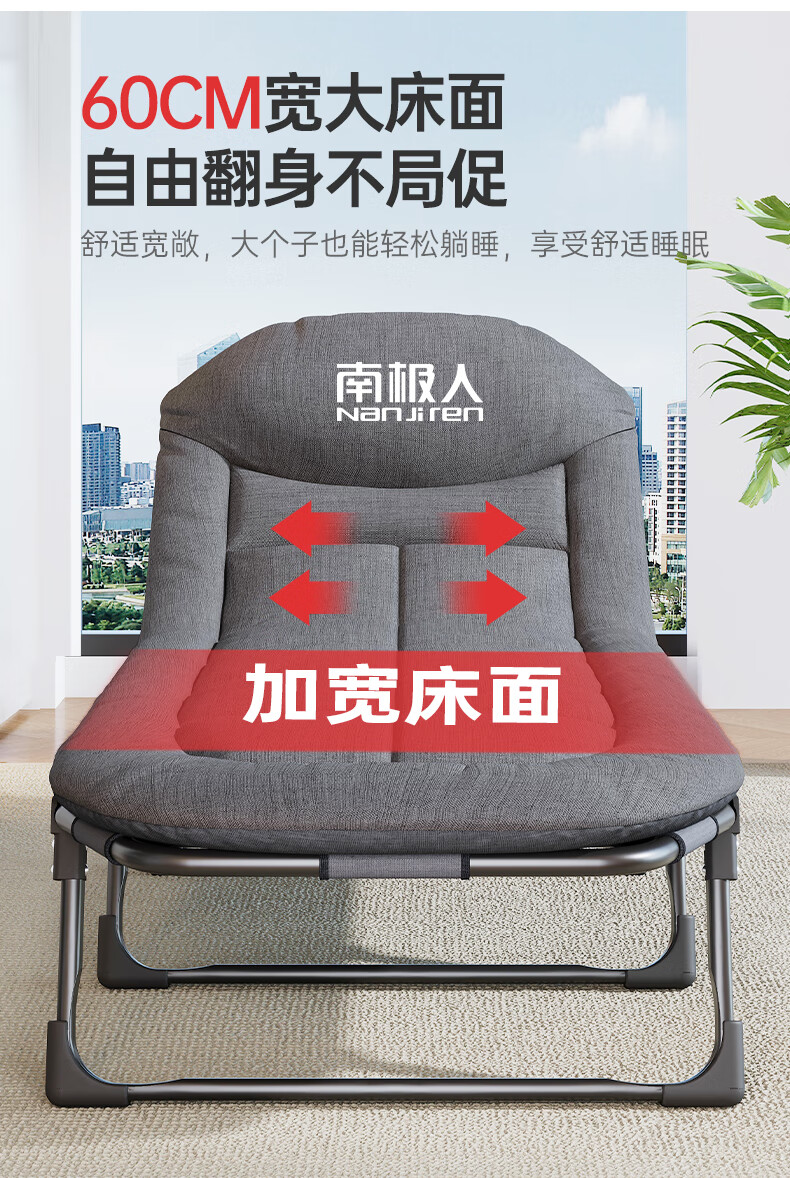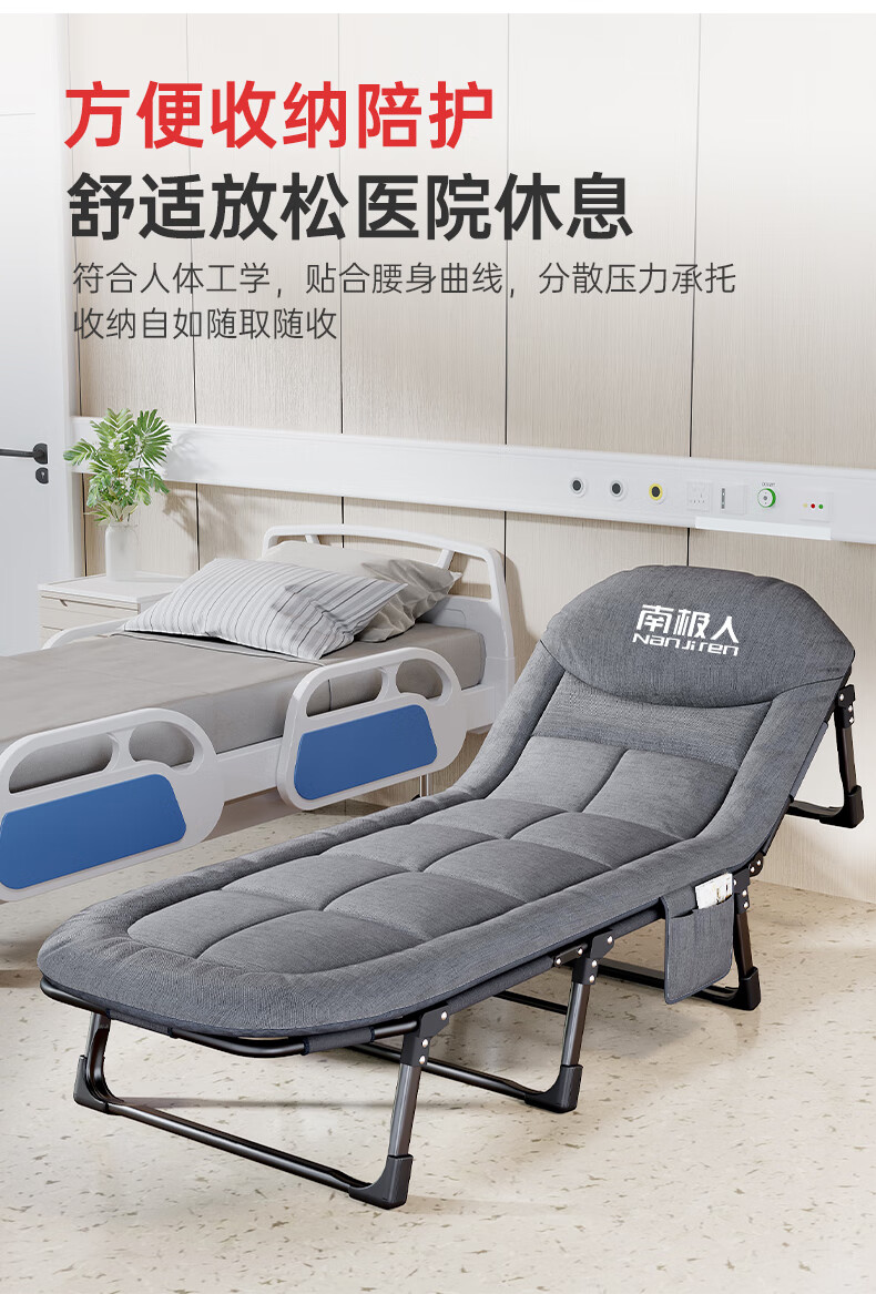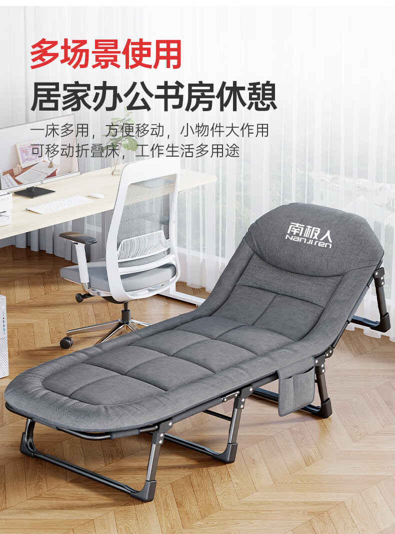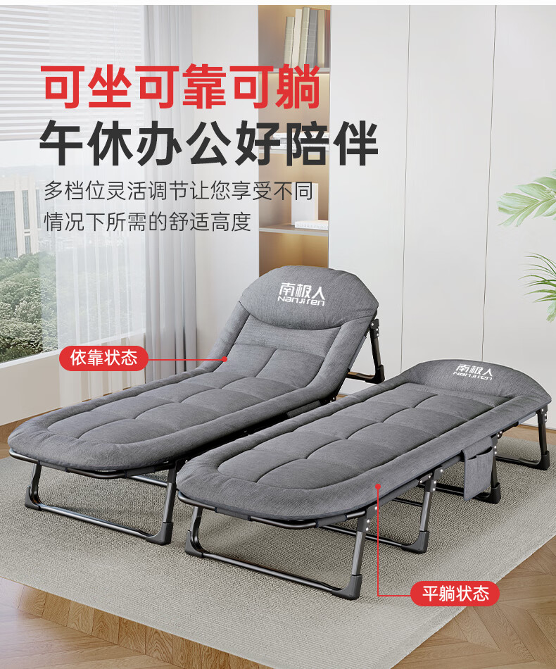 Nanjiren folding bed recliner single bed office nap chair folding nap bed companion bed simple camp bed light hemp gray