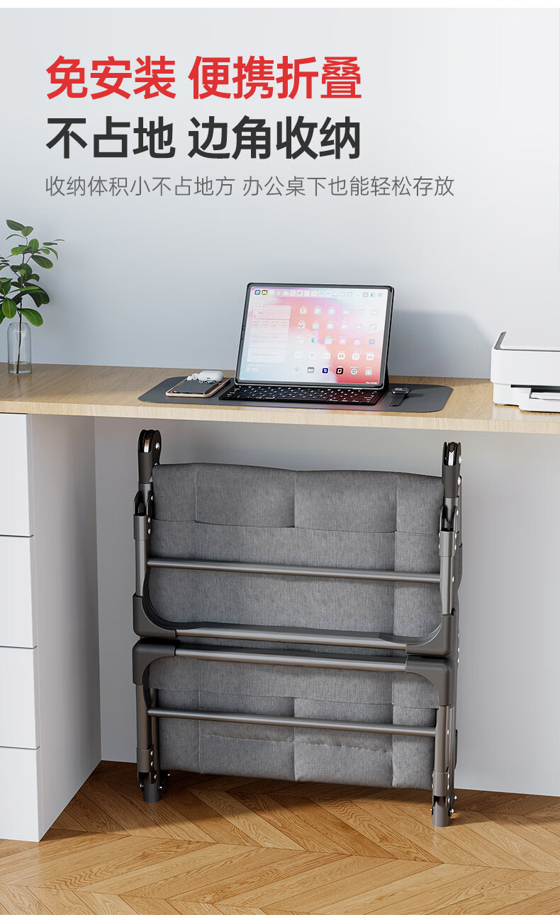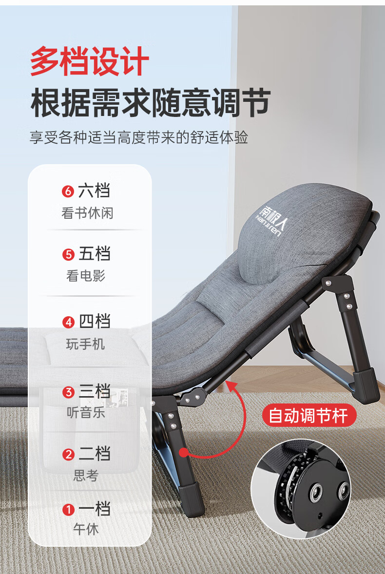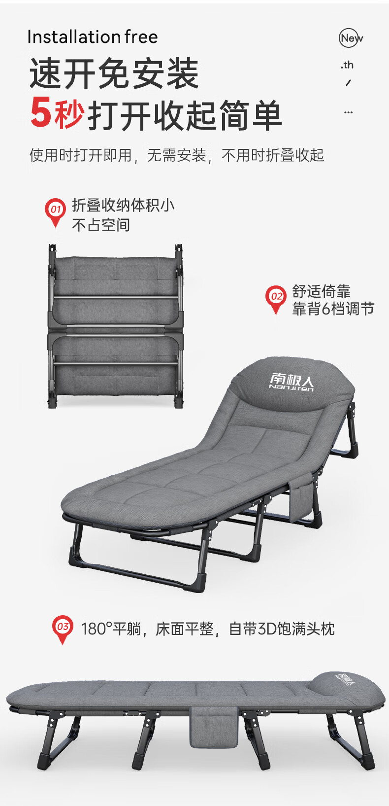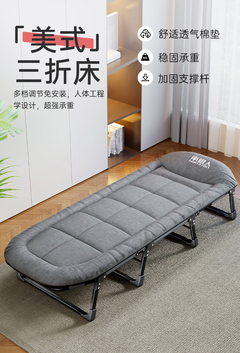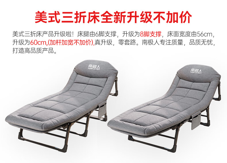 Nanjiren folding bed recliner single bed office nap chair folding nap bed companion bed simple camp bed light hemp gray