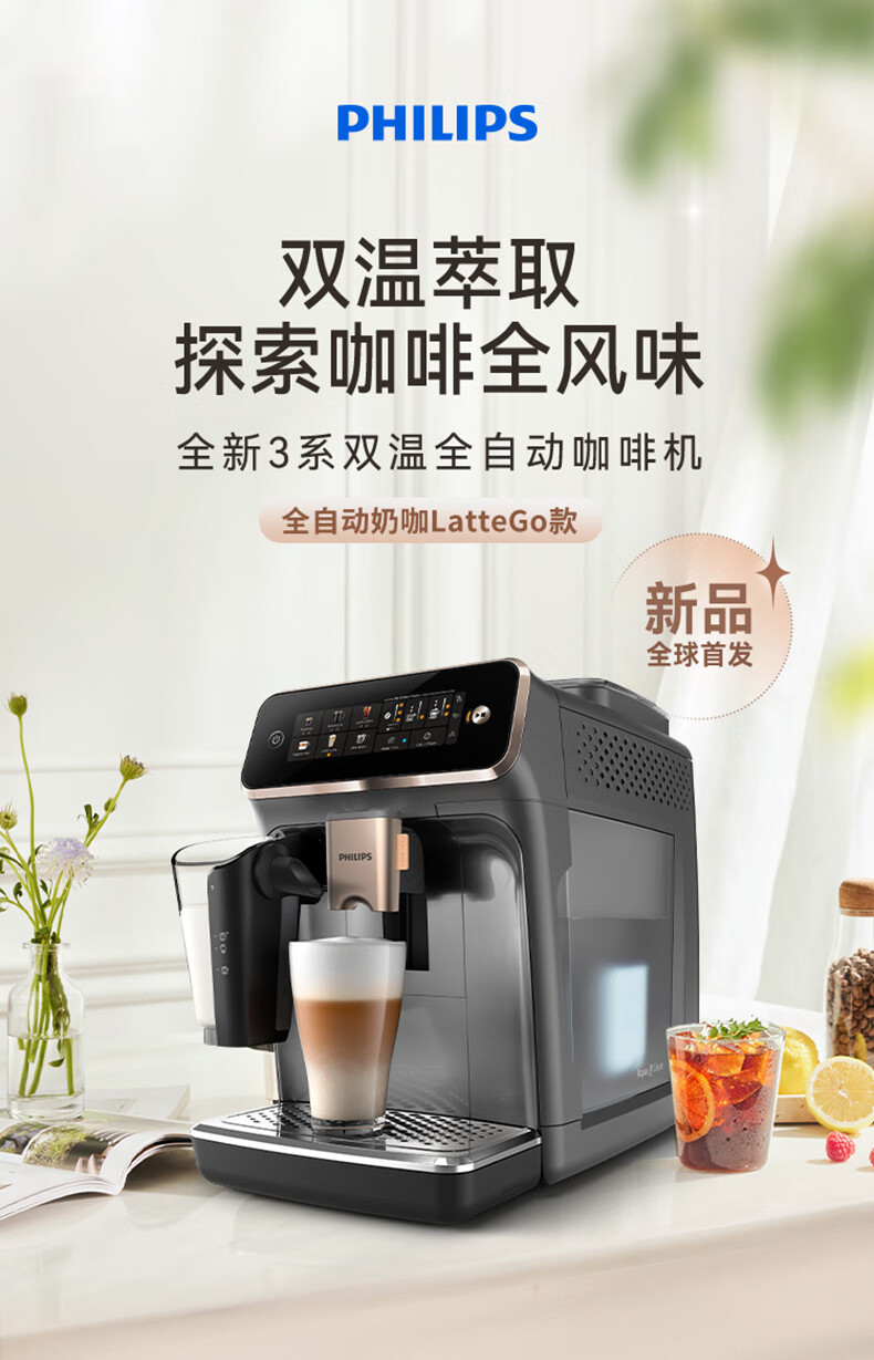 Philips (PHILIPS) industry hot model Yunduo coffee machine new 3 series EP3341/62 home/office fully automatic espresso cold brew grinding integrated coffee machine New Year gift