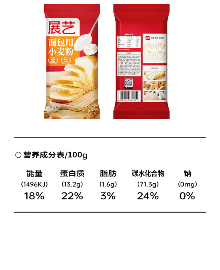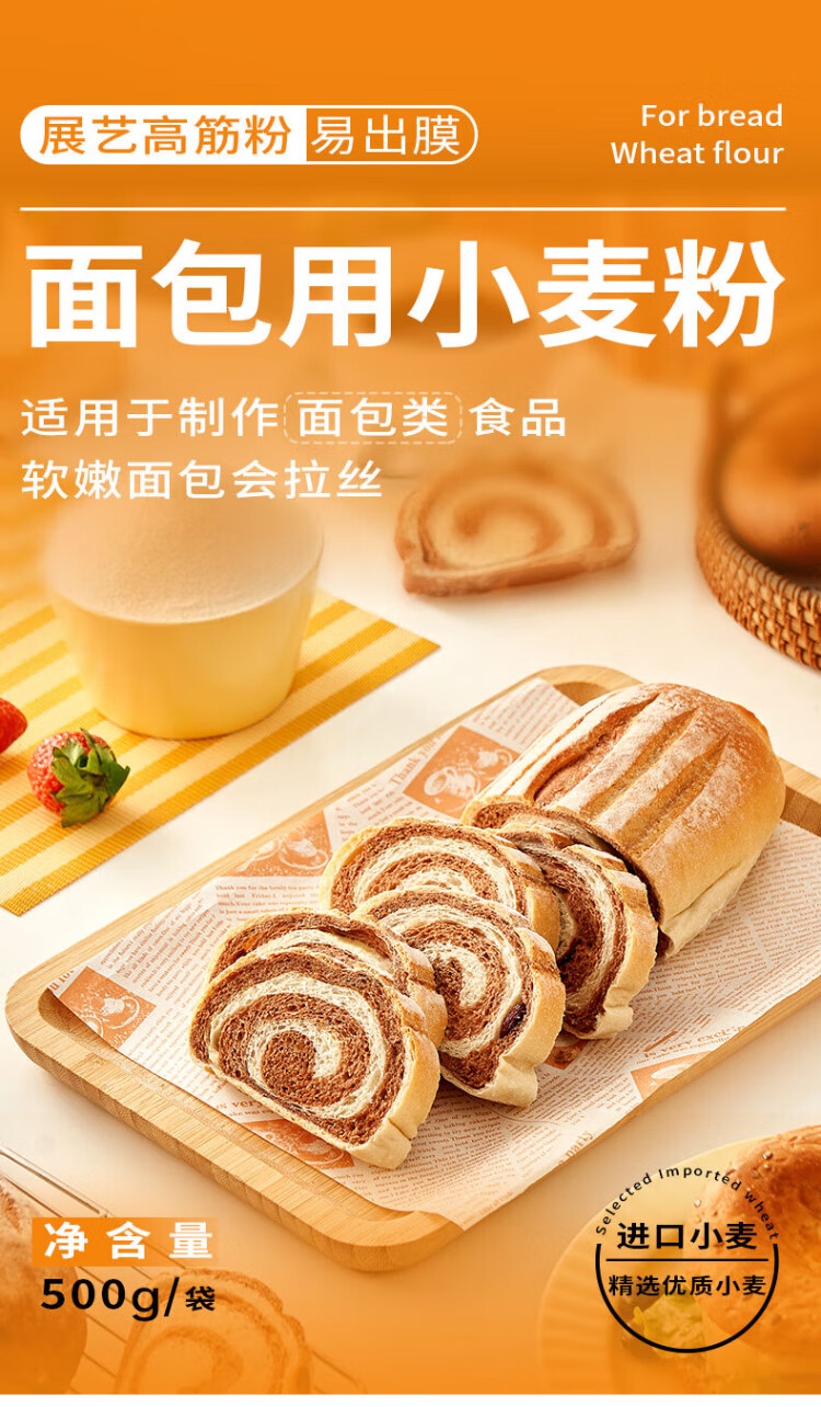 Zhanyi Bread Flour High Gluten Wheat Flour 500g*2 + Highly Active Yeast 50g Baking Ingredients Set