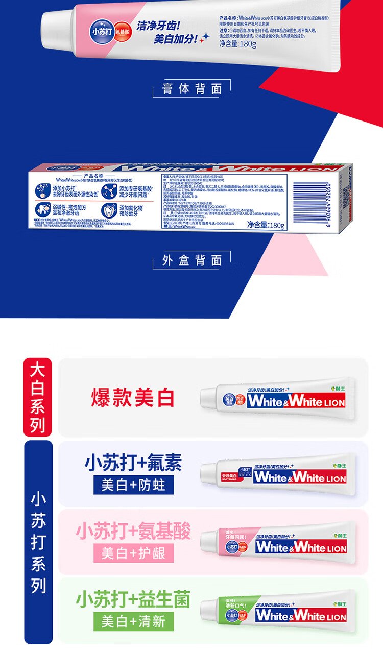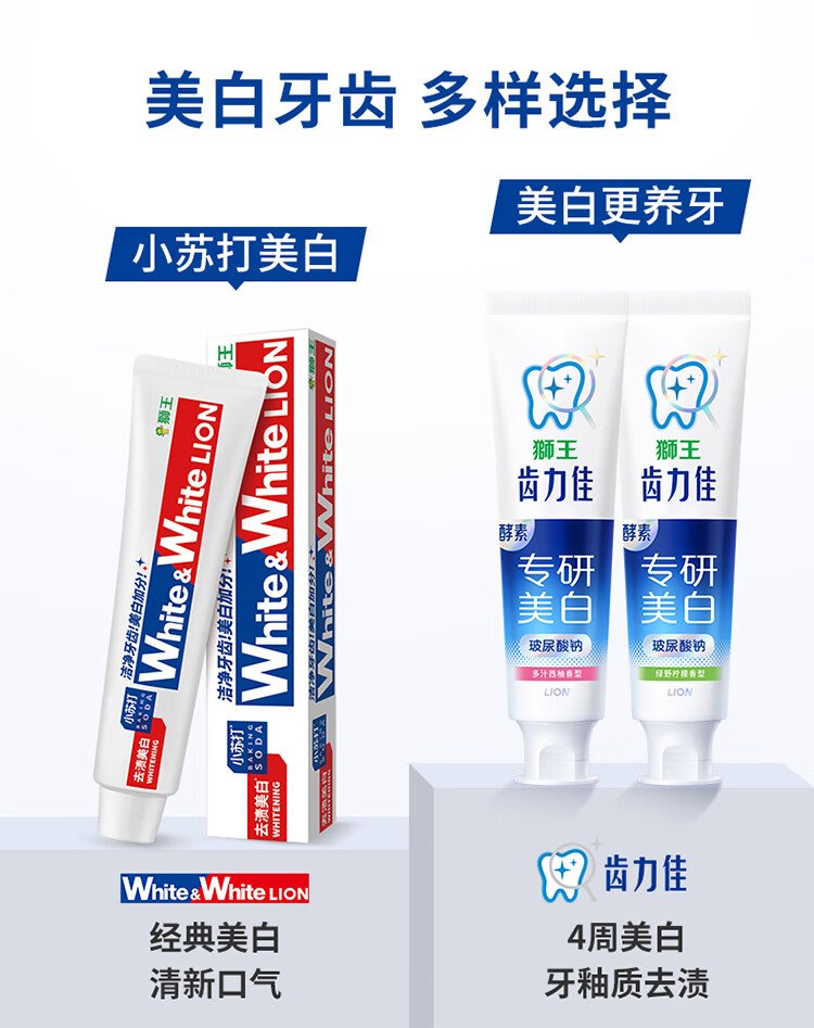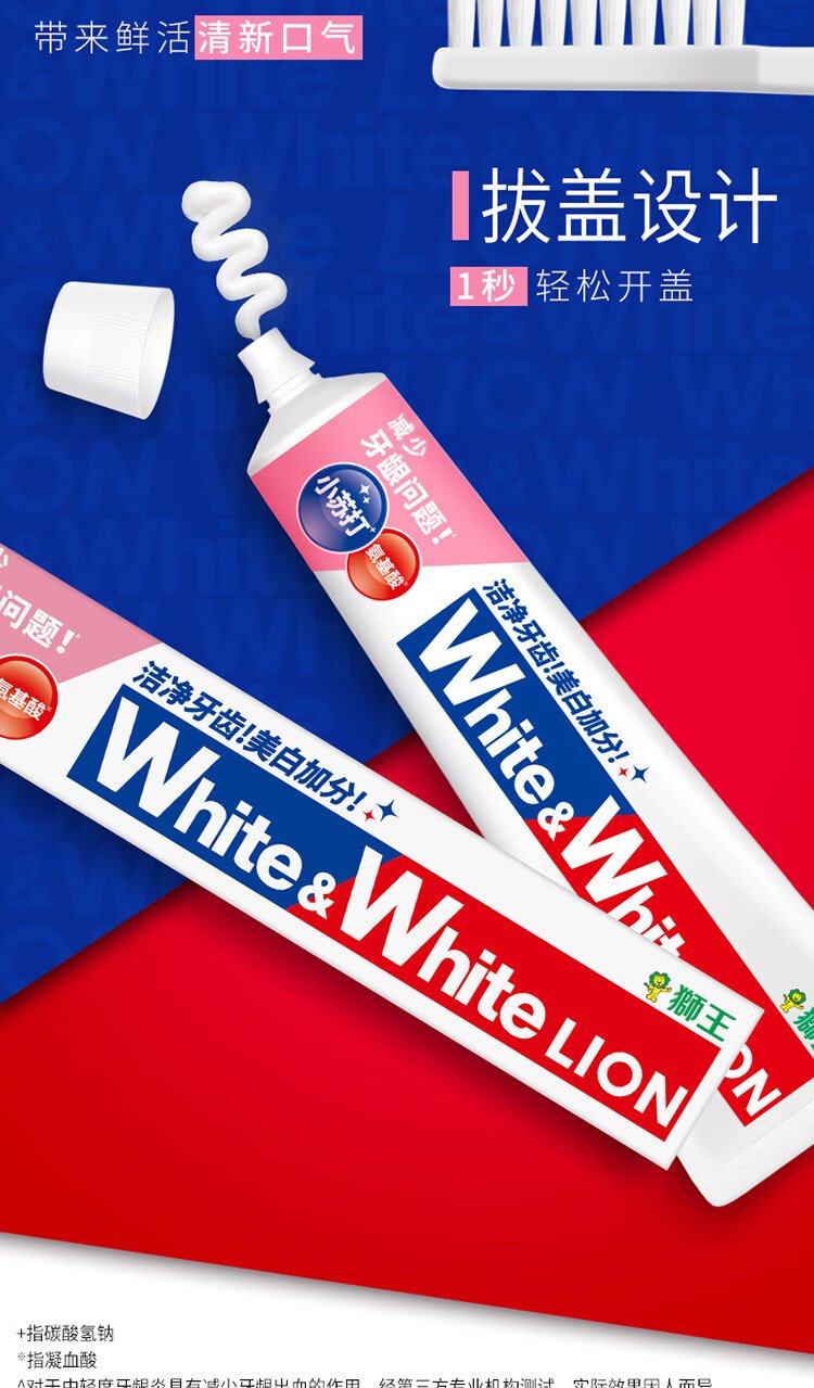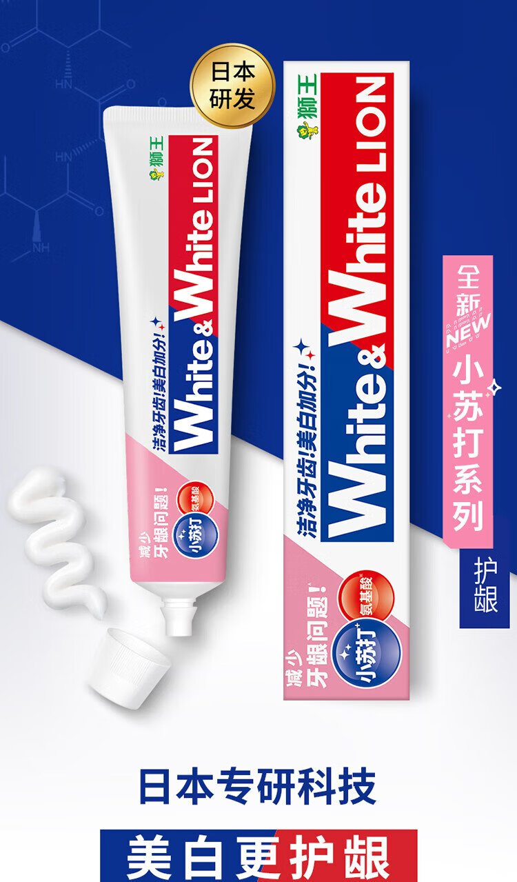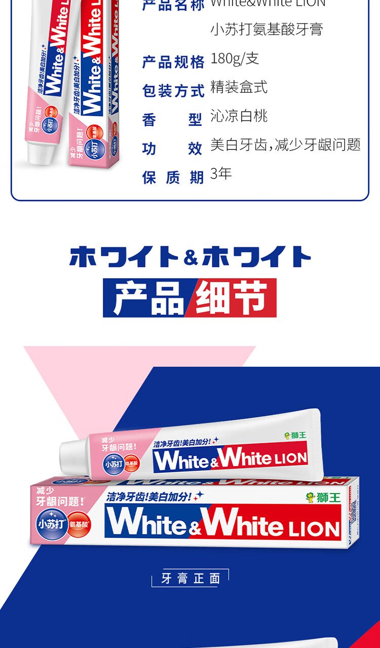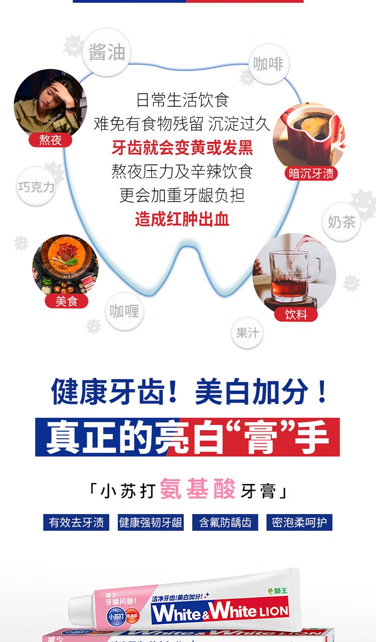 Lion WhiteWhite Baking Soda Toothpaste Whitens Gums, Removes Yellowing and Removes Teeth Stains Fluoride White Peach Flavor 180g Jingdong Self-operated
