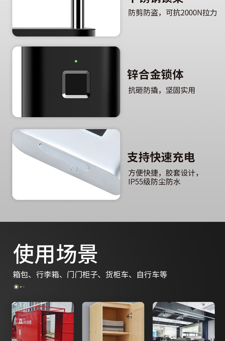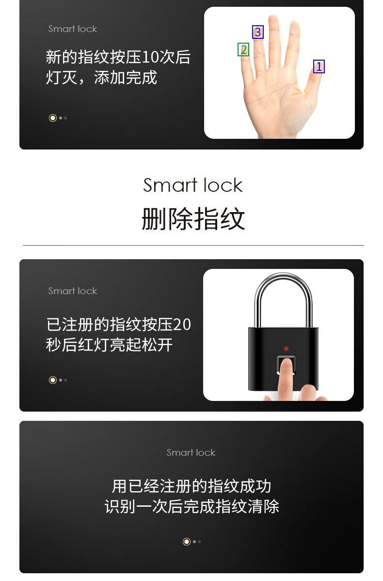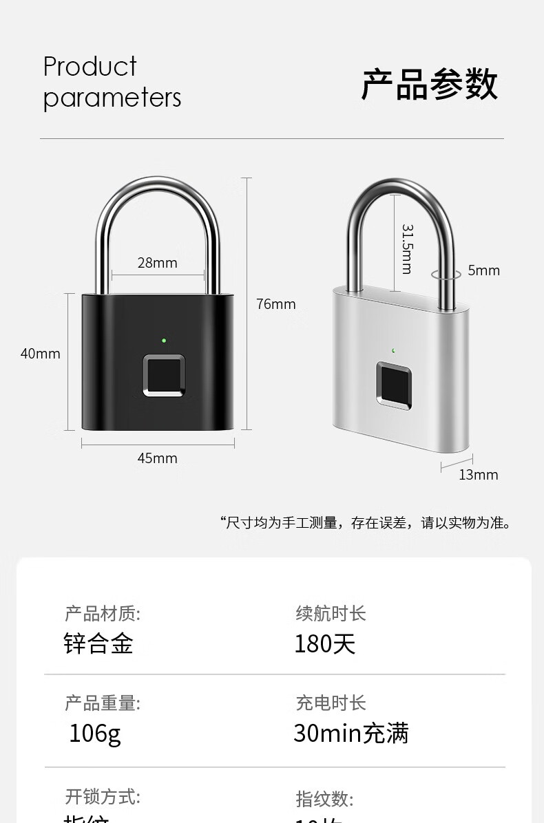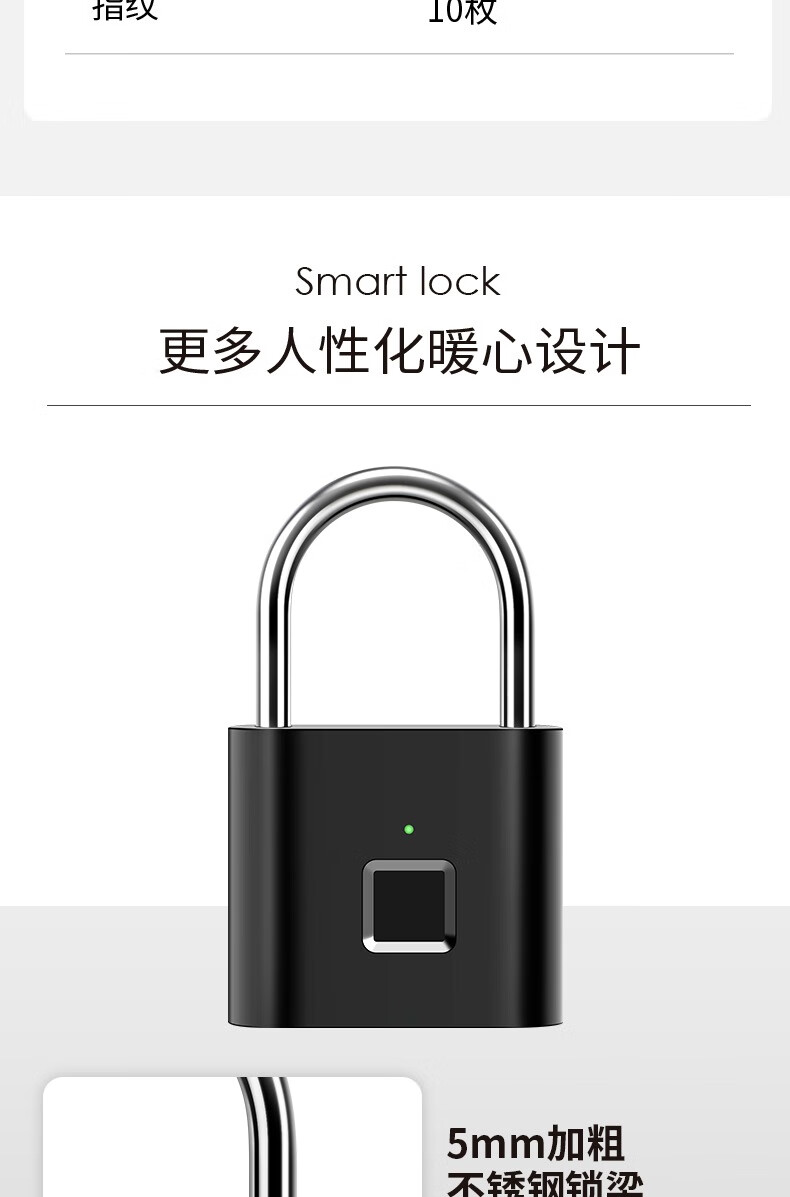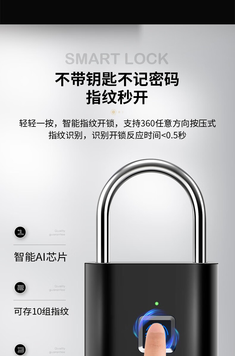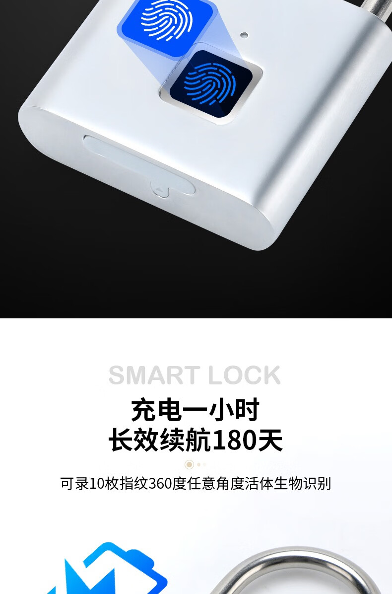 Qiansu wheel fingerprint smart padlock fingerprint padlock smart electronic padlock silver one basic model 10 fingerprints