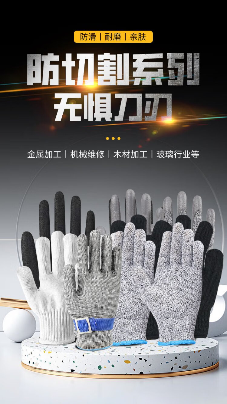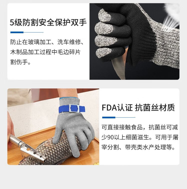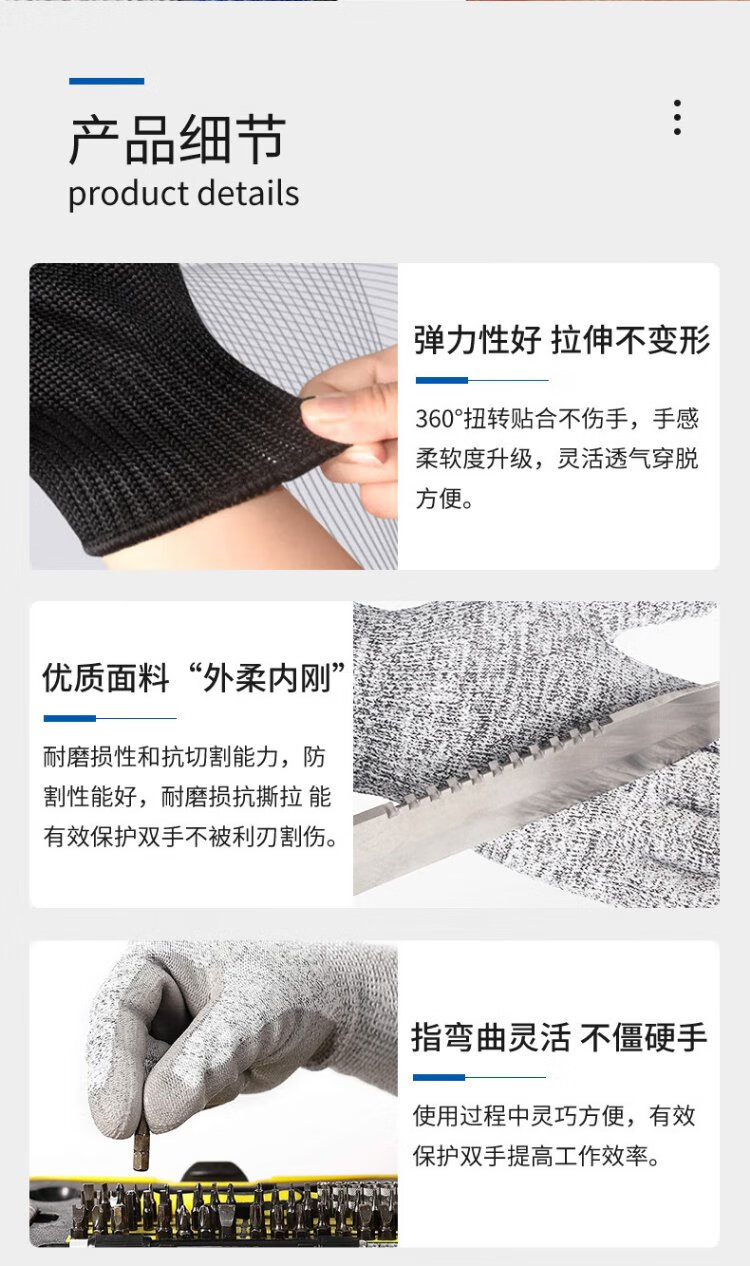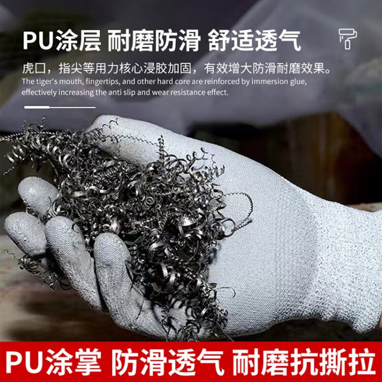 Teweiqiang level 5 cut-resistant gloves 2 pairs/pack polyester steel wire densely woven anti-scratch work white