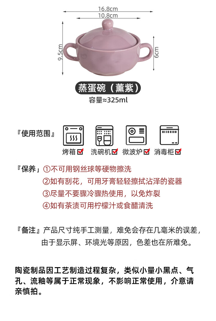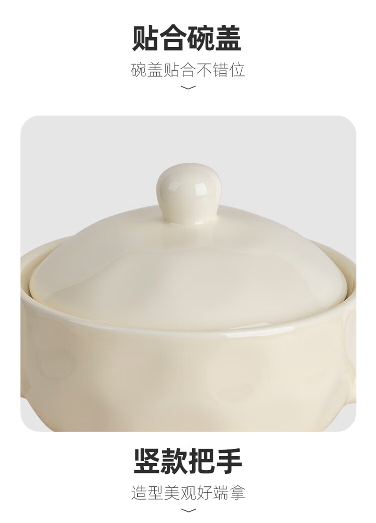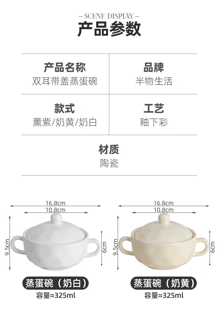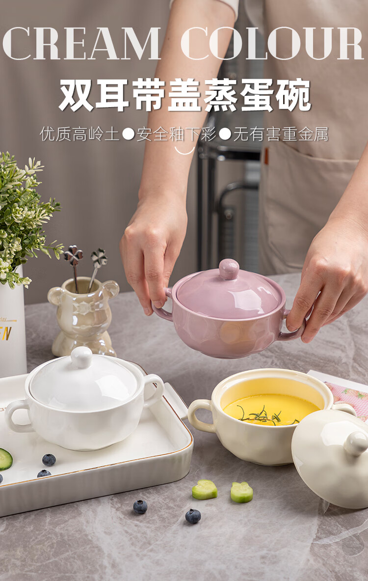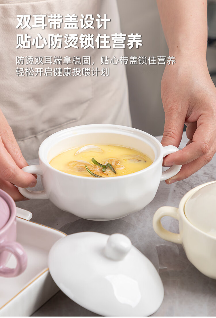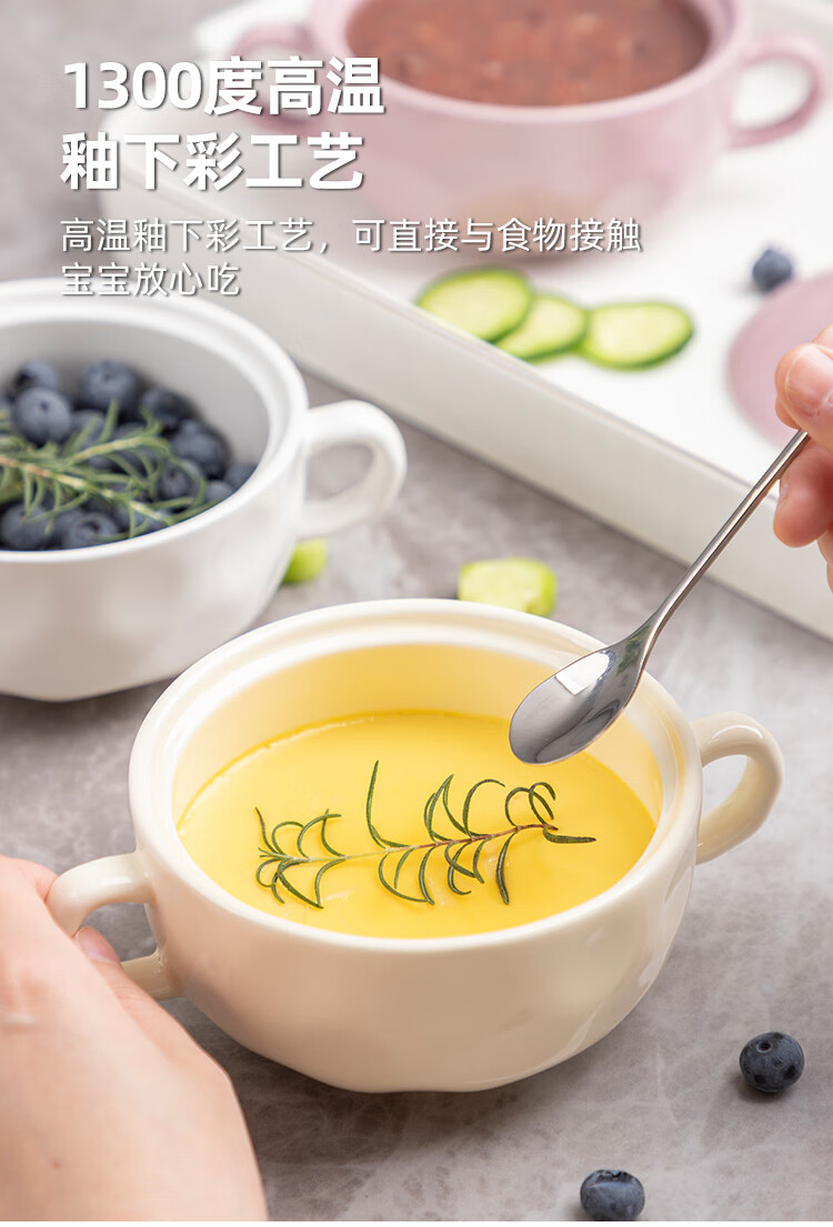 Half Life Steamed Egg Bowl Baby Food Complementary Bowl Steamed Egg Custard Special Covered Ceramic Small Steaming Bowl Double-Eared Bowl Home Steamed Egg Custard Bowl