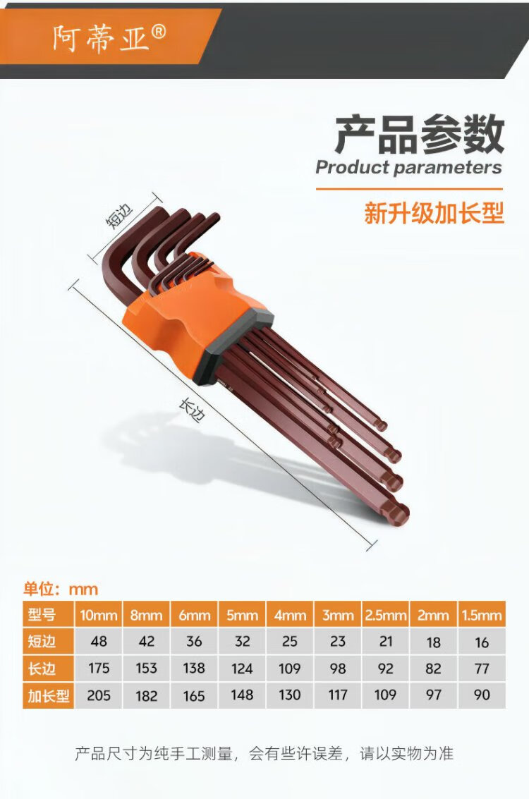 Atiyah 9-piece set of hexagonal wrenches, ball head screwdriver combination set, set of hexagonal tools