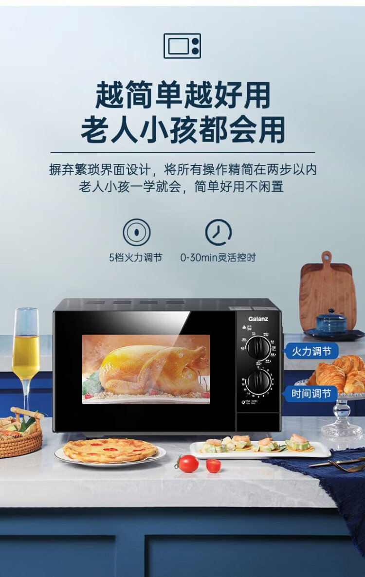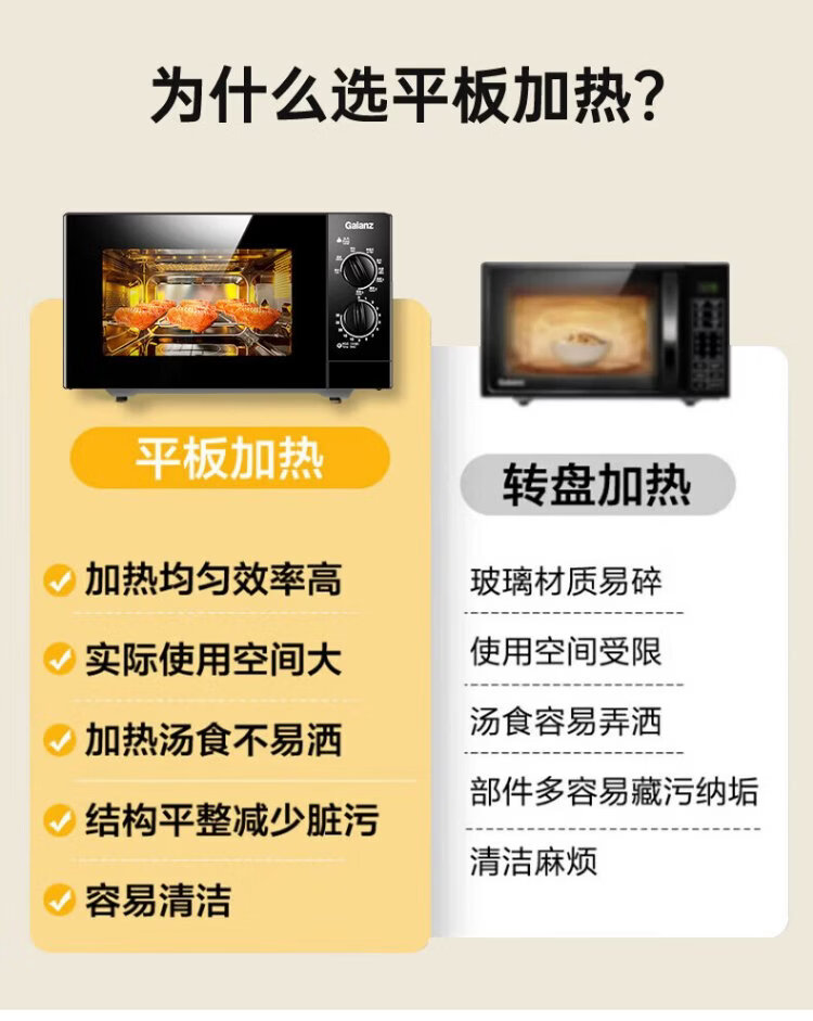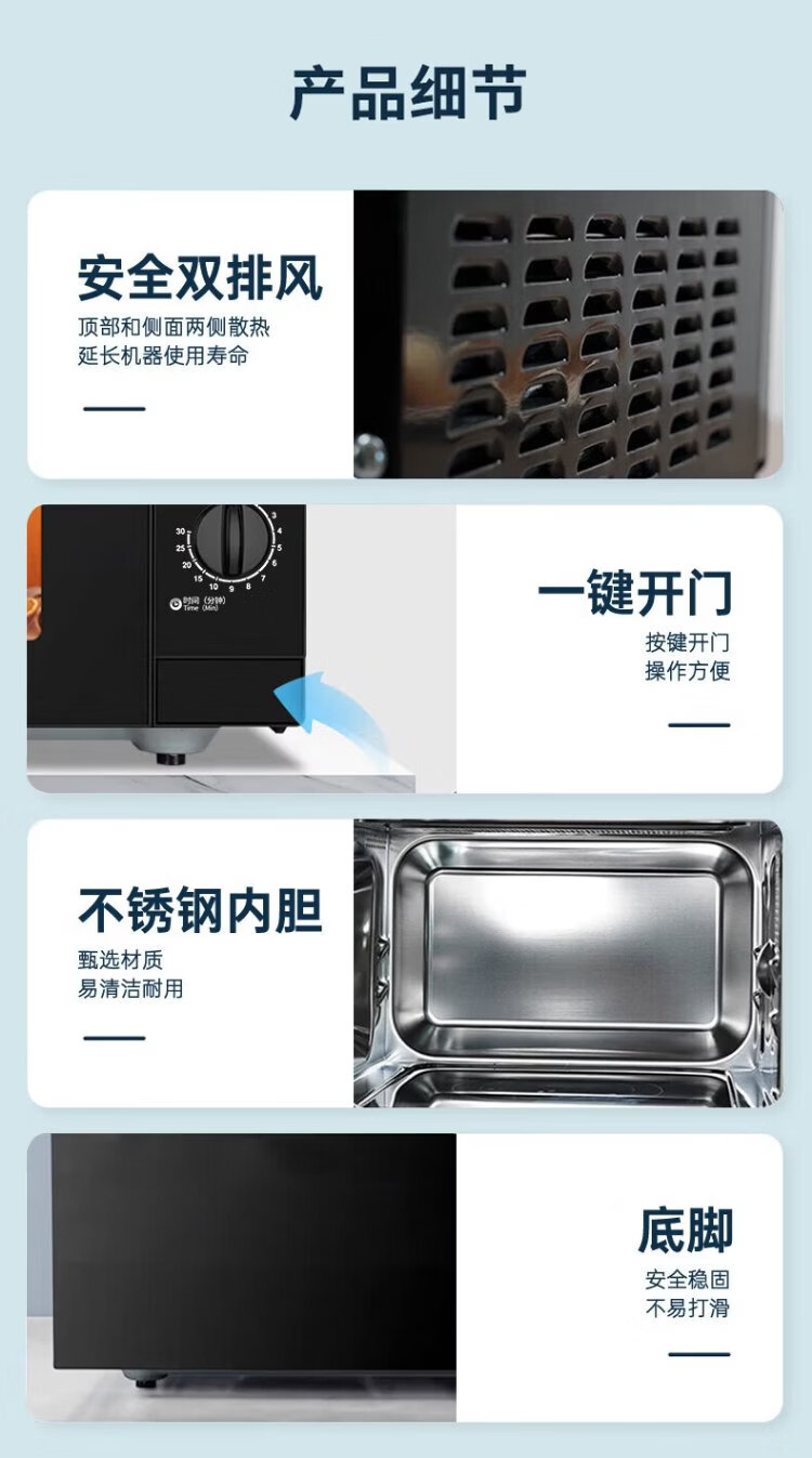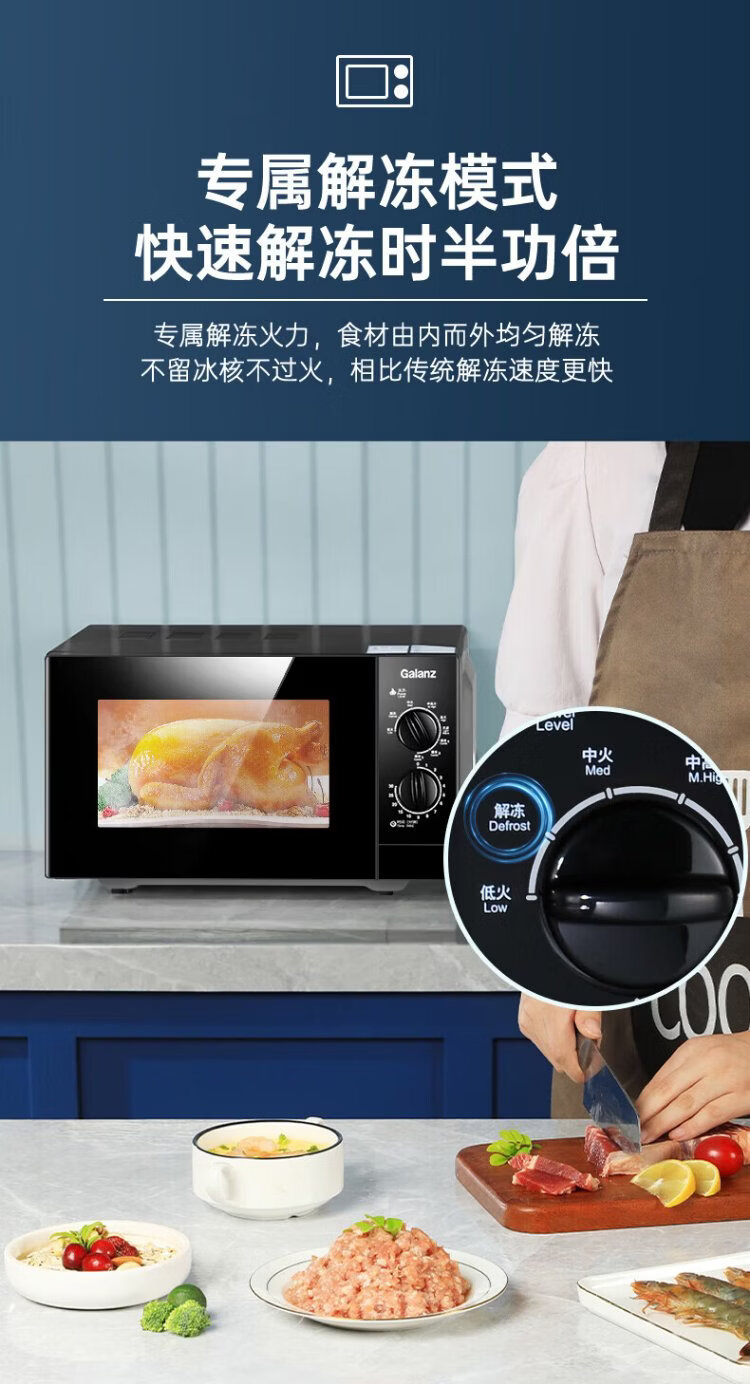 Galanz microwave oven all-in-one machine flat stainless steel liner 23 liters large capacity household light wave oven mechanical knob easy to operate G80F23SP-M8 (S0)