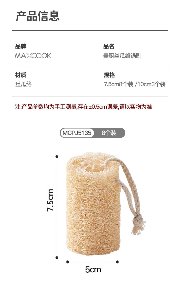 MAXCOOK dishwashing pot brush, loofah pulp brushing dishes and pots, kitchen sink and stove cleaning brush, loofah 3 pieces MCPJ5159