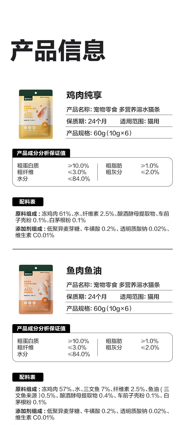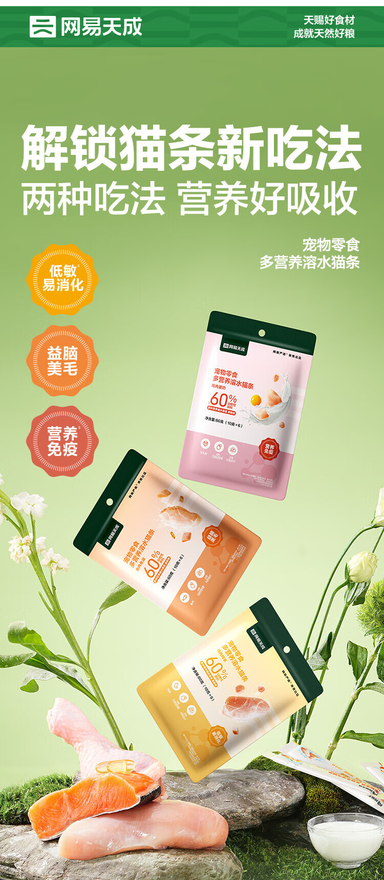 NetEase carefully selected multi-nutrient instant cat strips pure chicken 10g*6