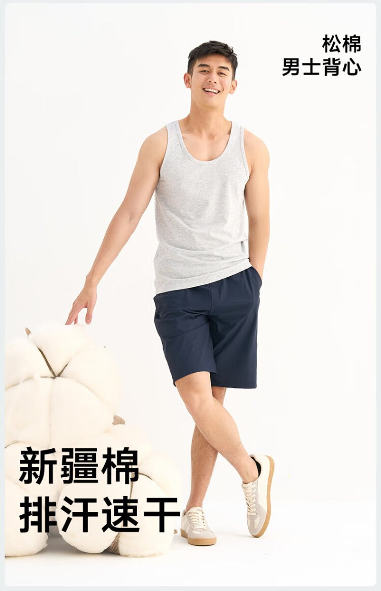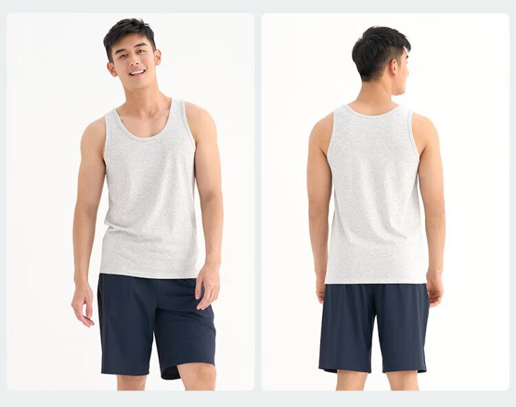 Songshan Cotton Store men's vest simple solid color home outer wear sports undershirt bottoming pajamas cool breathable light gray 175