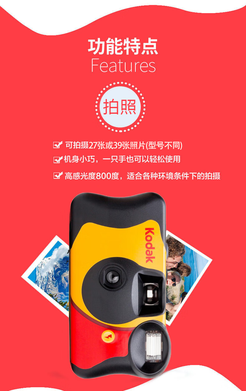 KODAK disposable film camera, children's camera, 27 photos, daylight flash type, film included (sends development and scanning)