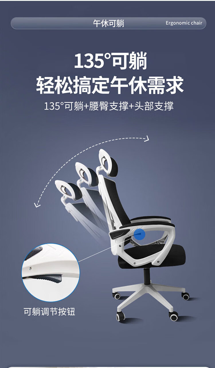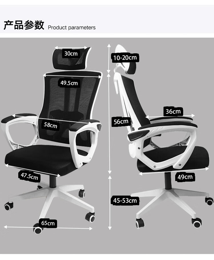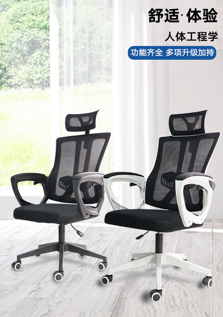Wenstan computer chair lift office chair ergonomic employee gaming chair with pulleys white frame black mesh pulleys reclining model RT-858