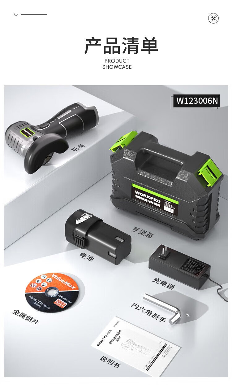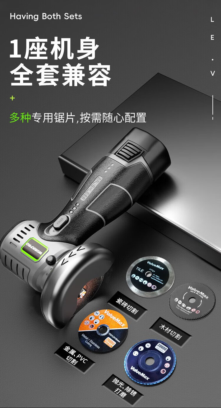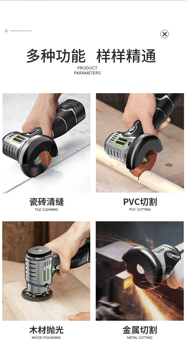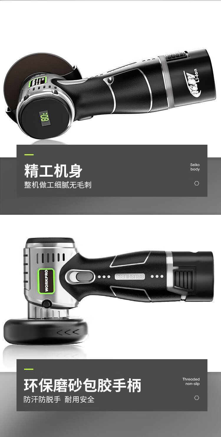 Wankebao (WORKPRO) mini brushless angle grinder lithium electric polisher household handheld rechargeable grinding and polishing machine grinding wheel hand grinder