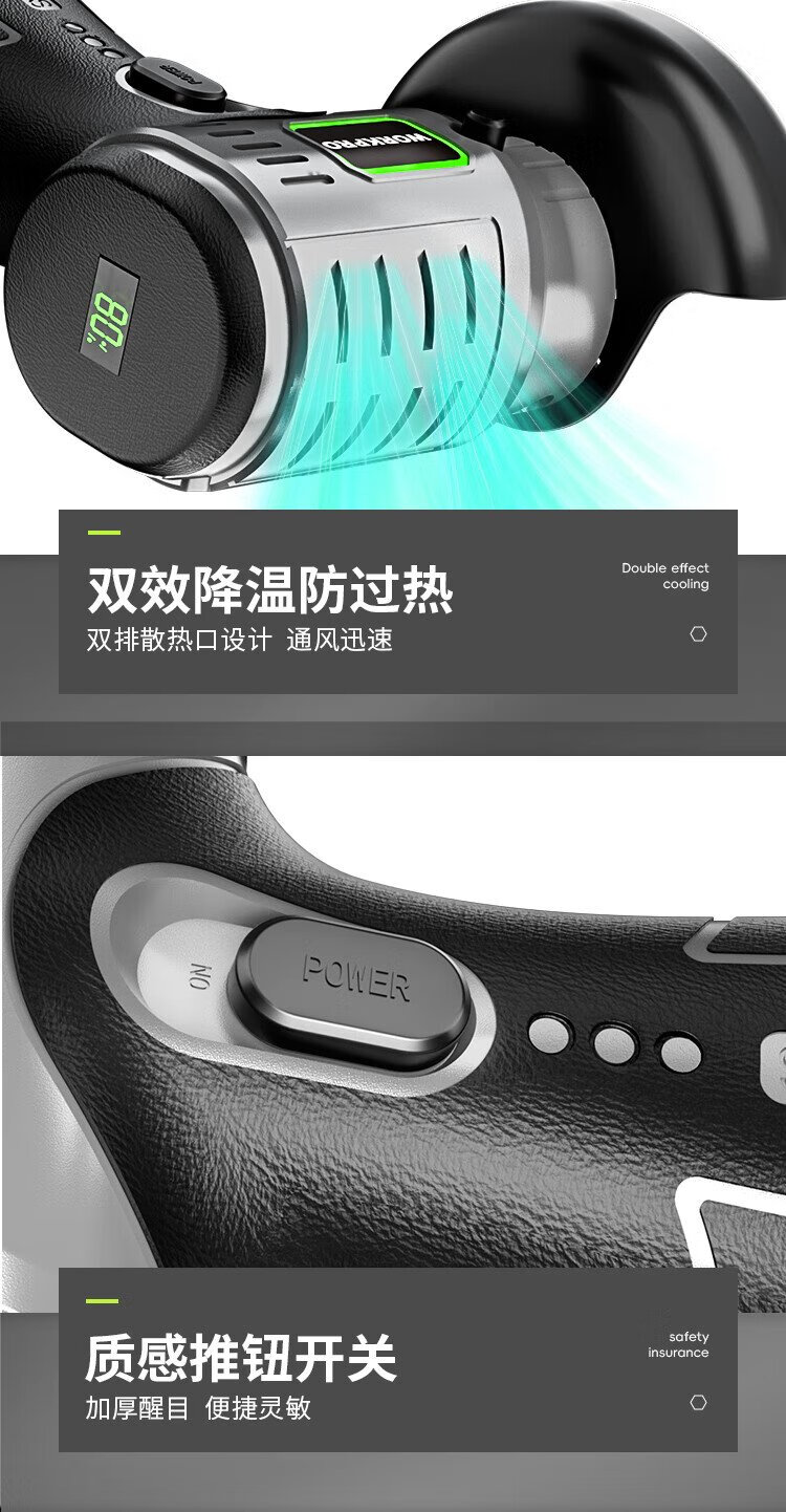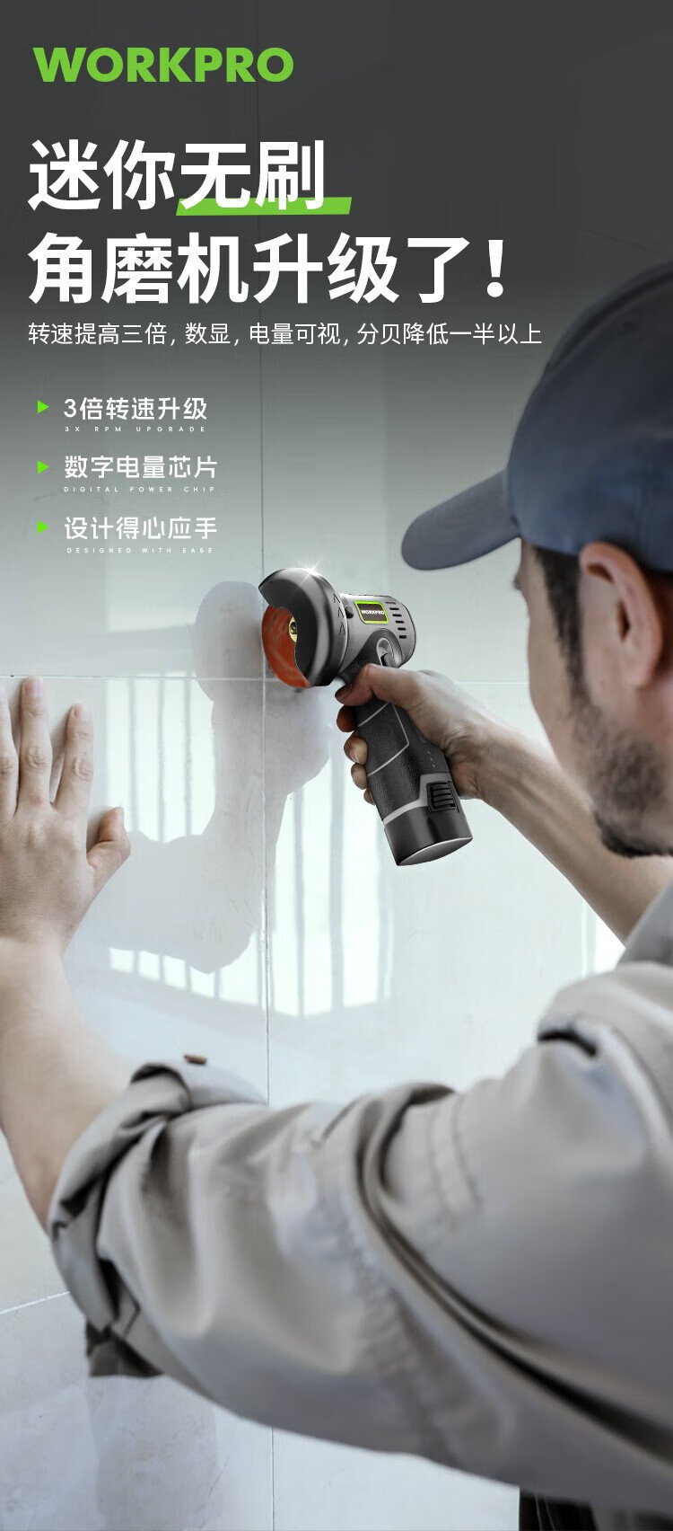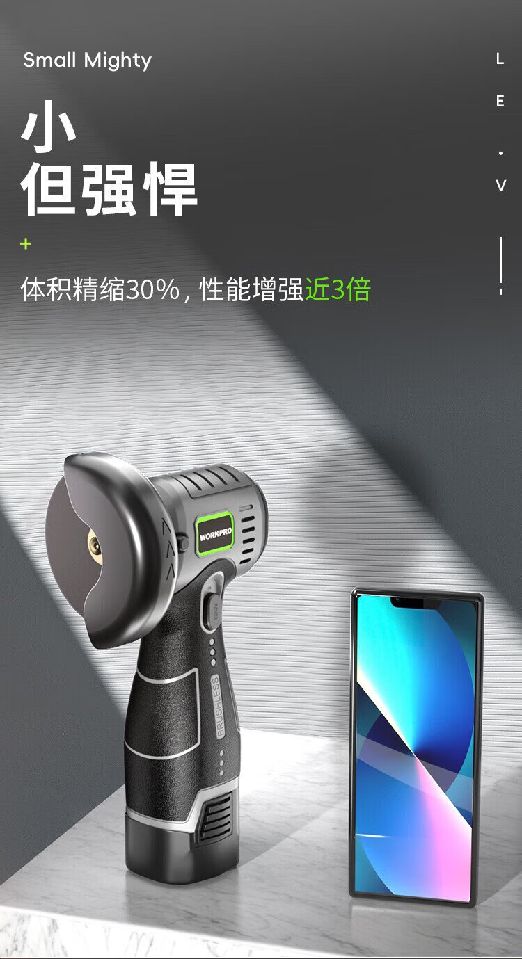Wankebao (WORKPRO) mini brushless angle grinder lithium electric polisher household handheld rechargeable grinding and polishing machine grinding wheel hand grinder