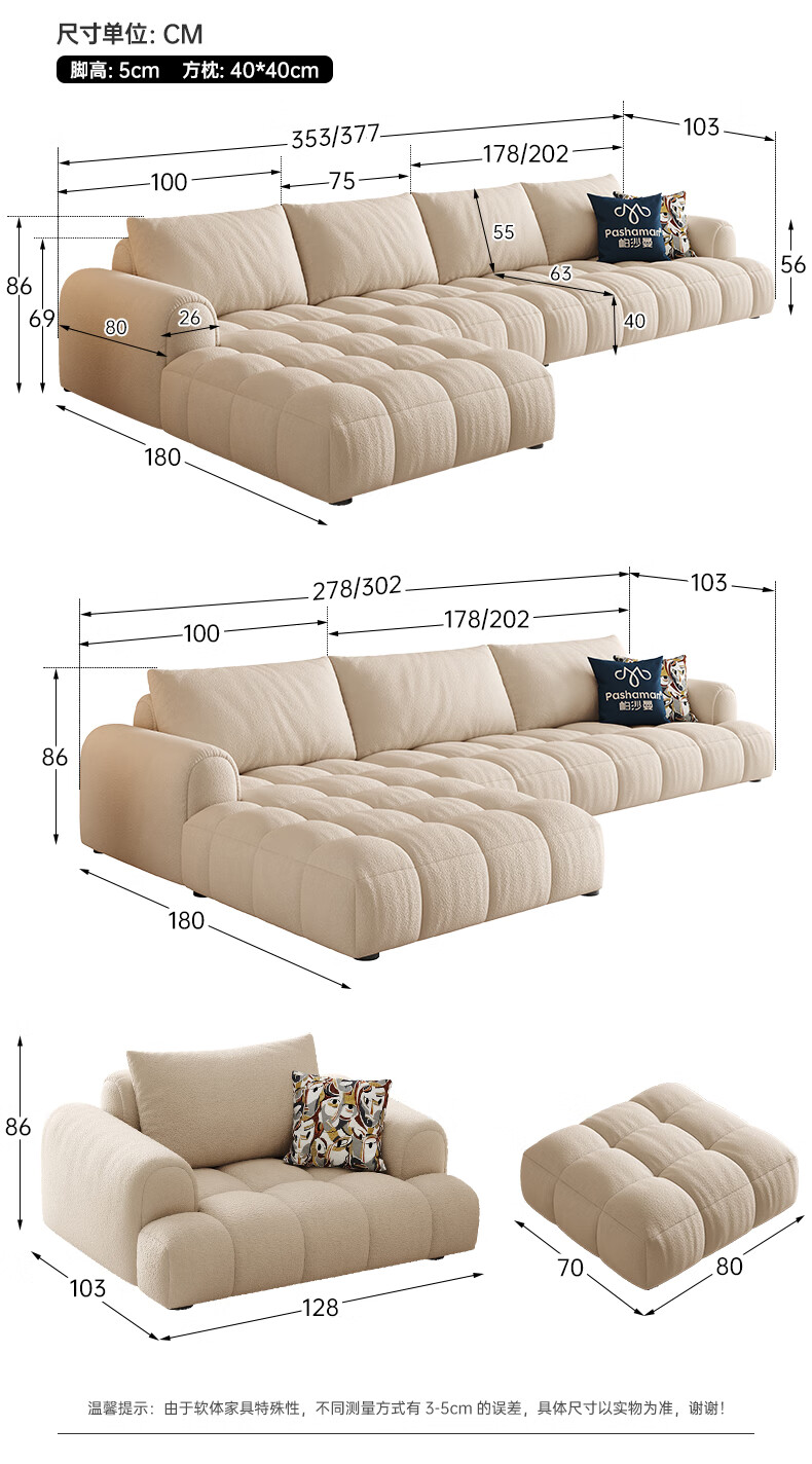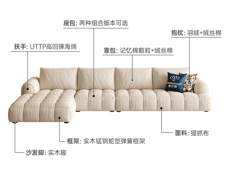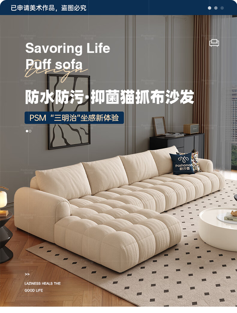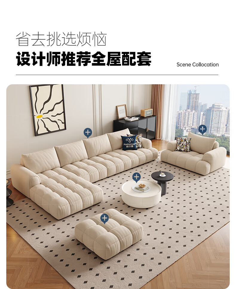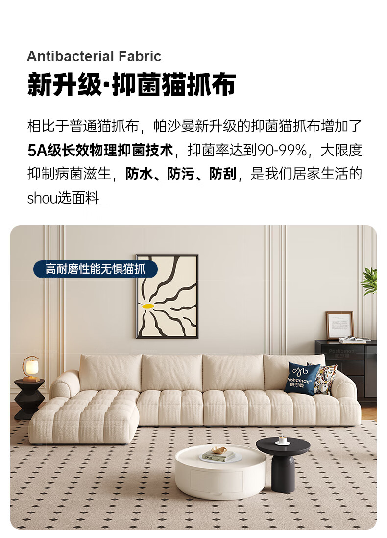 Pashaman cat scratch fabric sofa large and small apartment sofa simple living room puff flagship version 3.02 meters 1005FZ