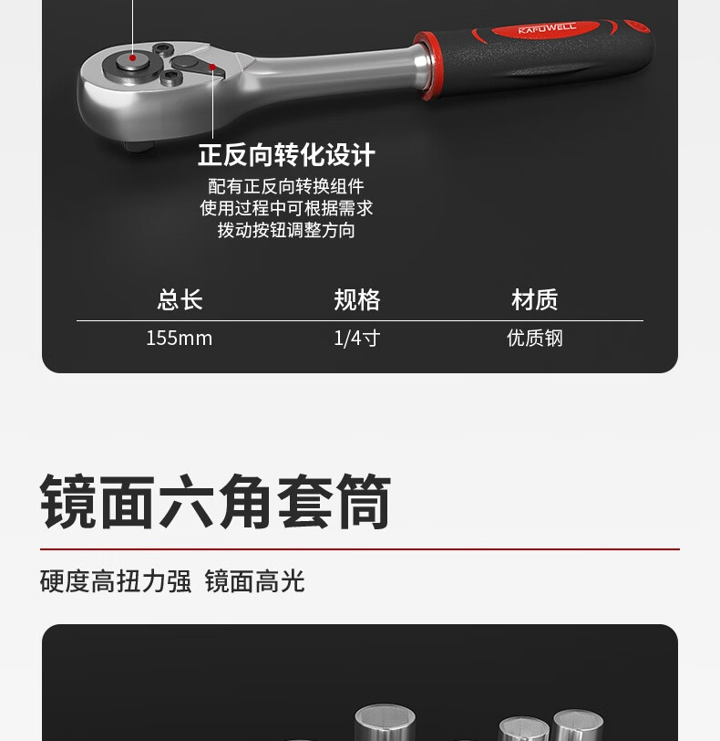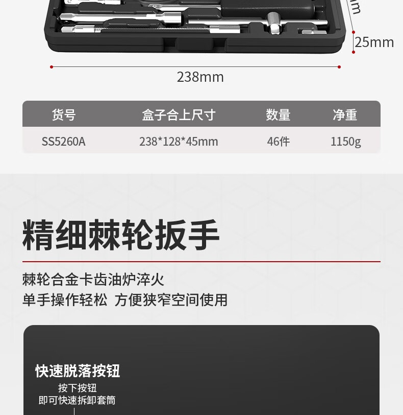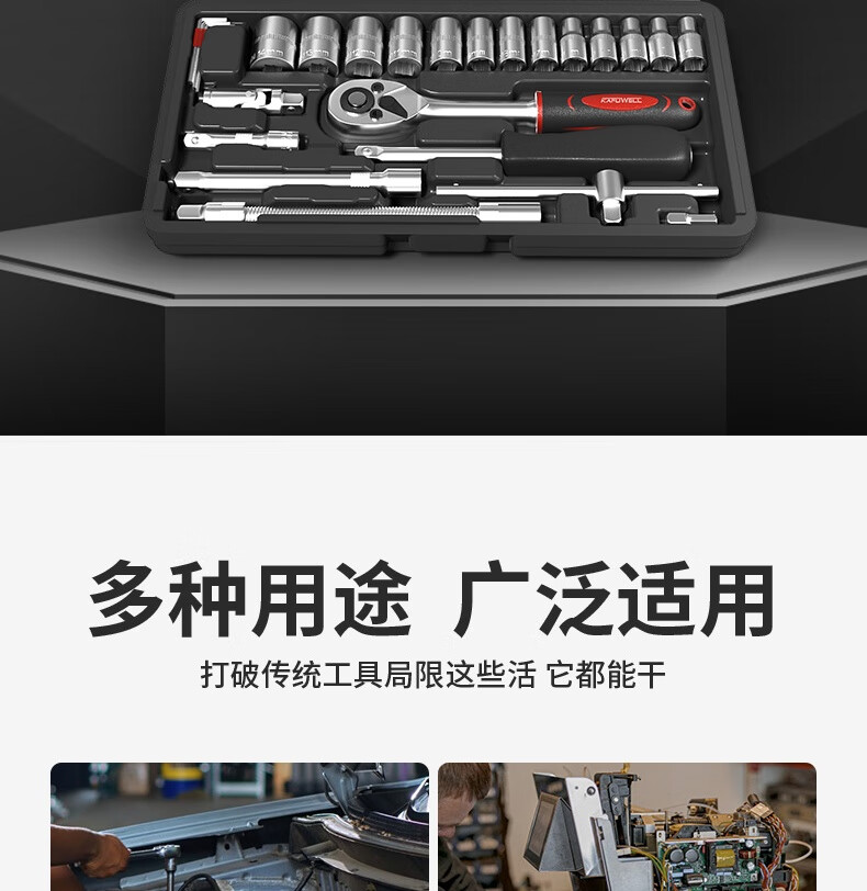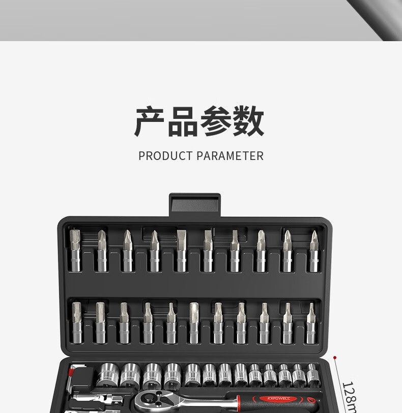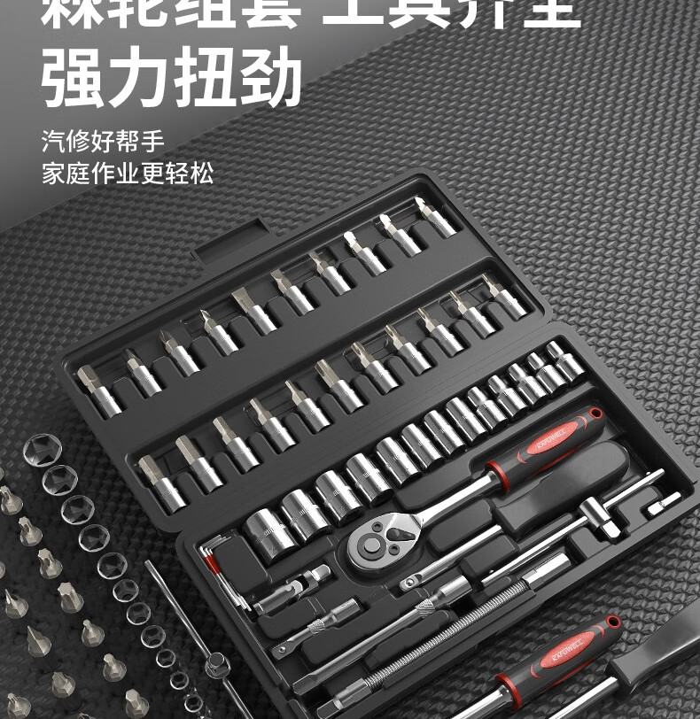 Kraftwell 46-piece socket wrench auto repair tool box set ratchet motorcycle repair road full set of quick torque screws
