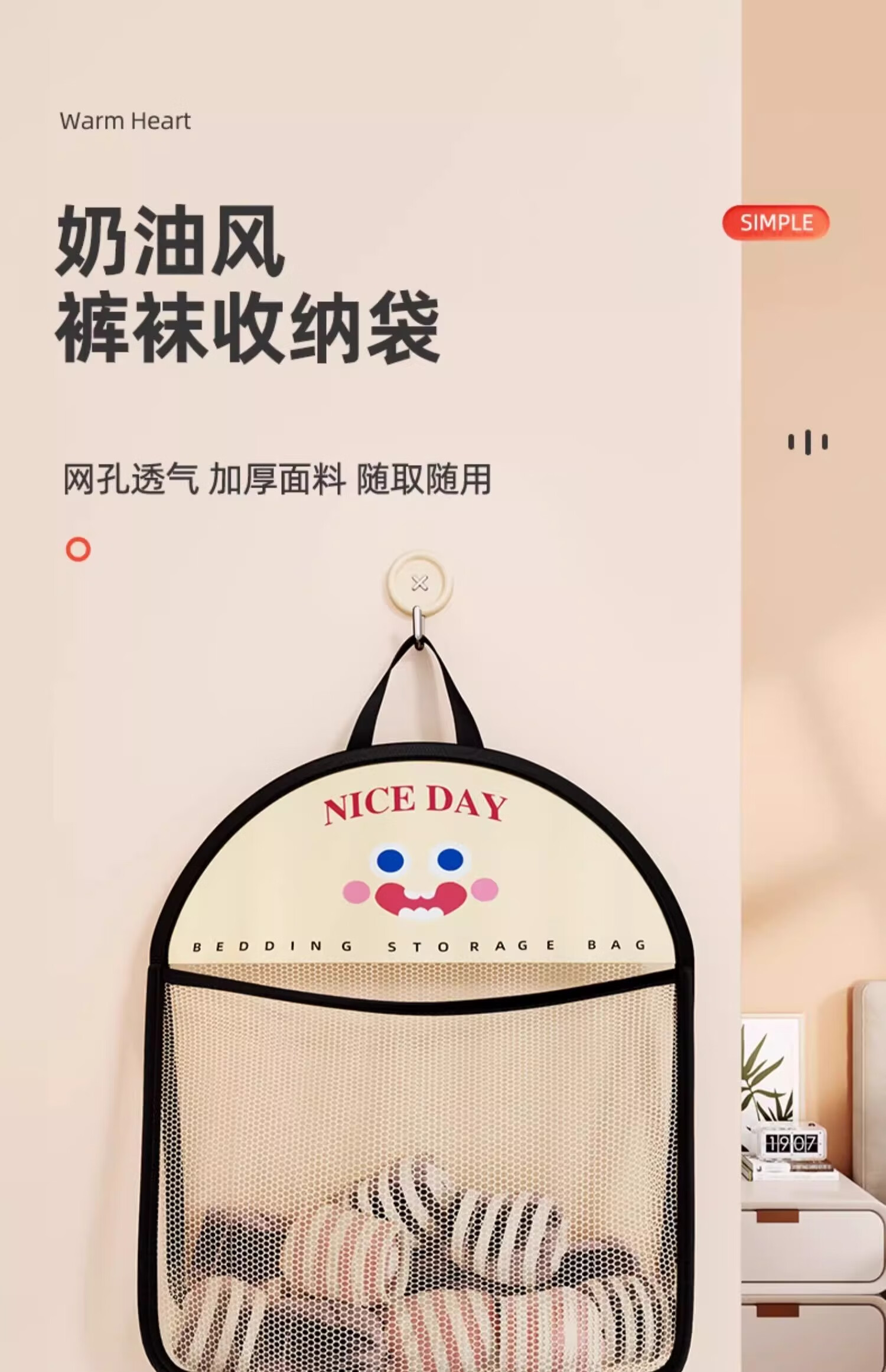 Jiadu Socks Storage Hanging Bag Underwear Storage Bag Wardrobe Door Back Storage Artifact Wall-mounted Net Bag