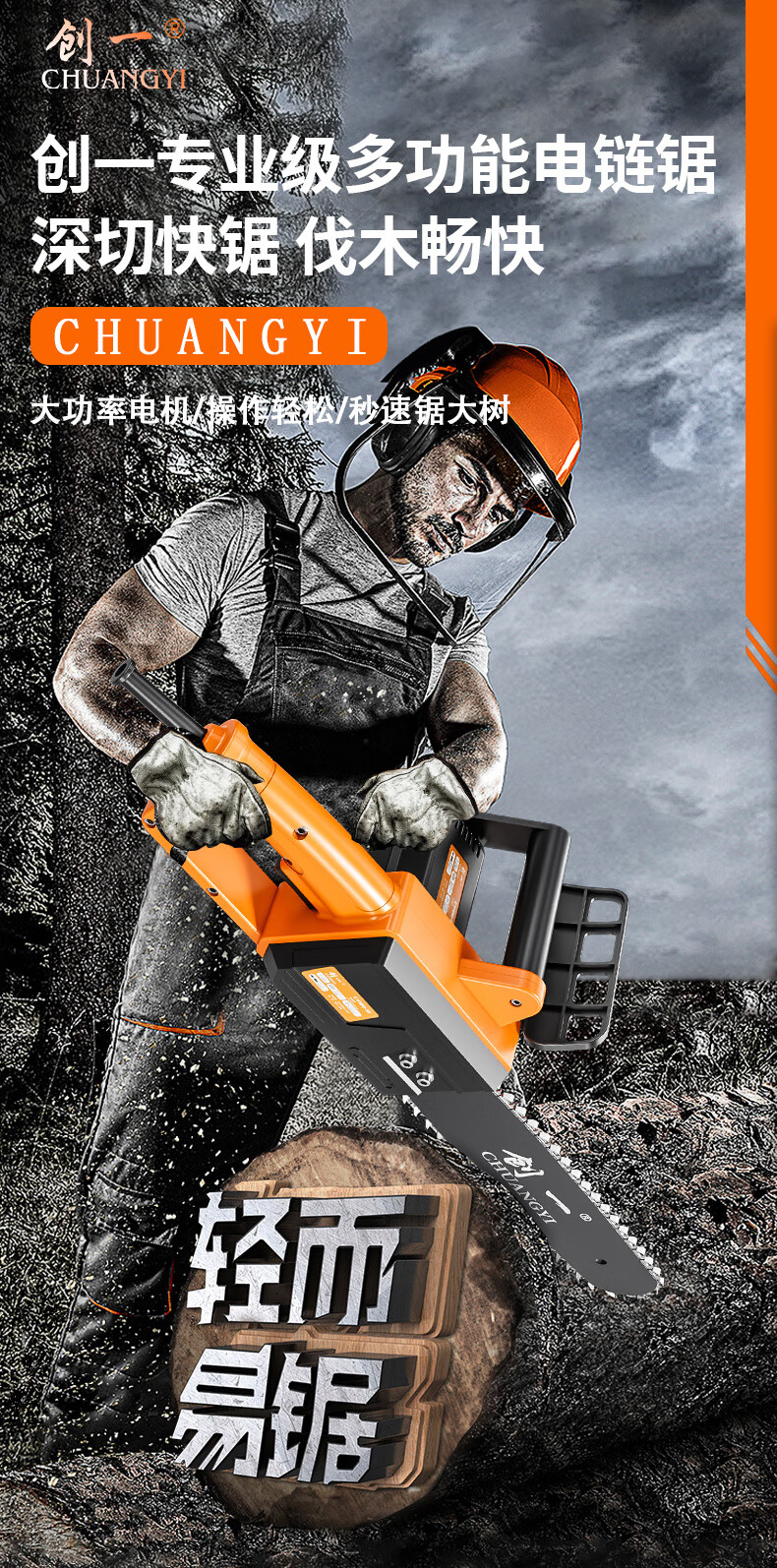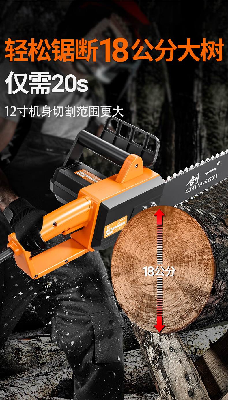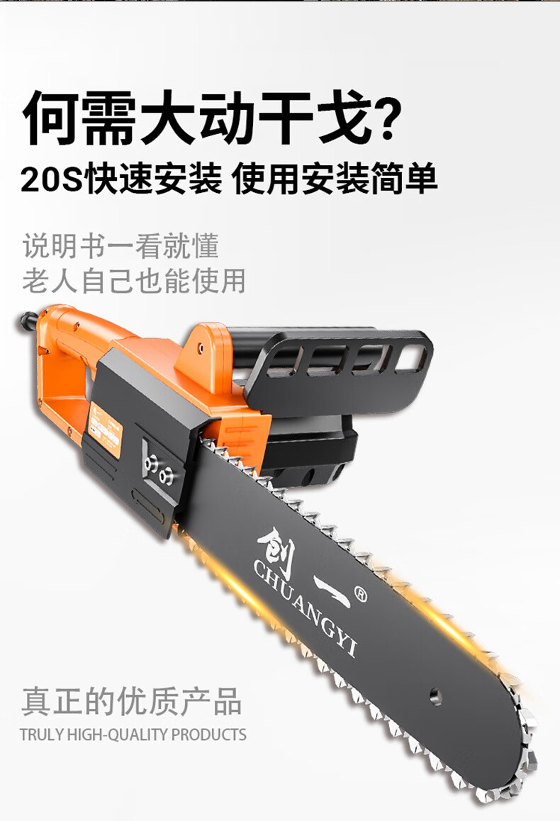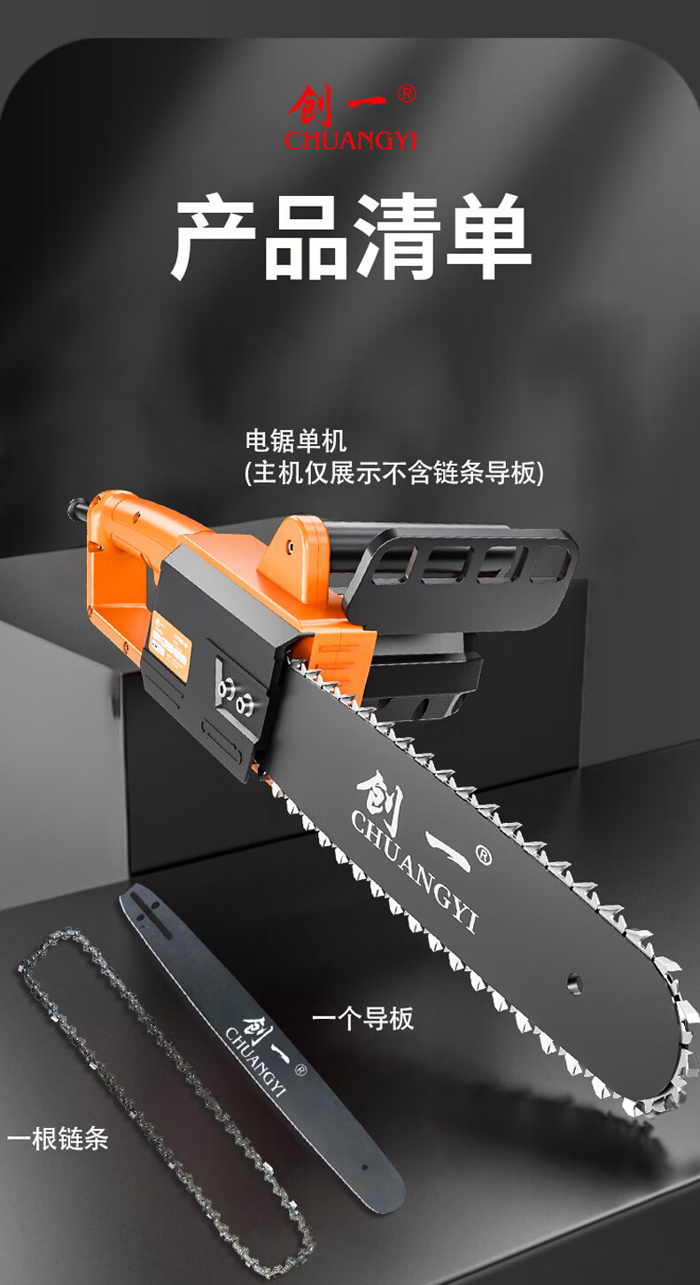 Chuangyi chainsaw logging saw household high-power electric chain saw firewood artifact plug-in woodworking saw hand-held tree felling cutting machine