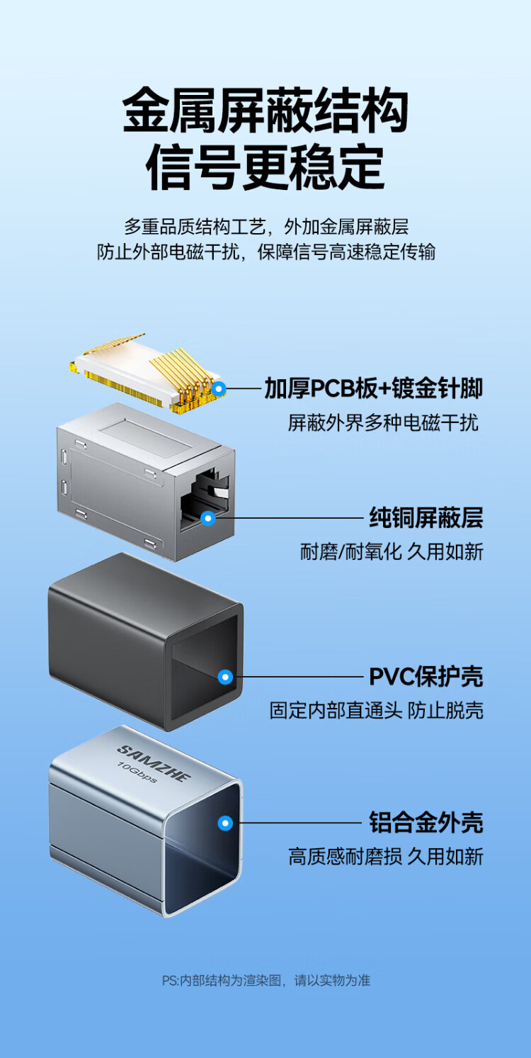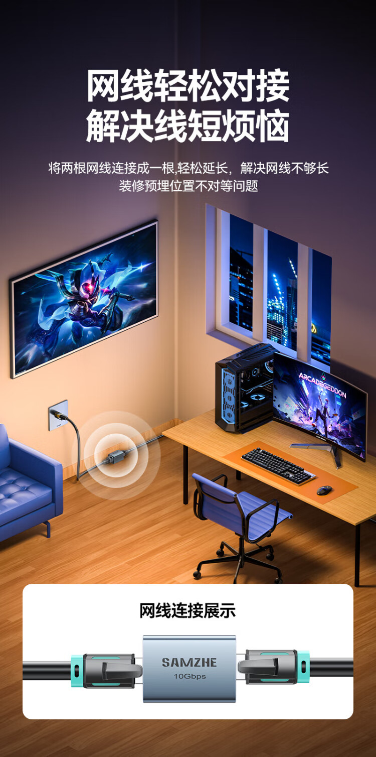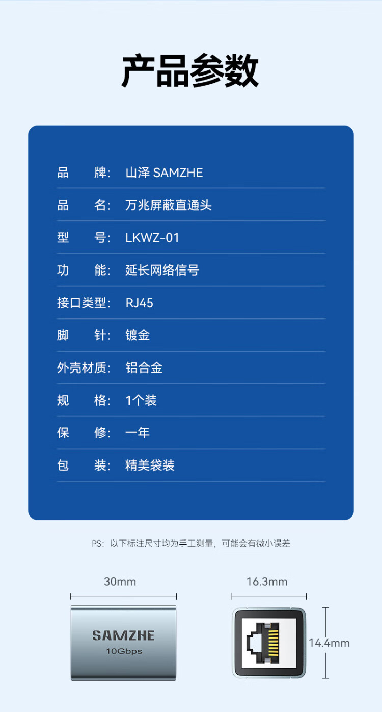 Shanze 10G network cable adapter butt joint high-speed network extension connector RJ45 network cable straight-through head crystal head network module 5/6/7 category network cable universal single