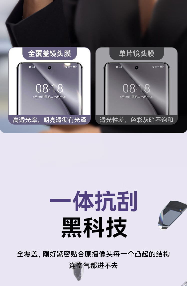 Baseus Baseus lens film for Huawei P70pro P70pro + rear camera protective film full screen coverage anti-fall, scratch, and anti-glare tempered film 2 pieces