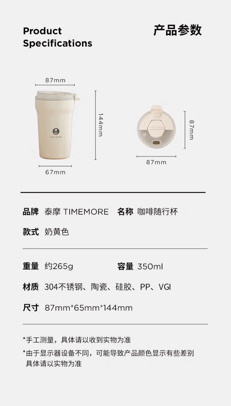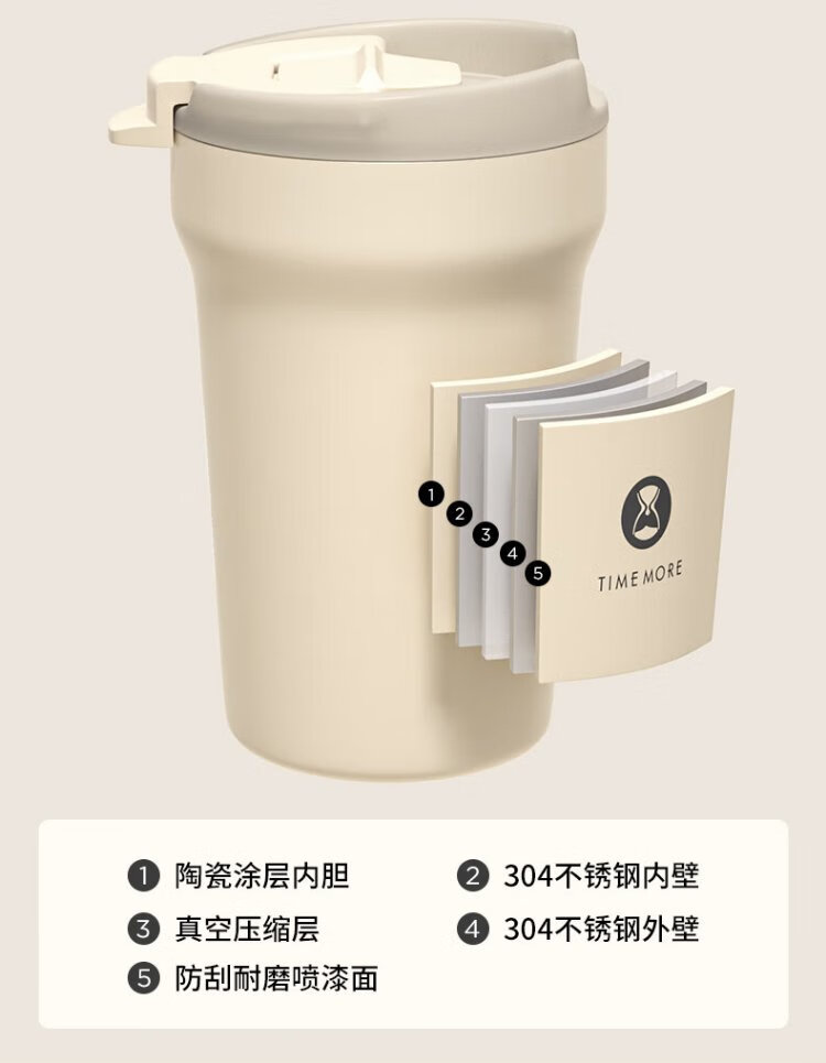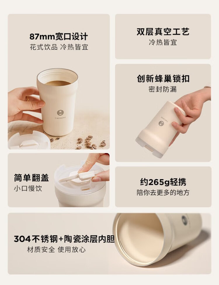 Taimo stainless steel coffee tumbler double-layer water cup ear cup portable ceramic liner coffee cup