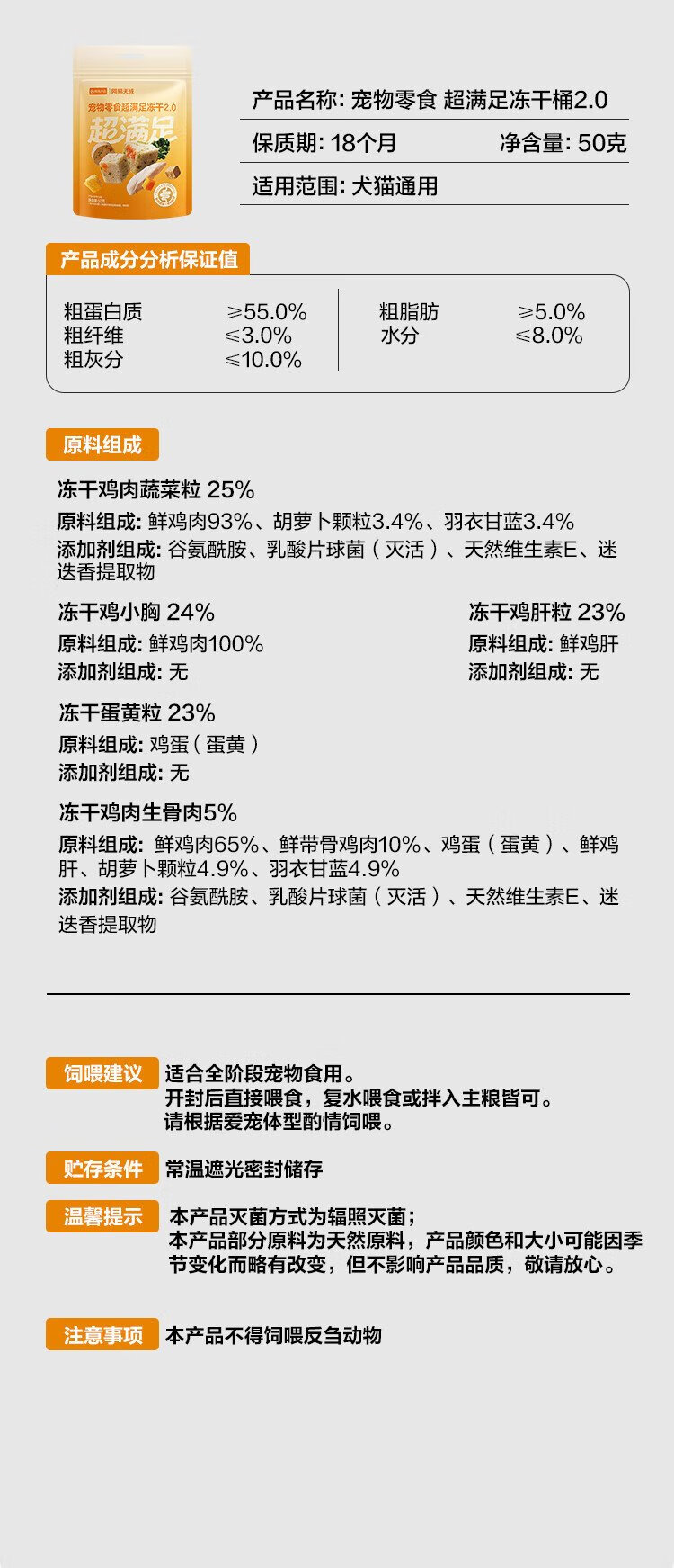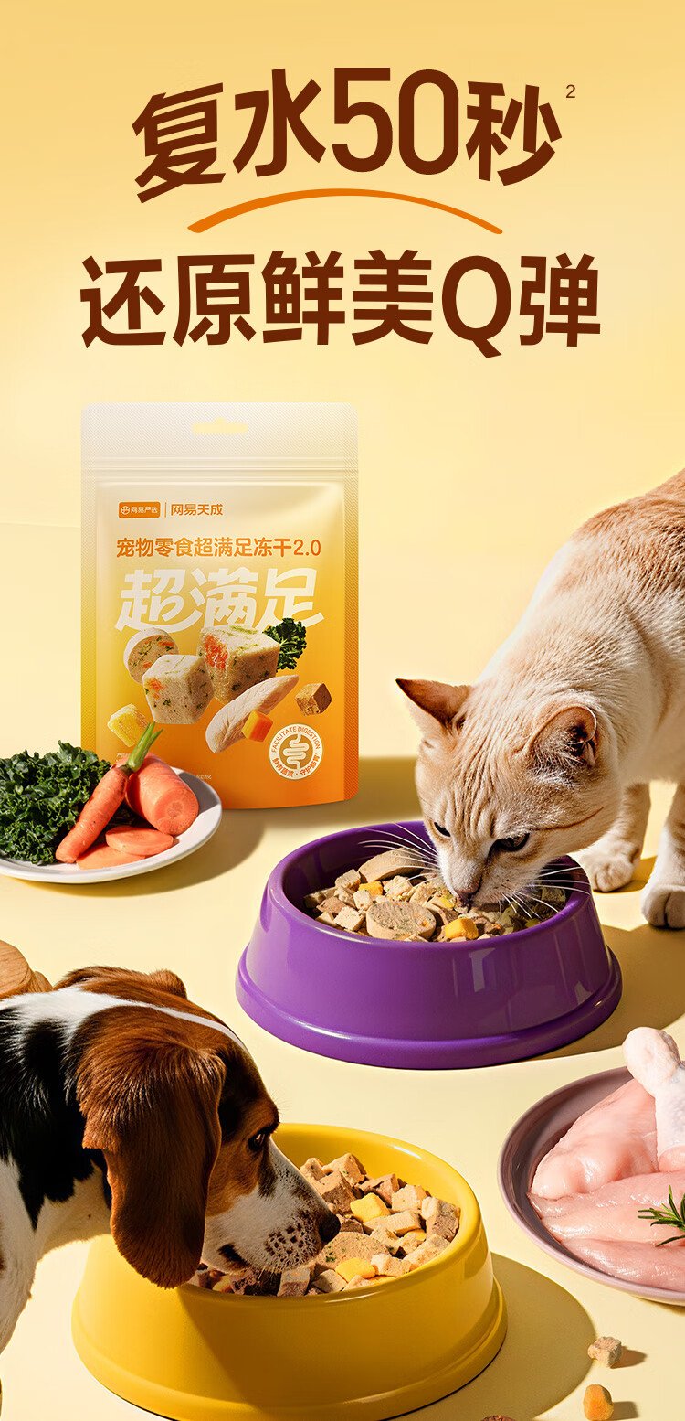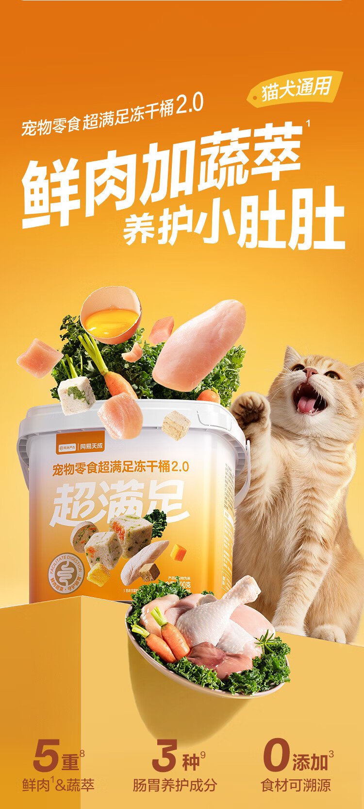 NetEase carefully selects freeze-dried chicken pet snacks in buckets, 100% fresh meat and egg yolk five-pack, suitable for cats and dogs, to protect the stomach and intestines 50g