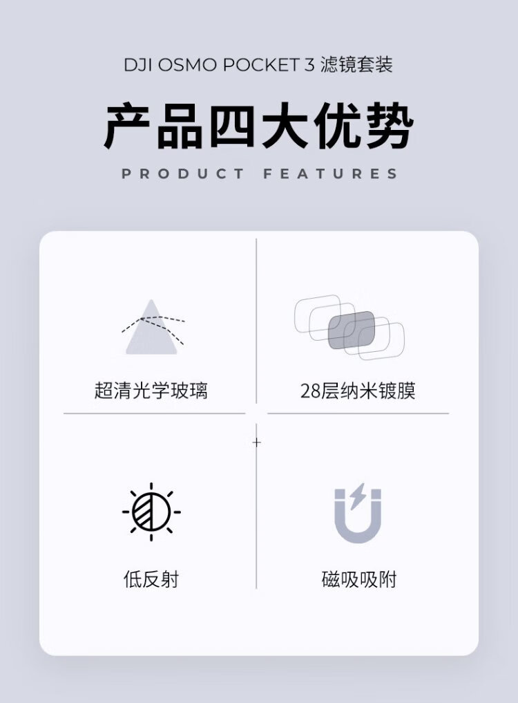Zall DJI DJI pocket3 accessories are suitable for pocket3 sports camera filters, magnetic quick-release UV protective mirror, ND light reduction mirror, CPL polarizing mirror, anti-light damage black soft filter