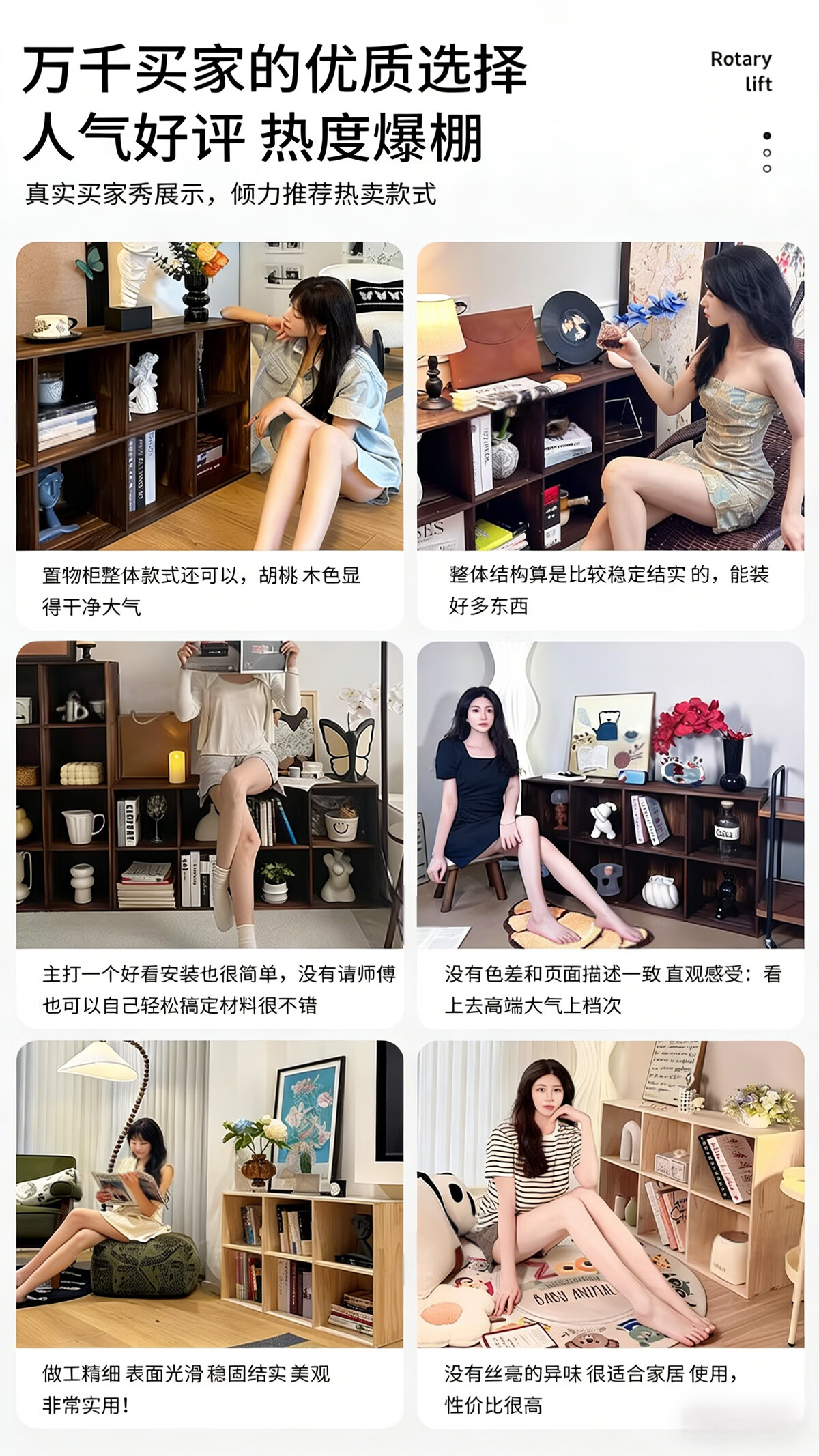 Millennium Washington solid wood lattice cabinet bookshelf storage rack floor-to-ceiling living room integrated wall kindergarten bookcase storage antique tan color 4 compartments