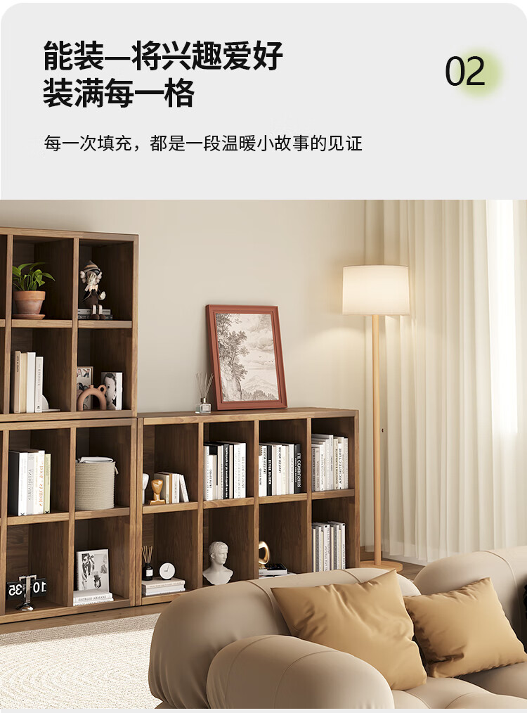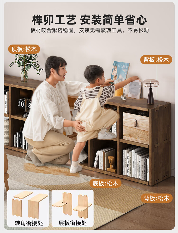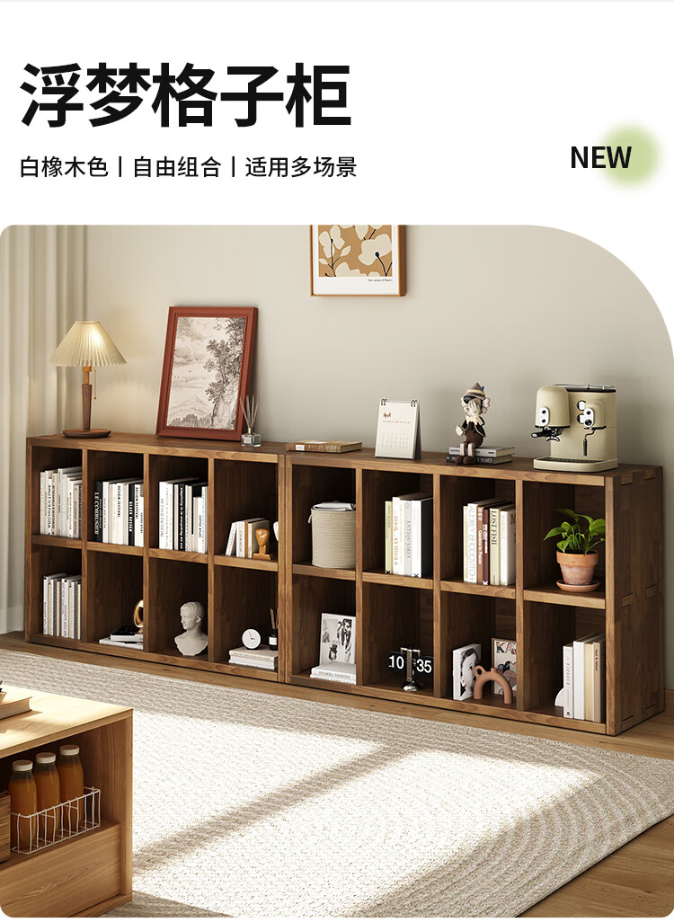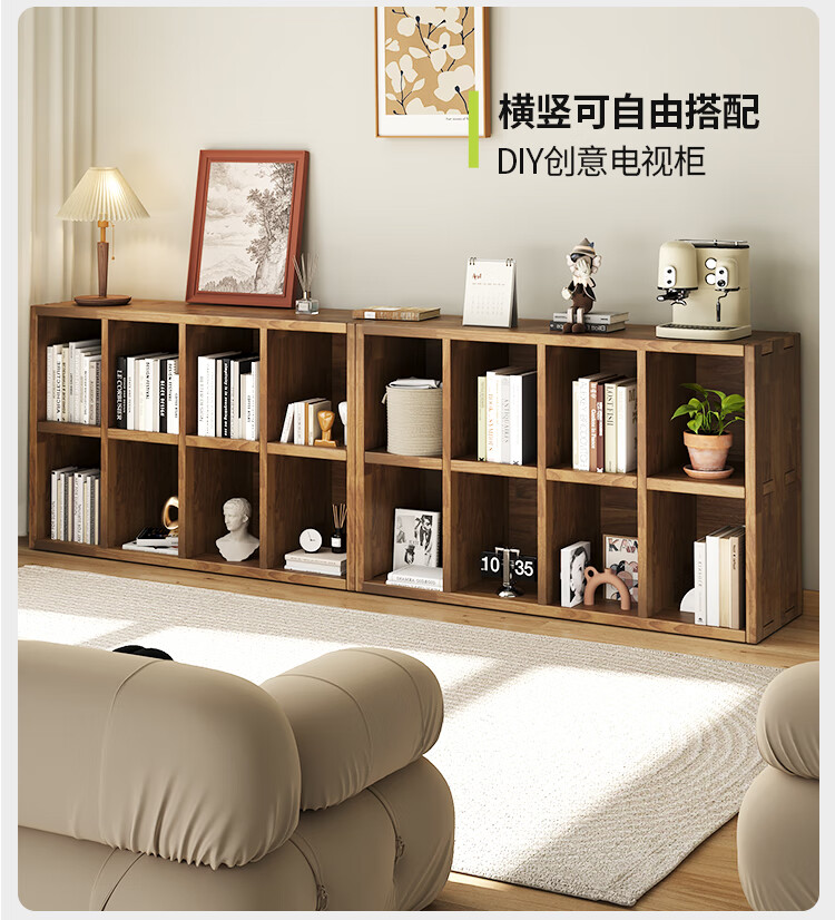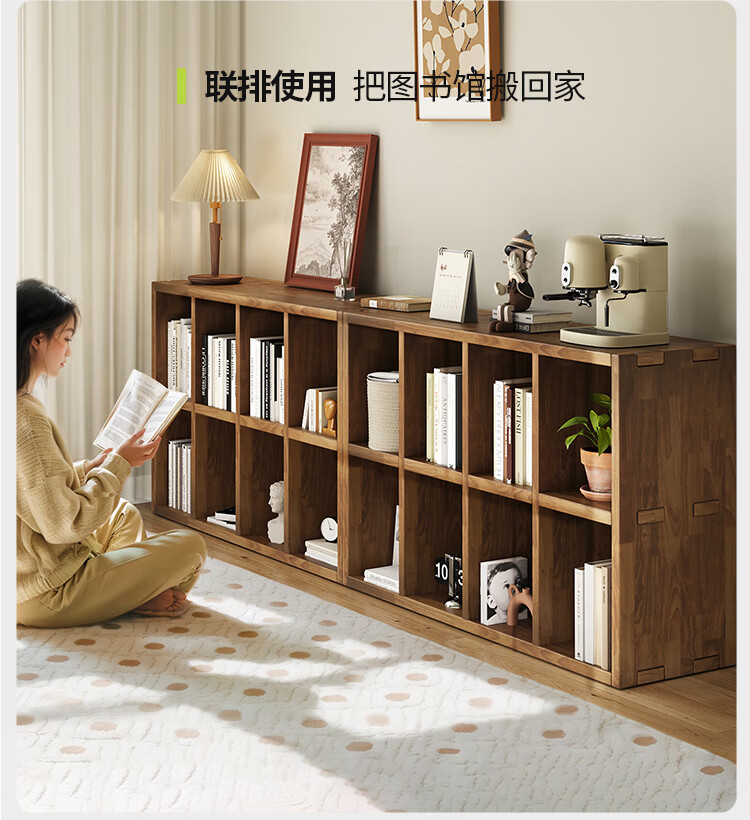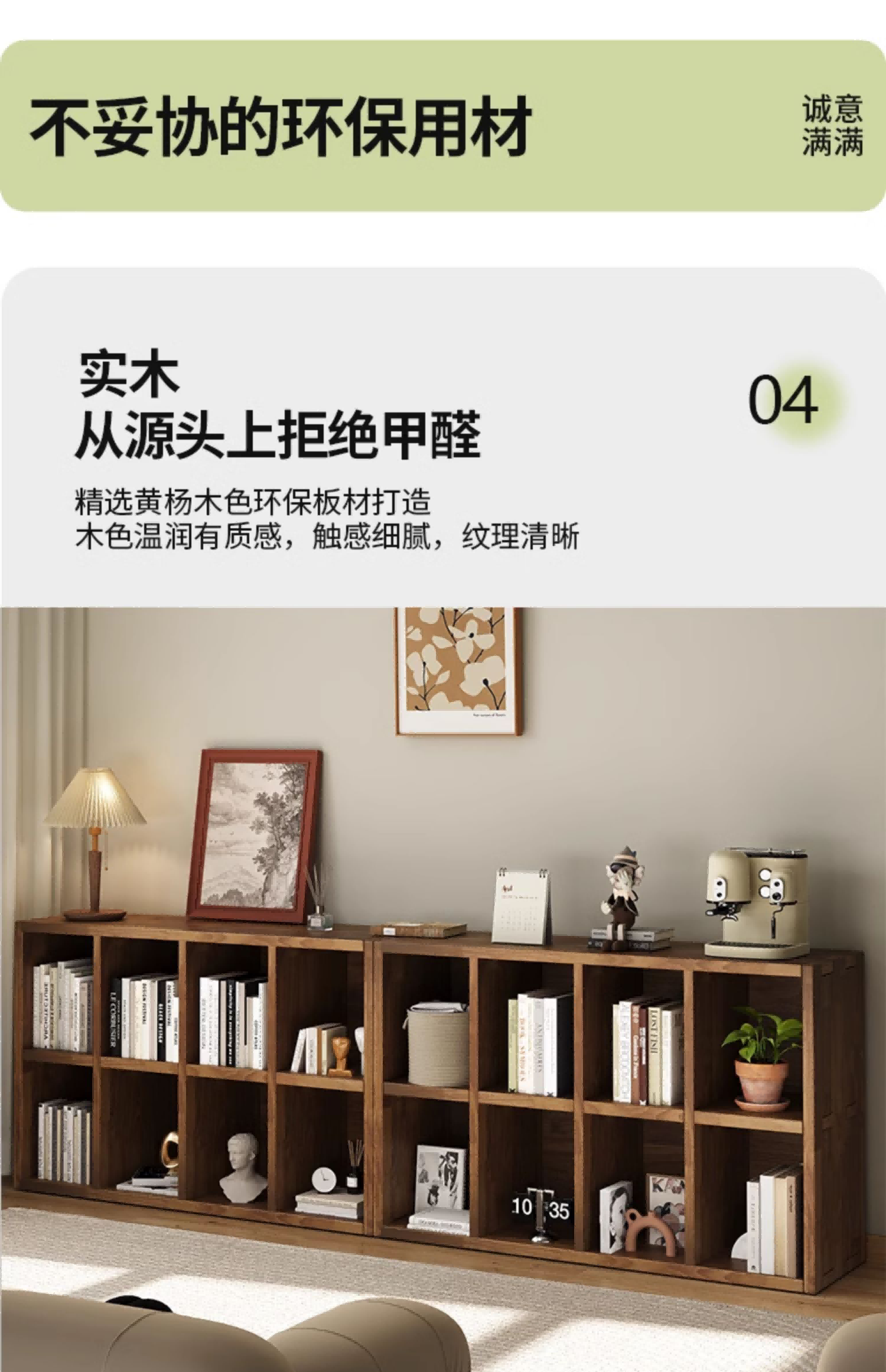 Millennium Washington solid wood lattice cabinet bookshelf storage rack floor-to-ceiling living room integrated wall kindergarten bookcase storage antique tan color 4 compartments