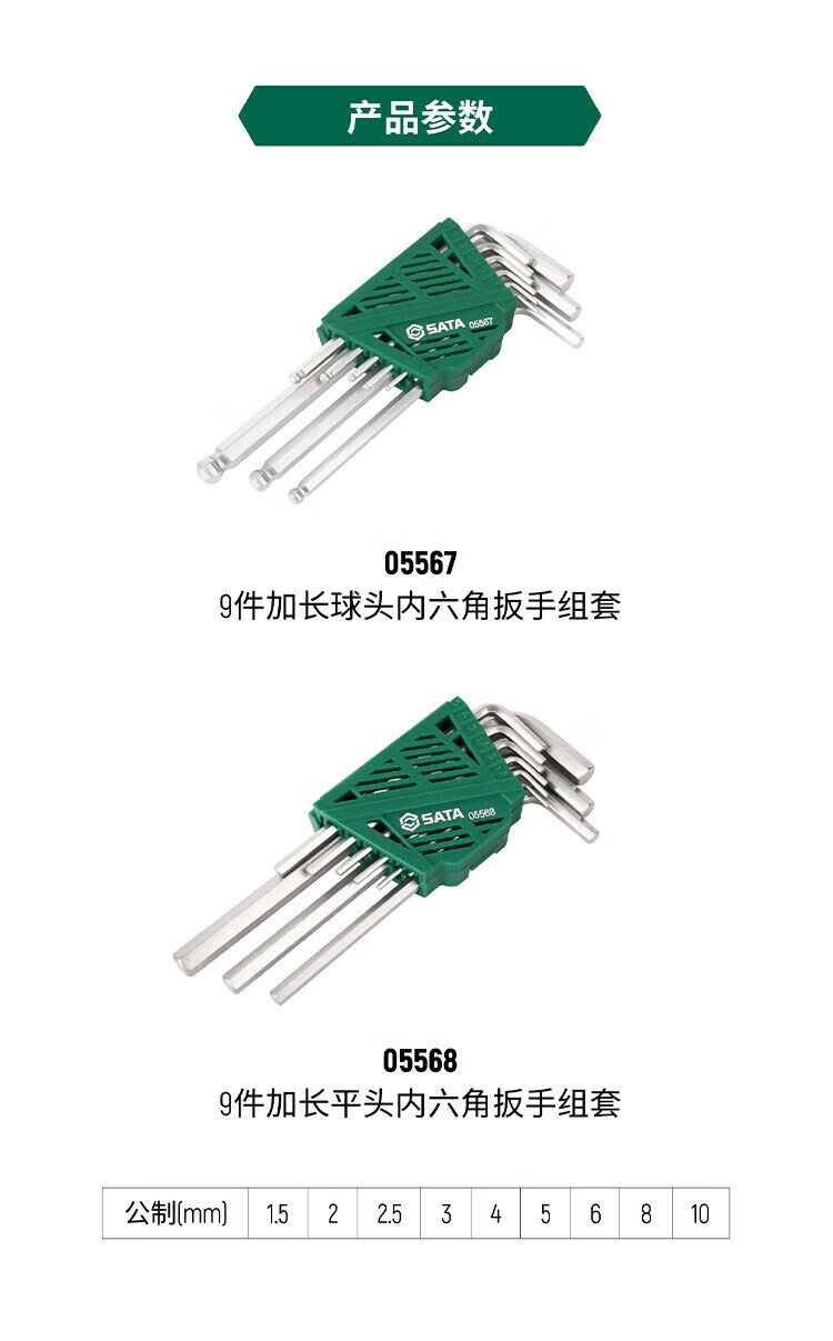 SATA 9-piece extended flat head hexagonal wrench set 05568